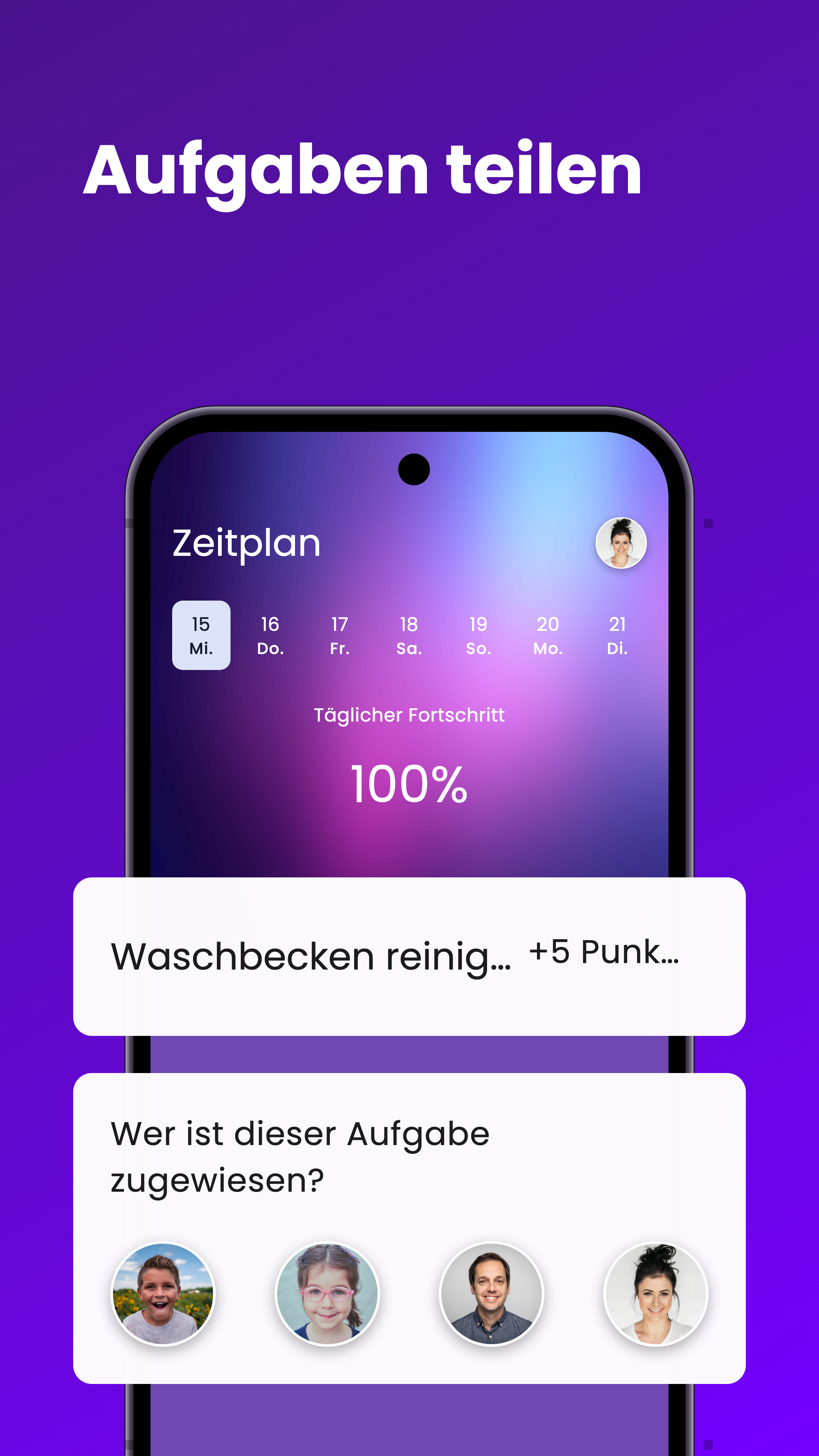 - Tägliche Punkte! Verfolge erledigte Aufgaben und steigere Deine Motivation!