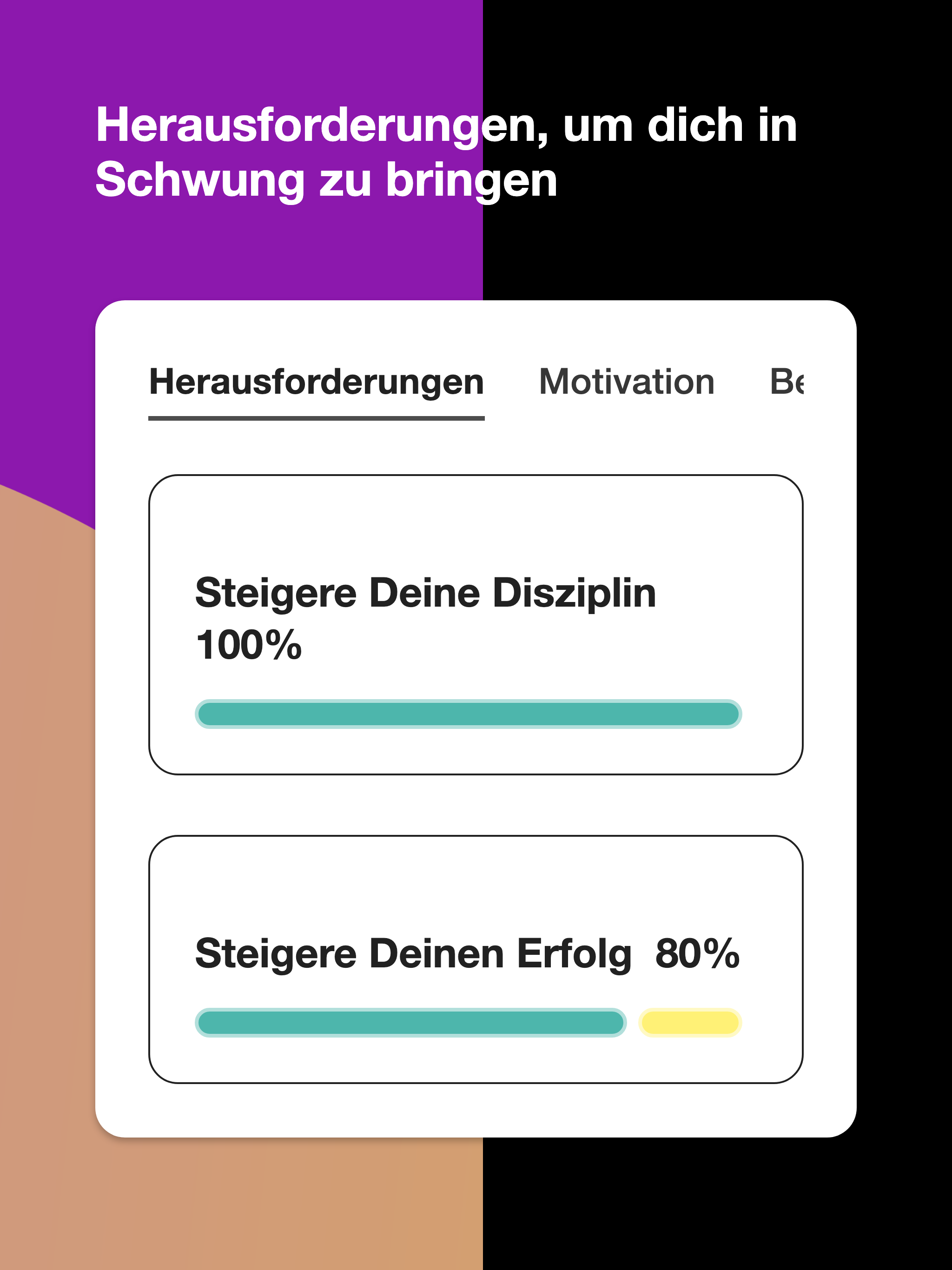 - Herausforderungen! Werde disziplinierter, probiere die integrierte Challenge aus.