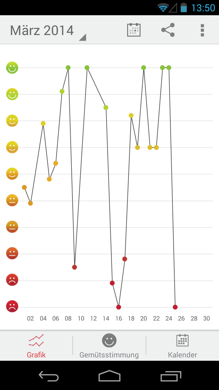 How Are You? wurde für Menschen entwickelt, die ihr Leben verbessern möchten. Es zielt auf Ihr Wohlbefinden ab und zeigt Ihnen die Beziehung zwischen dem Leben, das Sie zurzeit führen und dem Wohlbefinden, das Sie in Ihrem Alltag spüren. Diese App ist eine leicht zu handhabende Hilfe für alle, die ihr Wohlbefinden zur Richtlinie machen wollen, mit der sie im Alltag Entscheidungen treffen. Befinden sie sich gerade in einer Lebenskrise? Unabhängig davon, ob Sie unter Stress, Depressionen, Angstgefühlen, Essstörungen, fehlender sexuellen Lust, Beziehungs- oder unter anderen Problemen leiden - der Grund dafür kann ein mangelndes Bewusstsein für das Gleichgewicht Ihrer Lebensressourcen sein. Genau wie die roten Zahlen auf Ihrem Kontoauszug Ihnen zeigen, dass Sie sich im Minus befinden, wird das Risiko einer Lebenskrise dadurch erhöht, wenn Sie Ihre persönlichen Ressourcen auf Ihrem inneren Konto fortwährend übermäßig verbrauchen. How Are You? kann Ihnen dabei helfen, sich auf das Gleichgewicht Ihrer Ressourcen zu konzentrieren. Es hilft Ihnen dabei, anzuhalten und die Situation zu überdenken, damit Sie ein Verständnis für Ihr Wohlbefinden oder Ihr fehlendes Wohlbefinden entwickeln. Die App ist ganz einfach anzuwenden. Am wichtigsten ist es, dass du "abschaltest" - zu viel Analyse und Reflexion vermeidest - um nur zu kontrollieren und zu erfassen, wie es dir in dem bestimmten Augenblick geht. How Are You? schildert dein Wohlbefinden in einer Grafik und gibt dir einen Überblick über Schwankungen und Entwicklung über einen Zeitraum; die echte Stärke der App besteht darin, dass das erfasste Wohlbefinden mit Informationen aus deinem Smartphone Kalender abgeglichen wird. Anhand einer visuellen Wiedergabe des erfassten Wohlbefindens im Abgleich mit deinen Tagesaktivitäten, bekommst du einen optimalen Überblick darüber, was, wer und wie viel in deinem Leben präsent sein muss, damit du dich ständig wohlfühlst. Durch die Nutzung von How Are You? können Sie ein besseres Verständnis sowie einen Einblick in Ihr Leben erhalten. Zusätzlich kann die Anwendung begleitend bei Therapien oder in Absprache mit dem Therapeuten eingesetzt werden. Die Methode, auf der How Are You? basiert, wurde in Zusammenarbeit mit Lene Bammeskov, MSc klinische Psychologie, entwickelt. How Are You? Diese Anwendung hilft bei der Nachverfolgung Ihres allgemeinen Wohlbefindens. Die in der Anwendung enthaltenen Angaben dienen nur der allgemeinen Information und der Anmeldung. Sie ersetzen keine medizinische Beratung noch sind sie als Ersatz einer medizinischen Diagnose oder der Behandlung eines persönlichen gesundheitlichen Problems gedacht. Sie sind ferner kein Ersatz für einen fachlichen Rat und Dienstleistungen eines qualifizierten Gesundheitsdienstleisters. Im Hinblick auf Ihren persönlichen Gesundheitszustand und Ihre medizinischen Bedürfnisse, nehmen Sie bitte generell eine Beratung eines qualifizierten Gesundheitsdienstleisters in Anspruch. Haftungsausschluss Diese vom Unternehmen How Are You ApS („How Are You?”) angebotene Anwendung erfolgt ohne Gewähr und ohne jegliche Zusicherung. How Are You? schließt jegliche Zusicherungen in Bezug auf die Anwendung ausdrücklich aus, dazu gehören auch die konkludente Zusicherung der Marktgängigkeit, Eignung für einen bestimmten Zweck oder Leistungserbringung. How Are You? sichert keine Mangelfreiheit der Anwendung zu. Sie stimmen zu, dass das Herunterladen und die Nutzung der Anwendung auf Ihr Risiko und Ihre Verantwortung erfolgen. How Are You? haftet nicht für Schäden jeglicher Art, die dadurch entstehen, dass Sie die Anwendung herunterladen oder nutzen. Durch das Herunterladen der Anwendung stimmen Sie zu, How Are You? von jeglichen Verlusten, Schaden, Verletzungen und jeglichen anderen Schäden freizuhalten, unabhängig davon, ob diese aus oder durch die Nutzung der Anwendung entstehen.