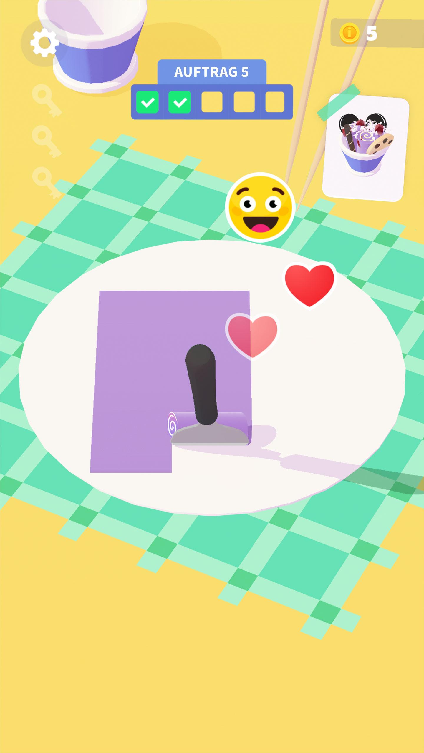 Leckereien? Ja, bitte! Es ist Zeit, das beste Eisrollen-Spiel aller Zeiten auszuprobieren – Ice Creamz Roll! Die Zubereitung von Eisrollen war noch nie so unterhaltsam (oder befriedigend). Stell es dir vor. Du bist der König oder die Königin, während du die Haupt-Eis-Rolle in einem der spannendsten Essensspiele, die es gibt, übernimmst. Tritt an den Teller und mach dich bereit. Zeit, das Eis zu rollen! - Stelle die Pfanne besonders eiskalt ein - Fülle die perfekte Crememischung hinein - Füge ein paar Streusel hinzu (jeder braucht ein wenig Glanz) - Zerkleinere, mische und zerdrücke diese Eisrollenmischung - Perfektioniere dein Kochspiel und bring es in diese zufriedenstellende Eisrollenform. Und serviere sie deinen Kunden. Wir hoffen, dass du gute Bewertungen für dein Können beim Kochspiel erhältst! ;) Vergiss all diese langweiligen Essensspiele, mit Ice Creamz Roll bringst du den Funken zurück in die Küche. Tippe, um eine perfekte Creme in ganz besondere Eisrollen und einen Genuss für alle zu verwandeln. Was könnte mehr Spaß machen? Also, worauf wartest du noch? Probiere dieses versteckte Juwel unter den Essenspielen aus und stelle dich der Herausforderung, Eisrollen selbst zuzubereiten. Sobald du dieses Eisrollen-Abenteuer einmal ausprobiert hast, willst du nie mehr aufhören, die Essensspielküche zu rocken.
