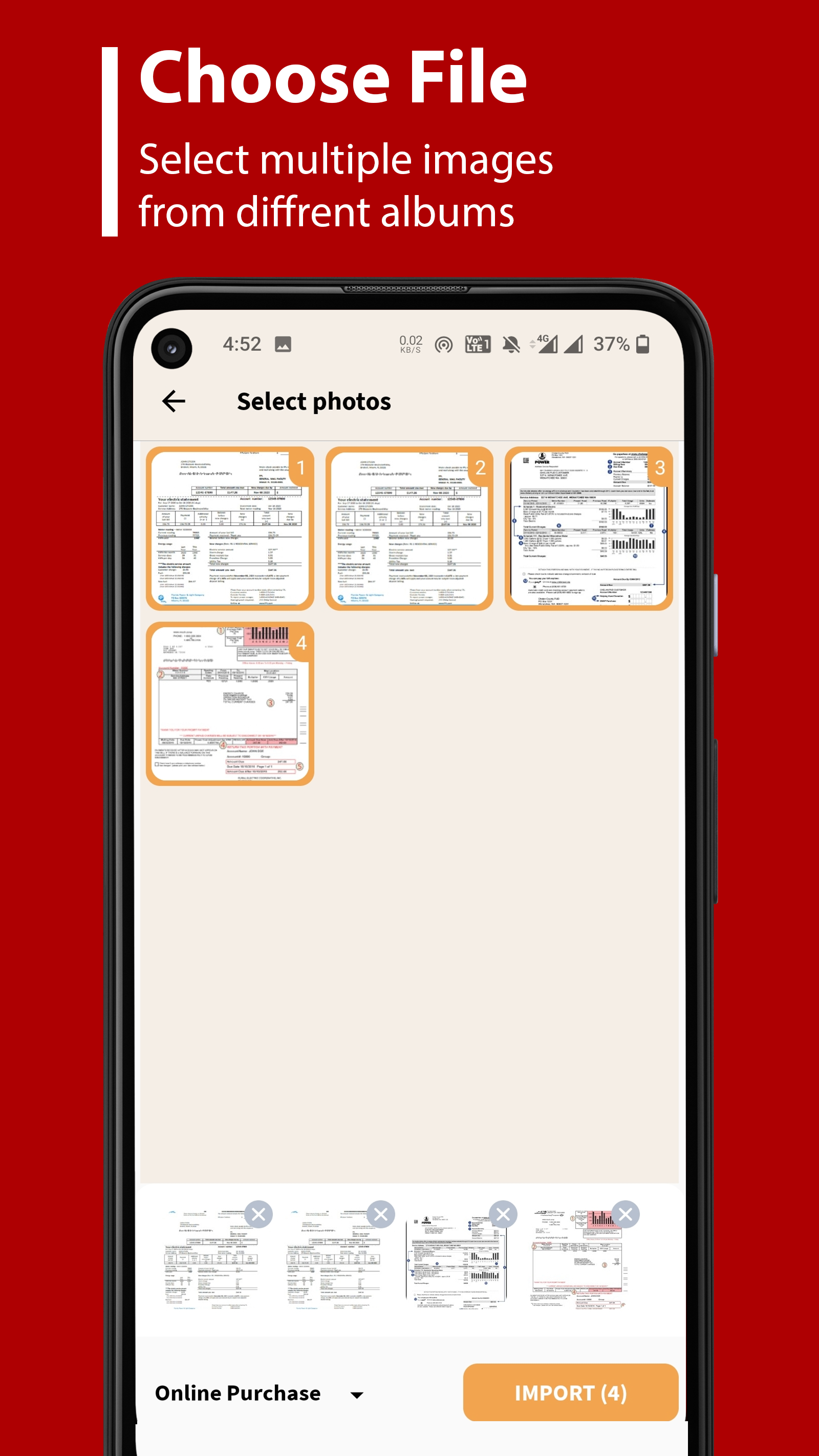 Image to PDF Maker App ist ein Tool zum Erstellen von PDF-Dateien mit JPG-, PNG- oder BMP-Bilddateien. Konvertiert mehrere Bilder in eine einzige PDF-Datei. Es erfordert keine Internetverbindung. Diese Anwendung ist äußerst benutzerfreundlich und kann für viele Zwecke verwendet werden. Mit der Image to PDF Maker-App können Sie schnell alle Arten von Dokumenten und Bildern in Ihrem Büro, in Ihren Universitäten und allem, was dort sein muss, scannen oder importieren. Die App Image to PDF Maker scannt Ihre Dokumente, Dateien, Ausweise, Bücher und Bilder in hoher Qualität und konvertiert sie mit der kostenlosen Dokumentenscanner-App auch in das PDF- oder JPEG-Format. Highlights: • Importieren Sie Bilder oder scannen Sie Papierdateien mit Ihrer Kamera • Seitenränder werden automatisch erkannt. • Seitengrößen für PDF festlegen (Letter, Legal, A4 und mehr) • Als Bild- oder PDF-Dateien teilen. • Drucken Sie das gescannte Dokument direkt aus der App • Stabile und schnelle Leistung • Vergrößern und verkleinern Sie die PDF-Datei beim Lesen von PDF Hauptfunktionen 1. Konvertieren Sie Bilder in ein einzelnes PDF Image to PDF Maker-Anwendung, in der Sie ganz einfach Bilder importieren oder Papierdateien mit Ihrer Kamera scannen und mit einem einfachen Fingertipp in das PDF-Format konvertieren können. Außerdem können Sie Quittungen, Rechnungen, Notizen, Dokumente, Fotos, Visitenkarten, Zertifikate, Whiteboards, usw. 2. Bilder skalieren Image to PDF Maker-Anwendungsunterstützung Die Funktion zum Ändern der Größe, Zuschneiden und Drehen von Bildern nach Belieben. 3. Bilder neu anordnen und sortieren Bilder von Bild zu PDF Maker sortieren nach aufsteigend, absteigend, Größe, Erstellungszeit und Sie können Bilder auch manuell neu anordnen, wenn Sie möchten. 4. Passwort hinzufügen, um die Datei zu schützen Die Image to PDF Maker-App kann PDF-Dateien schützen, indem ein persönliches Passwort festgelegt wird, und kann auch den Verlust von Informationen beim Teilen der vertraulichen Dateien verhindern. 5. PDF-Dateien komprimieren Image to PDF Maker App-Unterstützung zur Reduzierung der PDF-Größe durch Komprimierung. Stellen Sie die Bildqualität ein – niedrig, mittel, hoch und original nach Bedarf. 6. PDF ansehen und teilen Bild-zu-PDF-Maker-Dateien können einfach mit einem Klick über soziale Medien, Bluetooth, E-Mail usw. gesendet und geteilt werden.