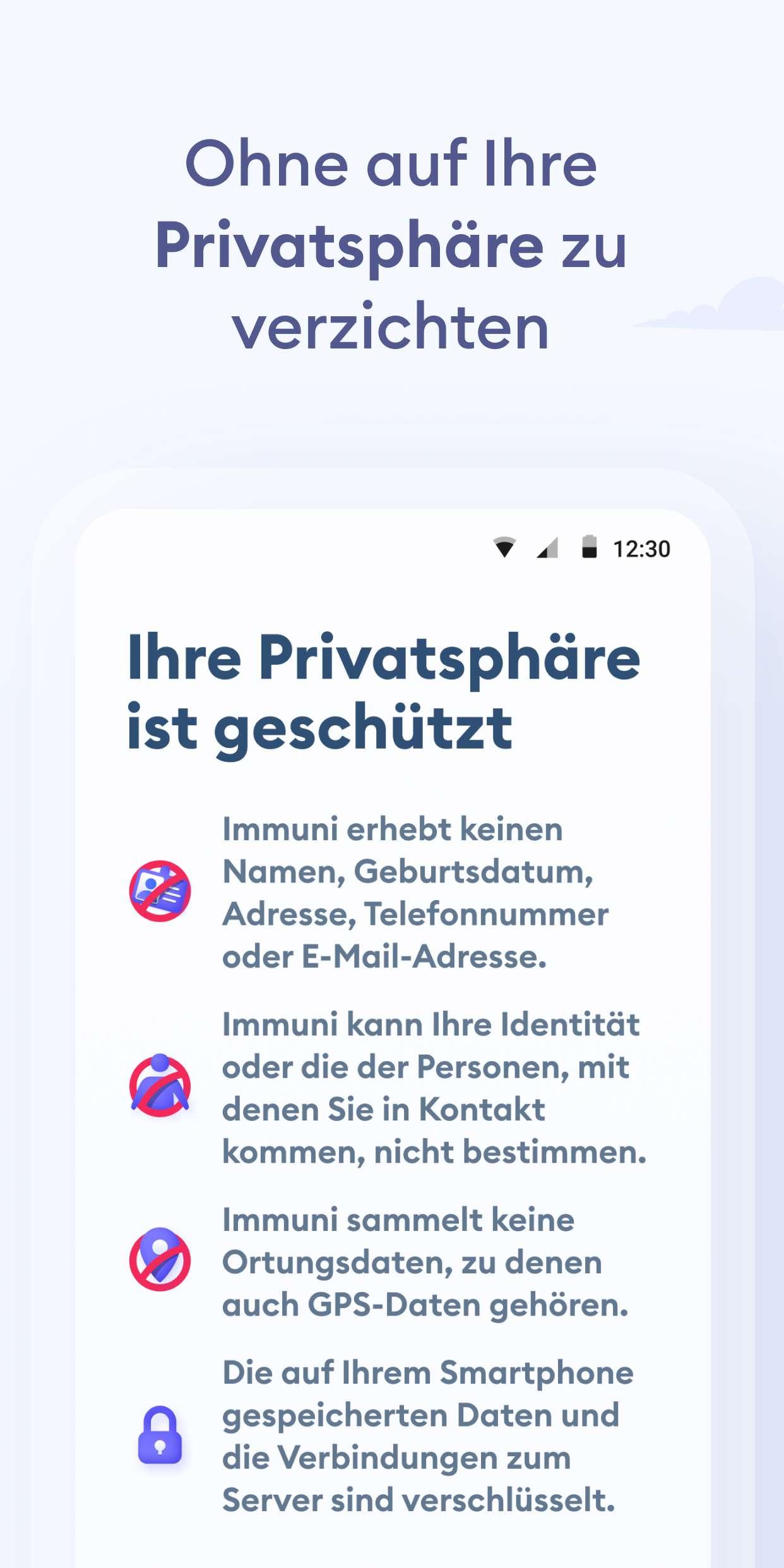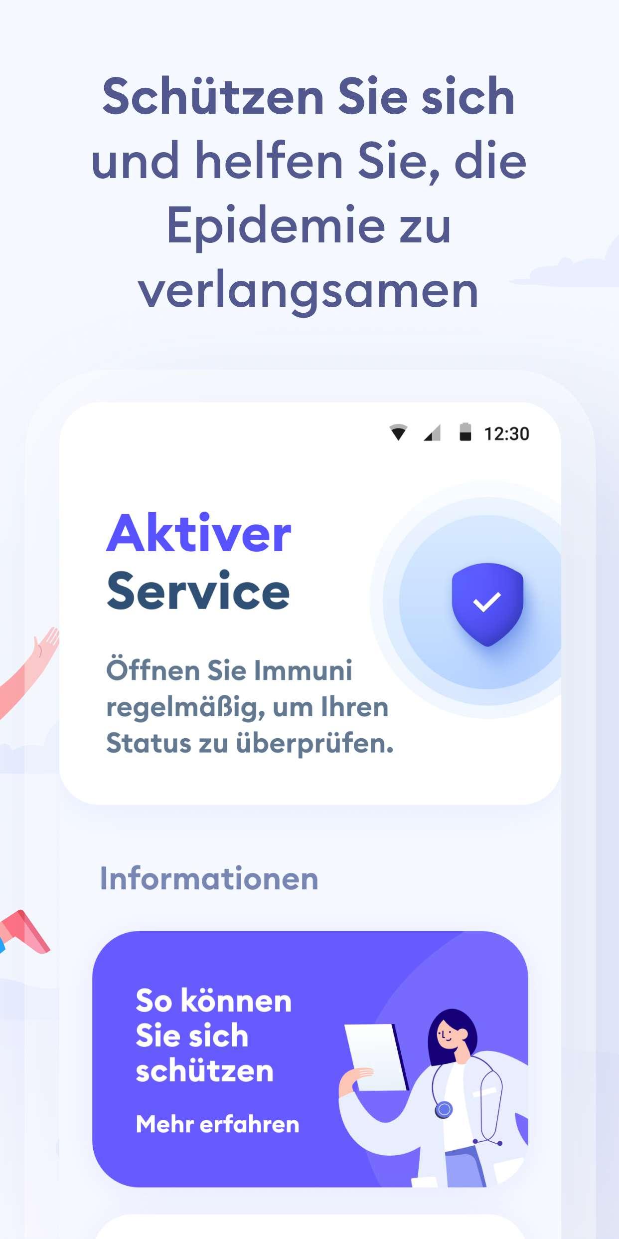 Immuni ist die offizielle Expositionsmelde-App der italienischen Regierung. Sie wurde vom Sonderkommissar für die Coronakrise in Zusammenarbeit mit dem Gesundheitsministerium und dem Ministerium für technologische Innovation und Digitalisierung entwickelt. Die App wurde unter absoluter Einhaltung des Datenschutzes für den Nutzer sowie der geltenden Gesetzgebung, einschließlich des Gesetzesdekrets Nr. 28. vom 30. April 2020, entwickelt und veröffentlicht. Im Kampf gegen die COVID-19-Pandemie trägt die App dazu bei, potenziell infizierte Nutzer so schnell wie möglich zu warnen, auch wenn sie keine Symptome zeigen. Diese Nutzer können sich dann in Selbstisolation begeben, um andere nicht anzustecken. So wird die Ausbreitung des Virus eingedämmt und die Rückkehr eines Großteils der Bevölkerung zum normalen Leben unterstützt. Da die Nutzer sofort verständigt werden, können Sie sich zudem an ihren Hausarzt wenden und so das Komplikationsrisiko mindern. Seit Juni 2021 ist die App einer der Zugangspunkte, um das digitale EU-COVID-Zertifikat zu erhalten, ein digitales Dokument, das auf EU-Ebene implementiert wurde, um die sichere Freizügigkeit der europäischen Bürger während der Pandemie zu erleichtern. Das vom Gesundheitsministerium herausgegebene Zertifikat ist ein digitaler Nachweis dafür, dass eine Person entweder gegen COVID-19 geimpft wurde, ein negatives Testergebnis erhalten hat oder sich von COVID-19 erholt hat. Das Expositionsmeldesystem von Immuni basiert auf der Bluetooth-Low-Energy-Technologie. Sie ist besonders energiesparend und kommt ohne die Verwendung von Geolokalisierungsdaten aus, zu denen auch GPS-Daten gehören. Die App sammelt zudem keine Daten, mit denen Nutzer identifiziert werden könnten, wie zum Beispiel Vor- und Nachname, Geburtsdatum, Adresse, Telefonnummer oder E-Mail-Adresse. Sie kann diese auch nicht abrufen. Immuni kann nur feststellen, ob es ein Aufeinandertreffen zwischen zwei Nutzern gab. Das System kann jedoch nicht erkennen, wer diese Nutzer sind oder wo das Treffen stattgefunden hat. Die folgende Liste zeigt einige der Maßnahmen, mit denen Immuni die Daten der Nutzer schützt: • Die App sammelt nur Daten, die zur Unterstützung und Verbesserung des Meldesystems zwingend erforderlich sind. • Die App überträgt mittels Bluetooth Low Energy einen zufällig generierten Code, der weder Informationen über das Smartphone noch über den Nutzer selbst enthält. Zudem ändert sich dieser Code mehrmals pro Stunde, um die Privatsphäre des Nutzers bestmöglich zu schützen. • Die auf dem Smartphone gespeicherten Daten sind verschlüsselt. • Die Verbindungen zwischen der App und dem Server sind verschlüsselt. • Alle auf dem Gerät oder Server gespeicherten Daten werden gelöscht, sobald sie nicht mehr benötigt werden. Das Löschen erfolgt spätestens bis zum 31. Dezember 2021. • Das Gesundheitsministerium ist für die Sammlung der Daten verantwortlich und entscheidet über deren Verwendungszweck. In jedem Fall werden die Daten ausschließlich dazu genutzt, um COVID-19 einzudämmen oder die wissenschaftliche Forschung zu unterstützen. • Die Daten werden auf Servern in Italien gespeichert und von öffentlichen Einrichtungen verwaltet. Immuni stellt keine Diagnosen und ist dazu auch nicht in der Lage. Basierend auf der Aufzeichnung des Zusammentreffens mit potenziell ansteckenden Nutzern erarbeitet Immuni Verhaltensempfehlungen. Die App ist kein medizinisches Produkt und kann in keinem Fall einen Arzt ersetzen. Immuni ist ein wichtiges Werkzeug im Kampf gegen diese furchtbare Pandemie und jeder Nutzer erhöht dessen Effizienz. Daher raten wir Ihnen dringend, die App zu installieren, richtig zu verwenden und Familie und Freunde dazu zu ermutigen, es Ihnen gleichzutun. Die Nutzung ist nicht verpflichtend, die Entscheidung liegt allein bei Ihnen.
