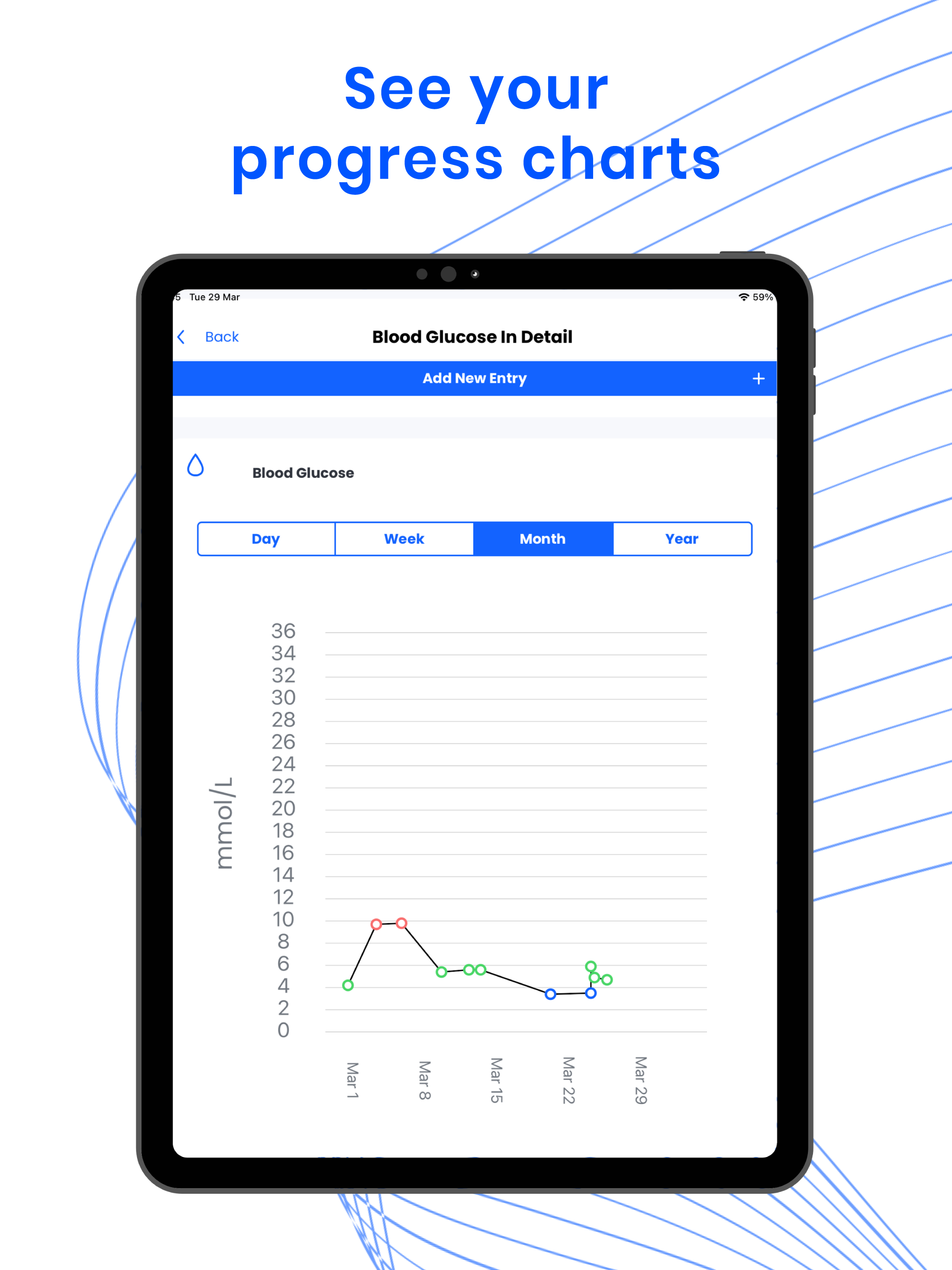 • Blutzucker-Tracker: Blutzuckertrends anzeigen und verwalten