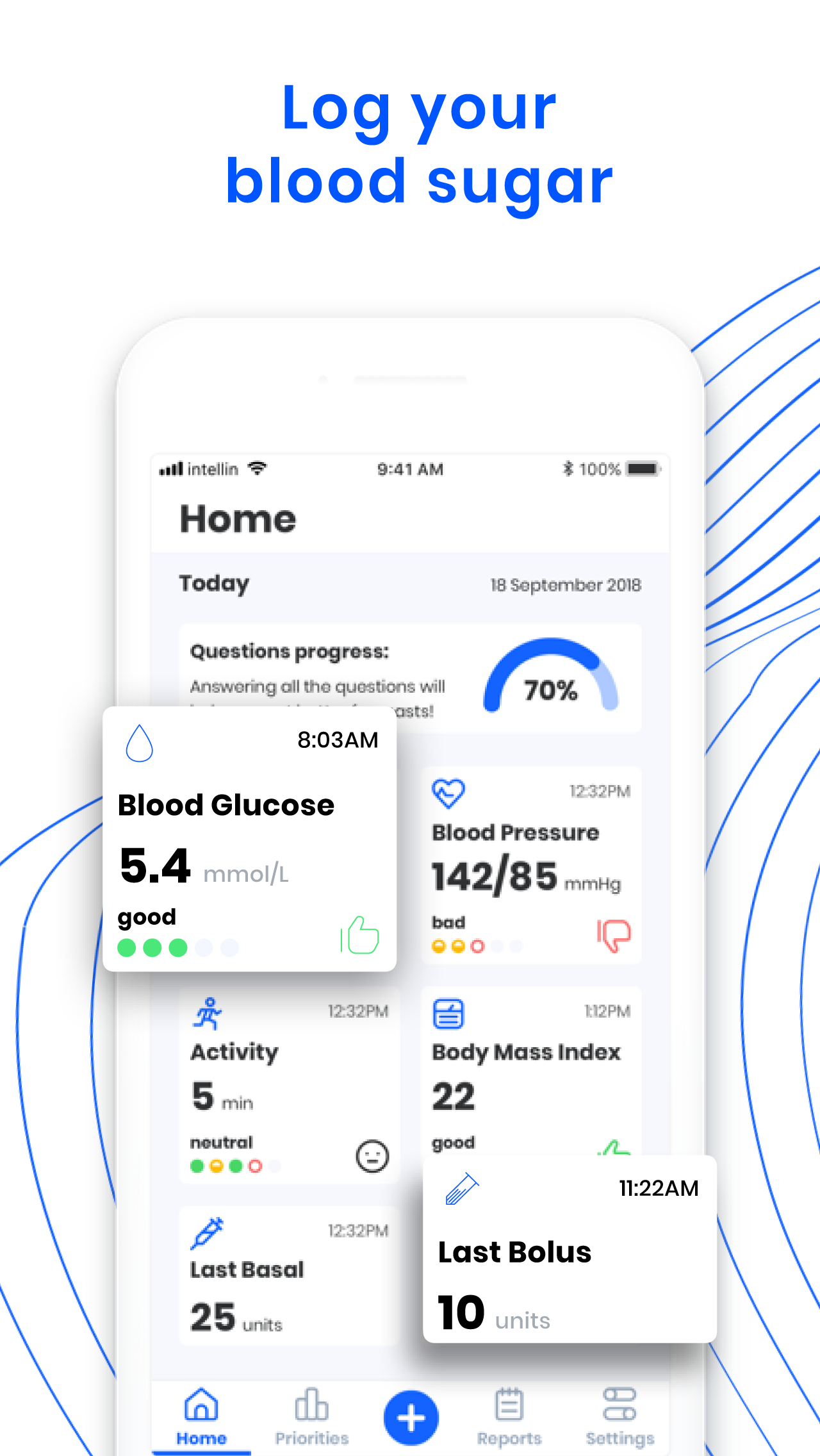 Verwalten Sie Ihren Diabetes noch heute! Intellin hilft Ihnen, mit Diabetes zu leben, indem es Ihren Diabetes täglich verfolgt und gleichzeitig das Risiko von Diabetes-Komplikationen verringert.