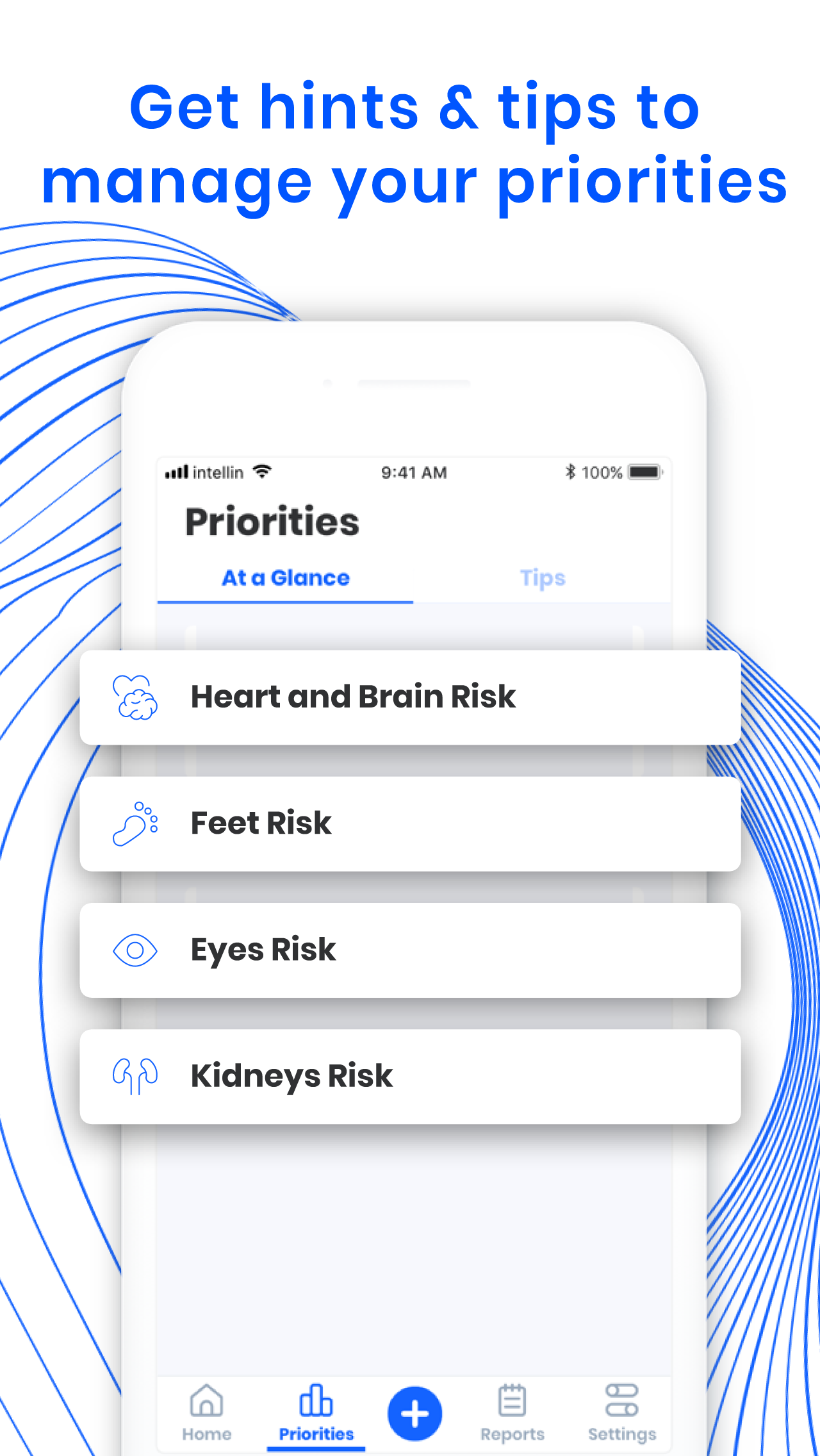 Verfolgen Sie, was am wichtigsten ist – Blutzucker, Blutzuckerwerte, Blutdruckprotokoll, Aktivität – alles in einer Diabetes-Manager-App. Intellin® Manage Diabetes bietet personalisierte Vorhersagen zu Ihren Bereichen mit dem höchsten Diabetes-Risiko und gibt Tipps, wie Sie diesen Diabetes-Komplikationen vorbeugen können.