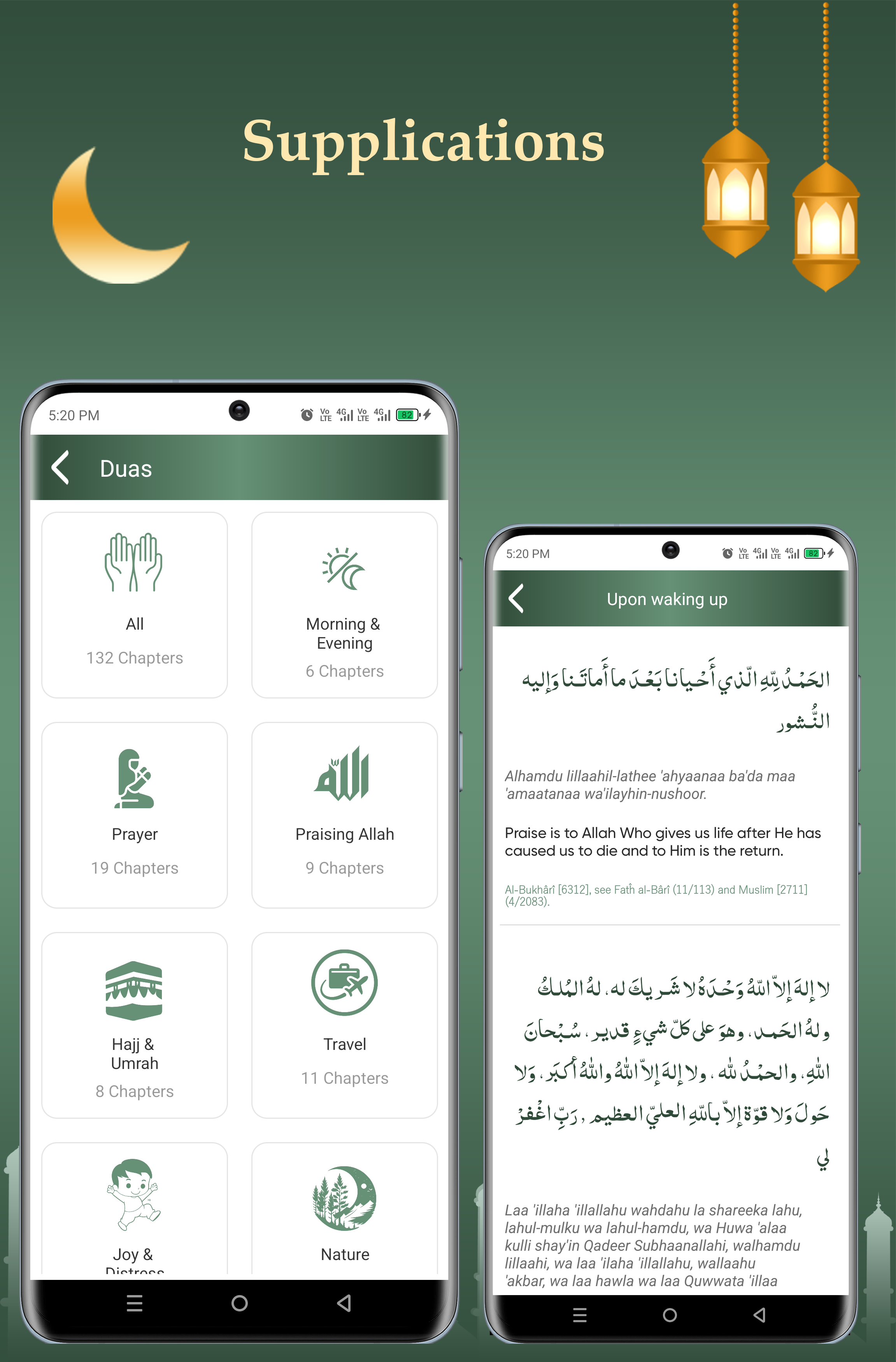 ✔ Koran: Der Koran mit Übersetzungsfunktion ist in dieser App enthalten und bietet Zugriff auf den vollständigen Text des Korans sowie Übersetzungen.