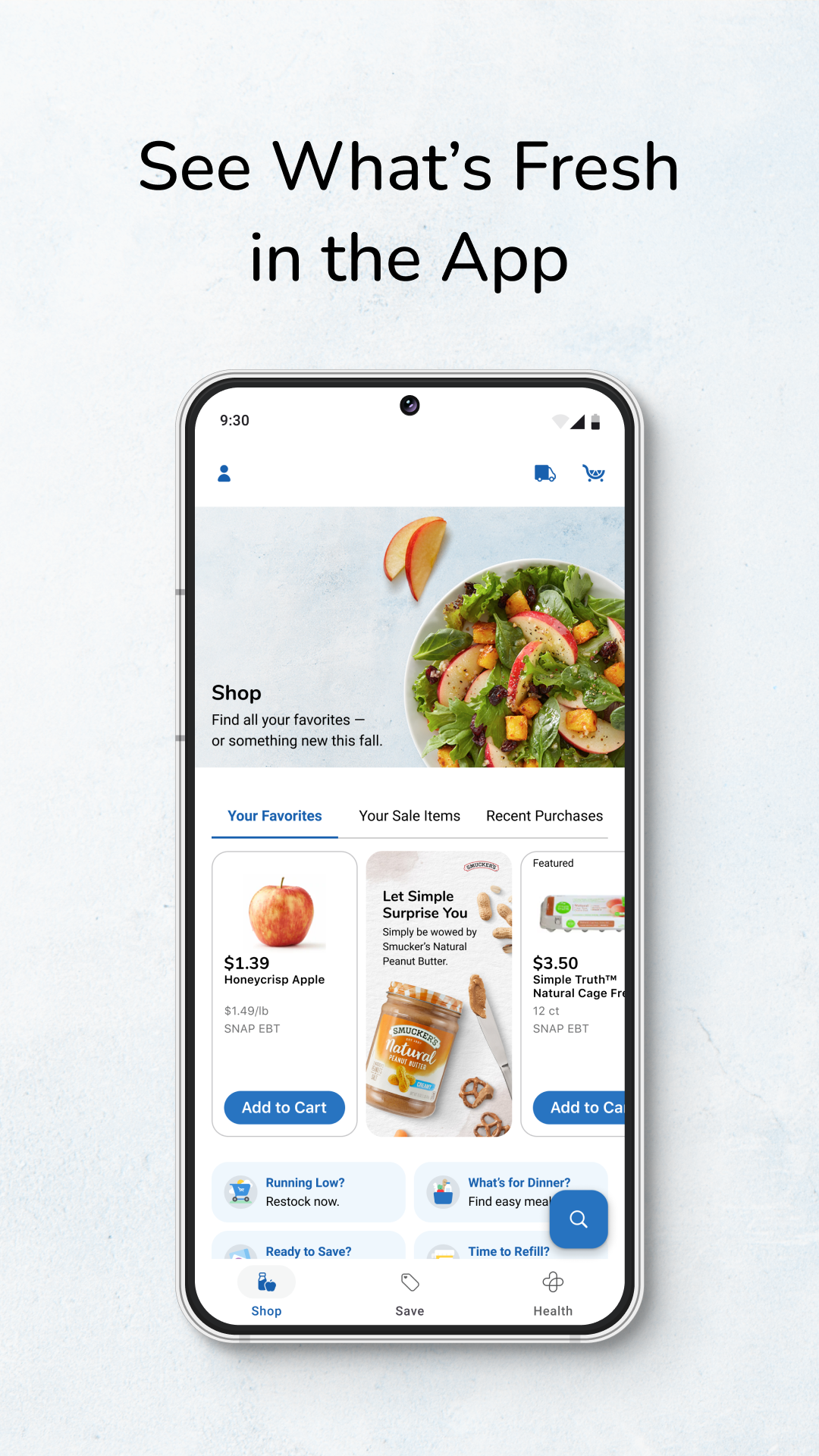 Suchen Sie ein schnelleres, einfacheres und lohnenderes Einkaufserlebnis? Sparen Sie Zeit und Geld mit der JayC-App! Sie haben Komfort, Einsparungen und Belohnungen immer zur Hand. Laden Sie einfach die App herunter, erstellen Sie ein Konto und registrieren Sie Ihre JayC Shopper-Karte, um auf all diese großartigen Vorteile zuzugreifen: - Shop Abholung oder Lieferung direkt aus der App! - Erstellen Sie ganz einfach Ihre Online-Einkaufsliste und verwenden Sie sie, um im Geschäft einzukaufen oder Ihre Online-Bestellung aufzugeben. - Zeigen Sie Ihre wöchentlichen Anzeigen an und fügen Sie schnell Verkaufsartikel oder Sonderangebote zu Ihrer Einkaufsliste hinzu. - Laden Sie digitale Gutscheine direkt auf die Karte Ihres Käufers und speichern Sie damit Artikel von Ihrer Einkaufsliste. - Erhalten Sie noch mehr Einsparungen, wenn Sie Artikel aus unserer Smart Suggest-Funktion auswählen. - Füllen Sie Ihre JayC Pharmacy-Rezepte direkt von Ihrem Telefon oder Tablet aus nach. Geben Sie einfach Ihre Rezeptnummer ein, wählen Sie Ihre Apotheke aus und vereinbaren Sie einen geeigneten Abholzeitpunkt. - Überprüfen Sie Ihre Tankstellen. - Verwenden Sie unseren Locator, um das nächstgelegene JayC-Geschäft oder Tankstelle zu finden. - Zeigen Sie Ihre Kaufhistorie an. Erstellen Sie damit Standardaufträge, mit denen Sie Zeit sparen. - Sparen Sie GROSS mit exklusiven Aktionen, personalisierten Angeboten und Bonusbelohnungen. Um die JayC-App nutzen zu können, benötigen Sie ein digitales JayC-Konto. Sie können sich für Ihr Konto registrieren und die Karte Ihres Käufers über die App verknüpfen. Wenn Sie keine Einkaufskarte haben, können Sie bei Ihrer Registrierung eine erstellen, um auf all diese Ersparnisse und Belohnungen zuzugreifen!