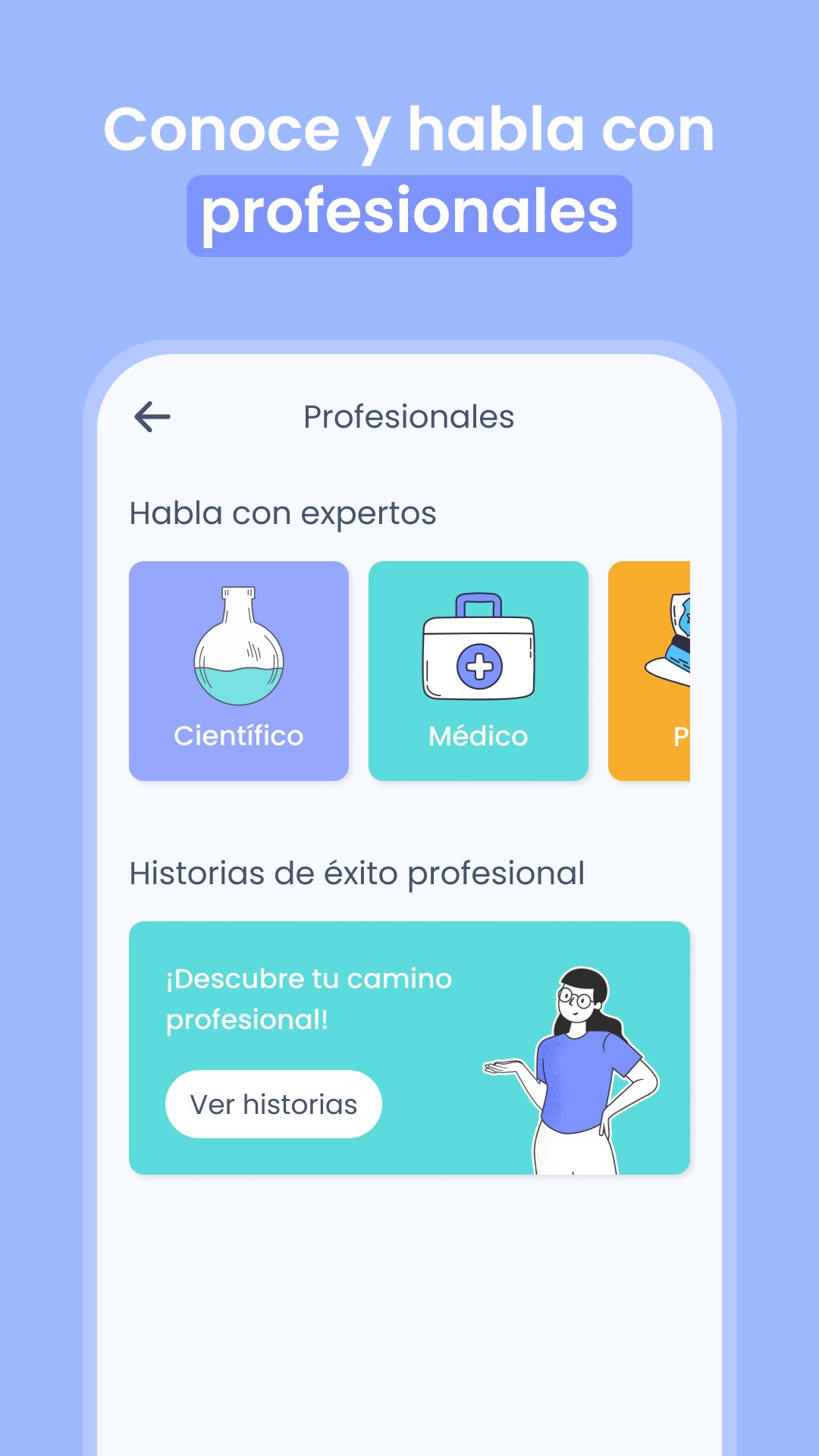 Mit unserer Berufslandkarte, die aus Tests, immersiven Geschichten, Videos und Aktivitäten besteht, helfen wir Ihnen auf diesem Weg der Selbsterkenntnis, damit Sie eine bessere Entscheidung treffen können.