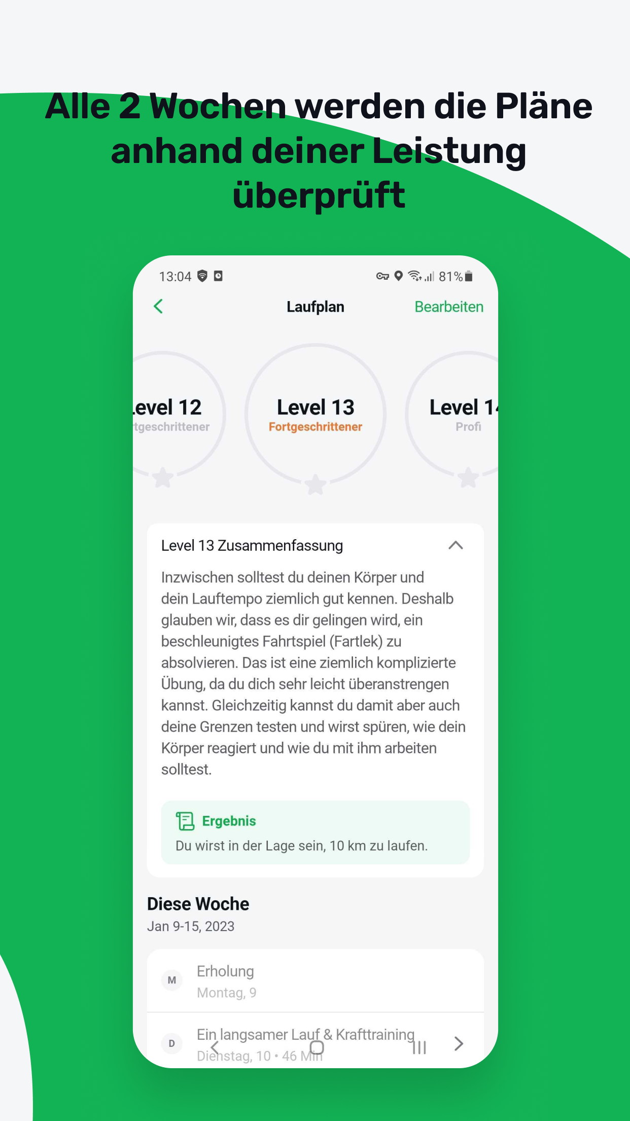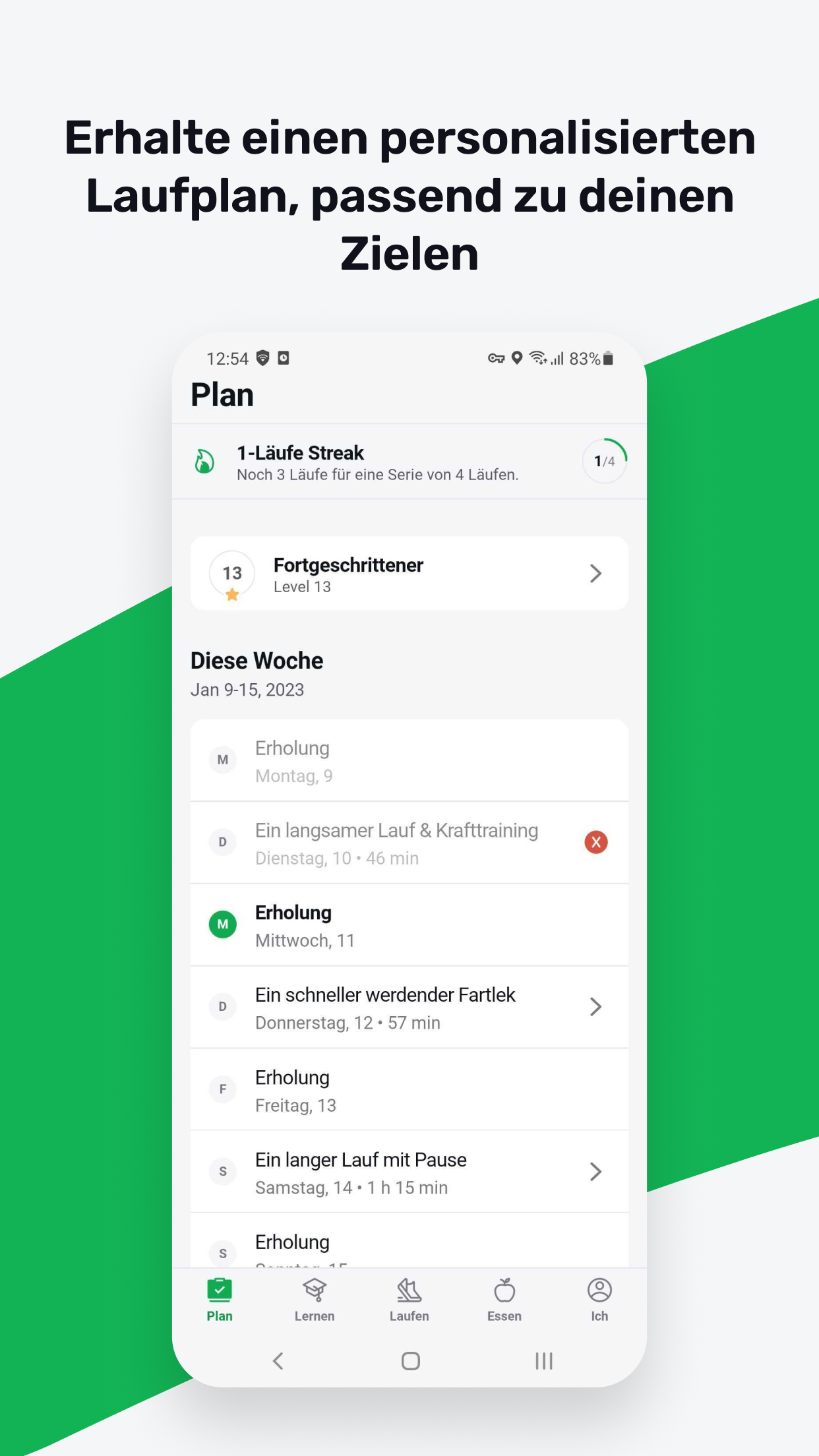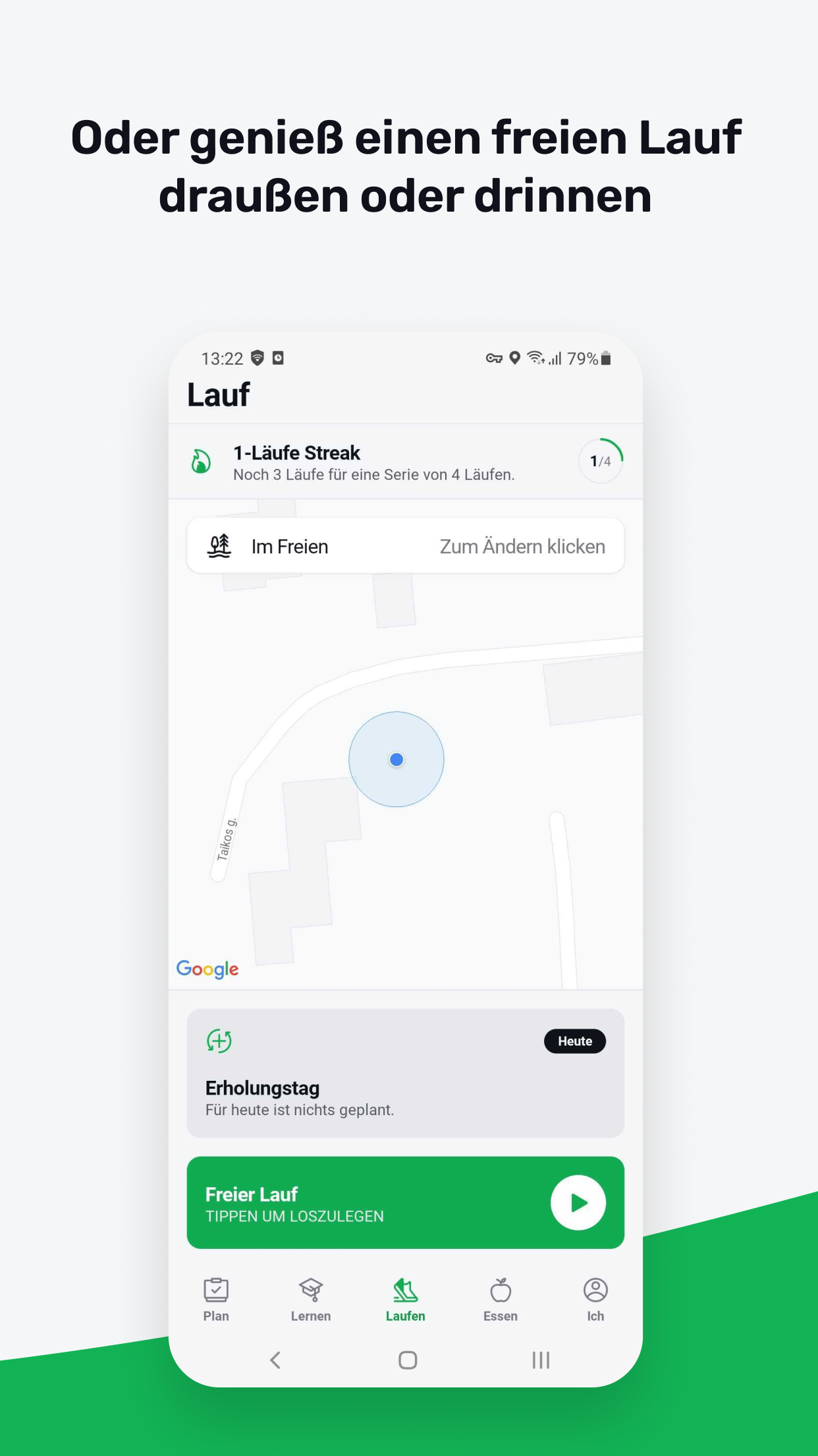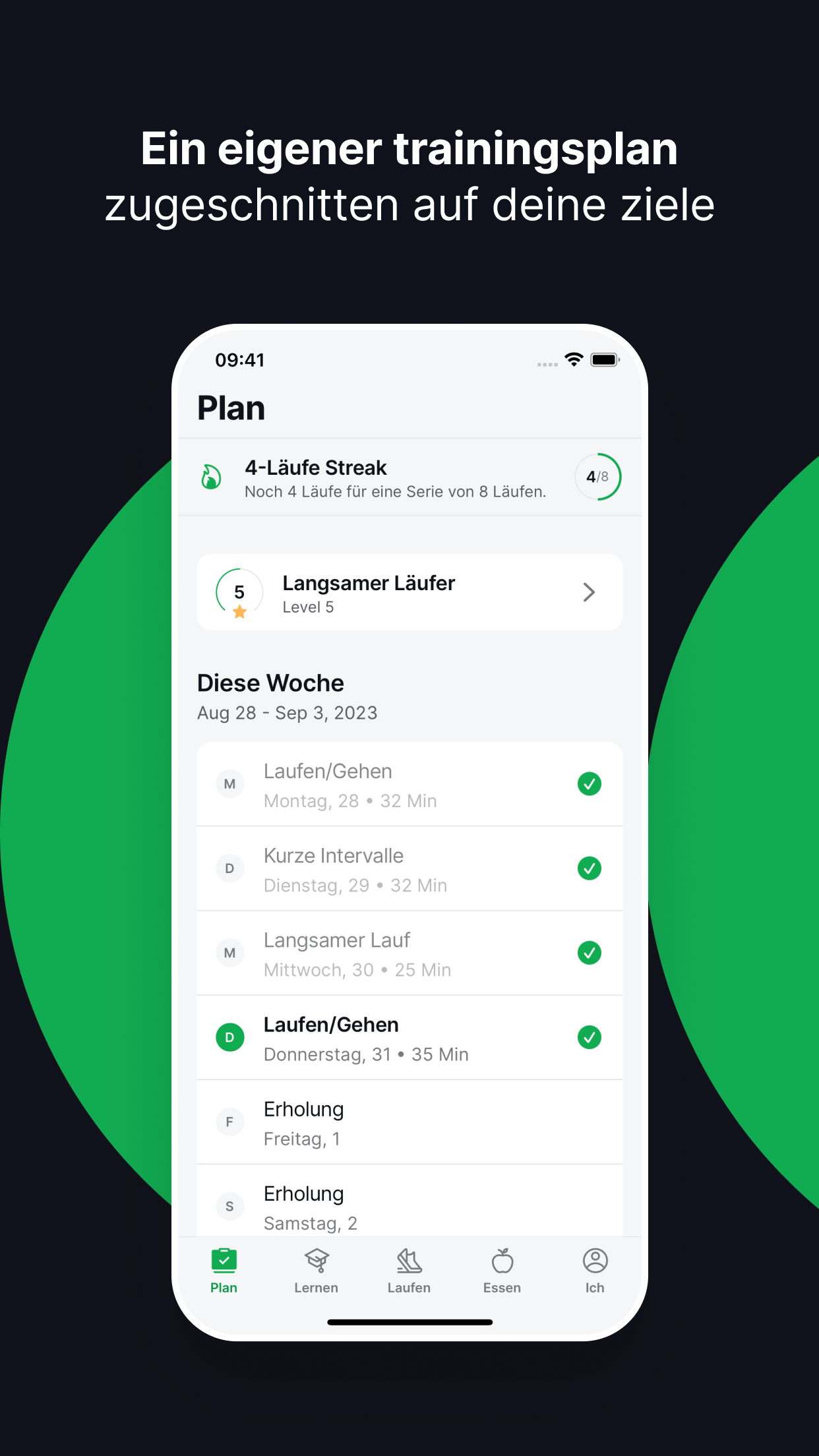 Joggo richtet sich als Lauf-App an Anfänger und Profis gleichermaßen und ist dabei ideal für das Training im Freien und auf dem Laufband. Mit dem personalisierten Laufprogramm, einem maßgeschneiderten Ernährungsplan und dem praktischen Lauftracker kannst du deine Fitness- und Abnehmziele nach deinen Vorstellungen und in deinem Tempo erreichen. Betrachte uns als deinen persönlichen Lauftrainer, Ernährungsberater und größten Fan. Dabei sind wir immer nur wenige Klicks entfernt und begleiten dich bei jedem Schritt. Erstellt von ausgebildeten Trainern. Zugeschnitten auf deine Ziele. Alles damit es wirklich passt. FUNKTIONEN VON JOGGO PERSONALISIERTES LAUFPROGRAMM FÜR ANFÄNGER UND PROFIS Beantworte zunächst unser Quiz direkt in der App, absolviere einen kurzen Testlauf und erhalte einen ganz persönlichen Trainingsplan, zugeschnitten auf deine Bedürfnisse, Ziele und deinen Lebensstil. Egal also, ob du Gewicht verlieren, für einen 5-Kilometer-Lauf trainierst oder versuchst, eine neue persönliche Bestleistung zu erreichen – wir sind für dich da. LAUFBAND-MODUS Läufst du nicht gerne im Freien oder spielt das Wetter einfach nicht mit, kannst du mit dem entsprechenden Modus jederzeit auch auf dem Laufband trainieren. Ob im Fitnessstudio oder zu Hause, laufen kannst du so an jedem Tag, zu jeder Zeit. WÖCHENTLICHE ANPASSUNG DES PLANS AUF DER GRUNDLAGE VON FORTSCHRITTEN UND FEEDBACK Ganz ähnlich wie auch ein Personal Trainer bewerten wir deine Fortschritte alle zwei Wochen und passen die Intensität deines Plans entsprechend an. Genauso richten wir uns nach deinem Feedback. Auf diese Weise arbeitest du auf deine Fitnessziele in deinem ganz eigenen Tempo hin. BILDUNGSINHALTE UND RUNDUMBETREUUNG Von den Themen Ernährung und der Vorbeugung von Verletzungen bis hin zu Atemtechniken und vielem mehr – profitiere von einer Vielzahl interessanter Artikel und Tipps, die speziell für dich zusammengestellt werden. So wirst du bestens auf alle Eventualitäten vorbereitet. BELOHNUNGEN FÜR DEINE ANSTRENGUNGEN, UM DICH IMMER WEITER ZU MOTIVIEREN Verdiene digitale Medaillen für jede erfolgreich abgeschlossene Lauf-Serie (auch Streak genannt). Ziel ist es, deine Motivation immer neu zu entfachen, damit du auch weiterhin konsequent deine Ziele verfolgst. PERSONALISIERTER ERNÄHRUNGSPLAN BASIEREND AUF DEINEN LIEBLINGSZUTATEN Lass uns zusätzlich einen maßgeschneiderten Ernährungsplan für dich erstellen, der auf deine Vorlieben und Ernährungsbedürfnisse zugeschnitten ist. So profitieren dein Körper und deine allgemeine Gesundheit, ohne, dass du hungerst oder deinen Lebensstil vollständig umkrempeln musst. PRAKTISCHE ERINNERUNGEN Lass dich von deiner App an deinen nächsten Lauf und neue Inhalte erinnern. Auf diese Weise verlierst du deine Ziele auch langfristig nicht aus den Augen. LAUF- UND ABNEHM-TRACKER Unsere App bietet GPS- und Streckenverfolgung, wir überwachen deine Laufgeschwindigkeit und tracken alle sportlichen Aktivitäten, damit du deine Lauffortschritte immer optimal im Blick behalten kannst. Unser Abnehm-Tracker unterstützt dich außerdem bei der Gewichtskontrolle und hilft dir so, dein Wunschgewicht schneller zu erreichen. Zusätzlich zu erwerben: WORKOUT-PLAN: Sichere dir einen Workout-Plan für den gesamten Körper inklusive Video-Tutorials und detaillierten Anweisungen für Unterkörper, Oberkörper und die Körpermitte, erstellt von unseren Top-Sportspezialisten. HAFTUNGSAUSSCHLUSS: Bitte konsultiere zusätzlich zur Nutzung dieser App und bevor du mögliche Entscheidungen triffst, die deine Gesundheit betreffen, einen Arzt oder eine Ärztin. Datenschutzerklärung: https://joggo.run/en/data-protection-policy/ Allgemeine Geschäftsbedingungen: https://joggo.run/en/general-conditions