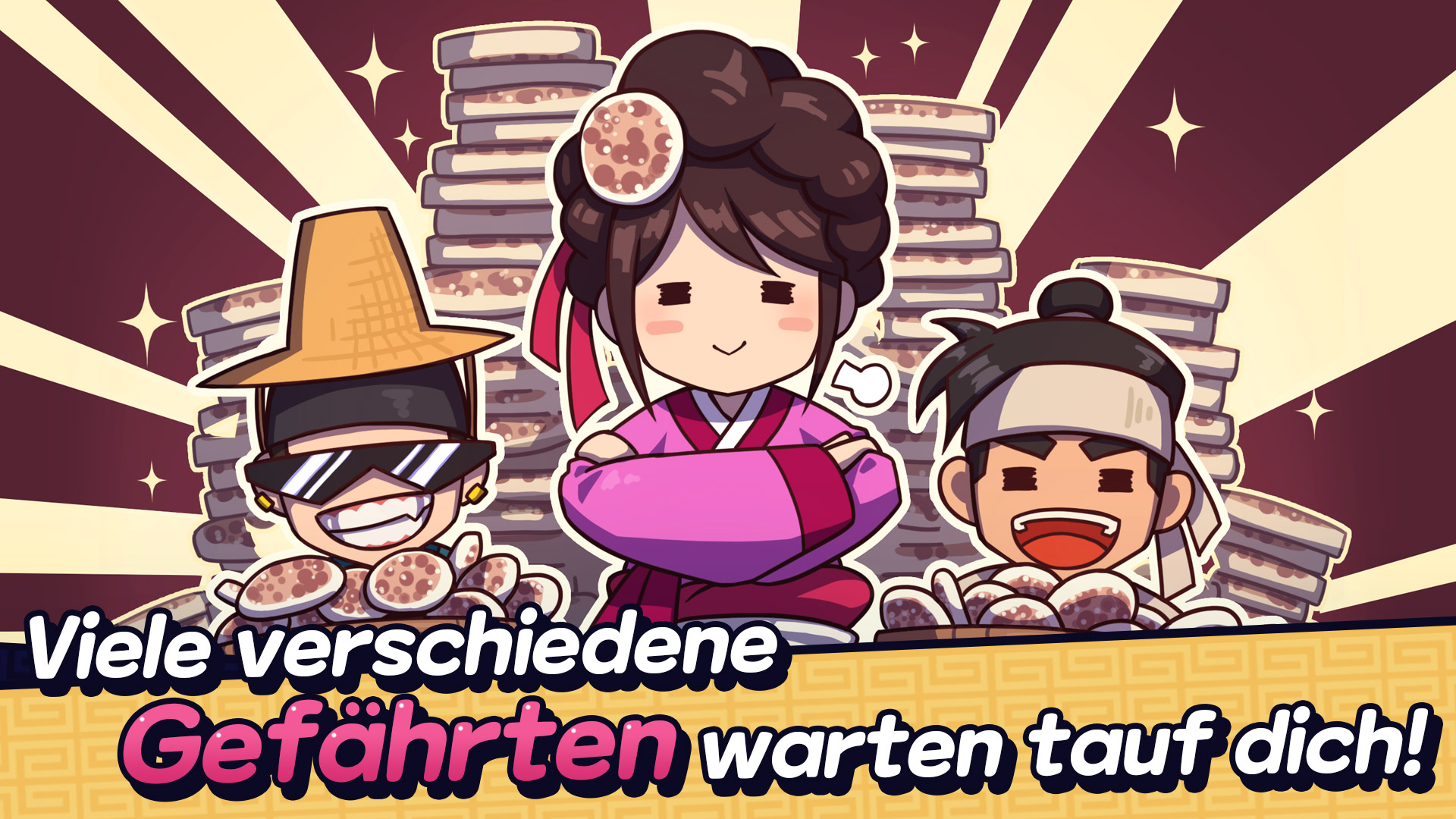 Ta-da! Und schon bist du der Manager einer Taverne aus der Joseon-Ära einem Ort, an dem man Essen und Trinken bekommt! Jumo, die Tavernenbesitzerin, will die heruntergekommene Taverne wiederbeleben. Nur du kannst ihre Taverne wieder zu altem Glanz verhelfen und in die beste Taverne des Königreichs verwandeln! Beginne, Hotteok zuzubereiten und deine Kunden zu bedienen, und baue dann deine Taverne aus! ▶ Ich, der Manager einer Taverne aus der Joseon-Dynastie? ◀ Du hast in allen Bereichen des Tavernenmanagements freie Hand. Hotteok (Reispfannkuchen) herstellen, Produktionsanlagen kaufen und Personal einstellen - alles liegt in deiner Hand! Was möchtest du zuerst tun, um deine Taverne zu vergrößern? ▶ Schneller, schneller!! ◀ Tippe auf den Bildschirm, um Hotteok zu machen, und mache dann noch mehr mit den bereits hergestellten! Am Anfang musst du einen nach dem anderen machen, aber später wirst du im Handumdrehen von 1.000 auf 10.000 kommen. Mit dem Hotteok stellst du Mitarbeiter ein, und schon bald wirst du ein leichtes Leben führen! ▶ Entfessle die göttliche Macht in deinen Fingerspitzen. ◀ Mache Hotteok, kaufe automatisierte Anlagen, bediene Kunden, Personal einstellen und schulen... Alles nur einen Fingertipp entfernt! Glaubst du nicht, dass das Spiel entspannend ist? Das ist es aber! Versuche es doch mal! ▶ Nachdem alle eingeschlafen sind... ◀ Das kommt vor. Du schläfst ein oder bist beschäftigt und du kannst nicht deine Taverne ansehen. Keine Sorge, deine Leute und Einrichtungen machen dich reich. Entscheide einfach, was du kaufen willst und was verbessert werden soll! Das ist schließlich die Aufgabe des Chefs! ▶ Die Schneckenbraut, die in einer Taverne Hotteok verkauft? ◀ Was es mit den koreanischen Kindergeschichten auf sich hat? Das sind potenzielle Mitarbeiter, die eingestellt werden können!° Hast du dich gefragt, warum Diener Dol in einer Taverne arbeiten wollte? Oder warum Seondal, der Schwindler, hier Hotteok verkauft? Beginne jetzt deine Reise als Tavernenmanager und finde es heraus! Oh, du willst also versuchen, eine Taverne zu führen? Ausgezeichnete Wahl! Ich wusste, dass ich ein Auge für Menschen habe. Ich warte auf dich!