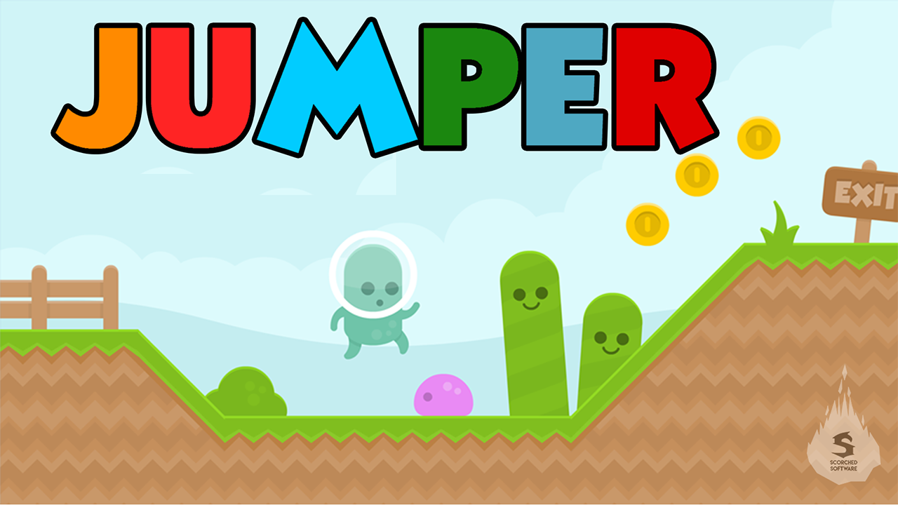 Jumper Jumper Jumper Jumper, a nice little jump and run game or sidescroler. The game Jumper includes 14 levels.The Sindscroler/ Jump and run game Jumper was developed in unity.Jumper does not consume much space and is the ideal jump and run game you can play offline while downloading something. As the only developer of the jump and run type game Jumper it is really important to get your feedback about my game Jumper.