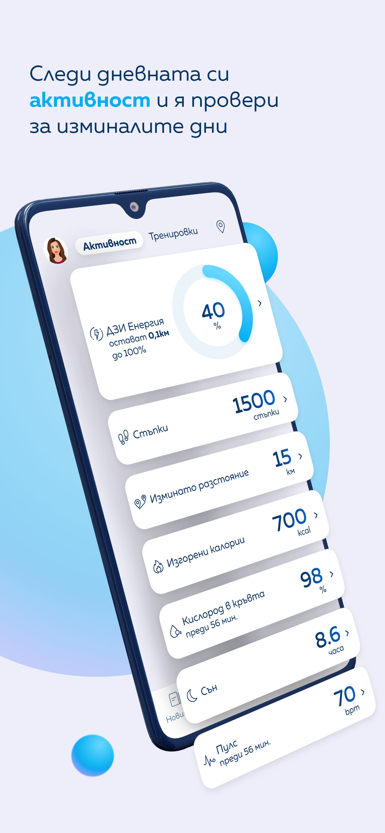 Tägliche Aktivität - Erkennen, analysieren und überwachen Sie die wichtigsten Indikatoren für Ihre Gesundheit - Schritte, zurückgelegte Strecke, verbrannte Kalorien, Schlafniveau sowie Herzfrequenz.