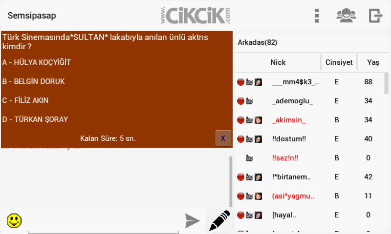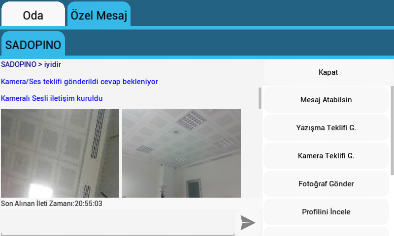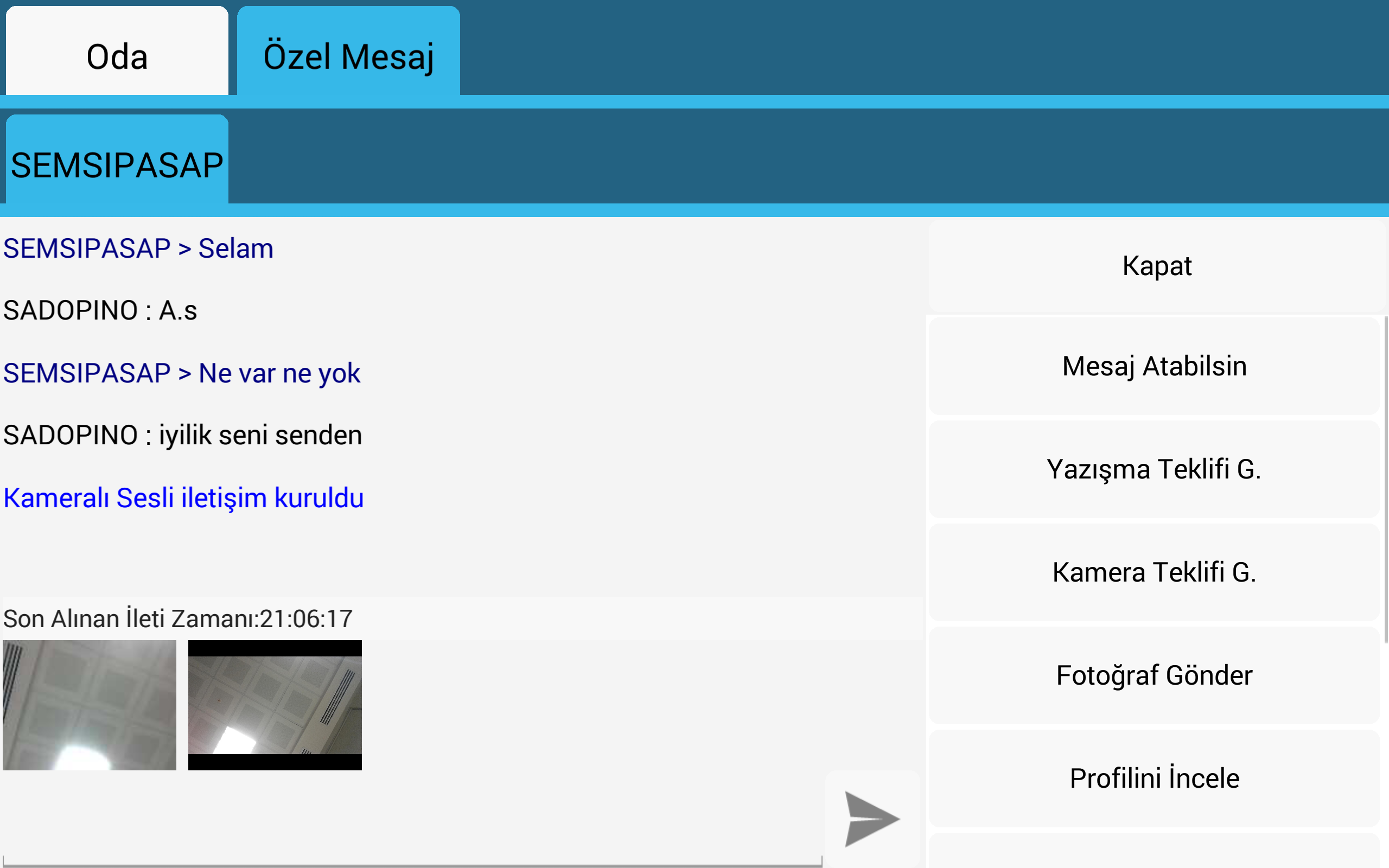 Die Kamera ist mit Freunden in einer Umgebung, die ein neues Maß an Unterhaltung und Tagungsmöglichkeiten bietet. Sie können Anrufe von der Kamera machen und spezielle Nachrichten Abschnitt mit den Leuten Schreiben Sie treffen. Sie können in den Chat-Raum-Nachrichten aus dem Allgemeinen Abschnitt mit allen Benutzern chatten. die kulturellen Fragen in regelmäßigen Abständen, während zur gleichen Zeit mit denen in den Raum im Chat beantworten kann. Benutzer Geschlecht, Alter, Stadt, können Sie auf dem Bildschirm die Kamerainformationen sehen, können Sie das Profilbild überprüfen. Sie wollen Kontakt und private Nachrichten Abschnitt bietet dem Benutzer senden, um die Korrespondenz geschlossen. Eine Zeitspanne, haben sich darauf geeinigt, den Vorschlag zu der gegenüberliegenden Seite der Kamera Interviews Sie Benutzer korrespondiert haben zu senden Sie können nicht mit der Kamera chatten. Dating-Sites, in der Qualität der Chat-Seiten. Freunde finden es sehr leicht, Freunde zu machen. Einige Features: - Ein One-Kamera Interviews aus dem privaten Nachrichten Abschnitt - Foto Einreichungen können an den Benutzer gesendet werden, so dass eine sofortige Fotos von der Kamera aufgenommen - Zur gleichen Zeit auf spezielle Nachrichten mit mehreren Personen zu entsprechen können, - Fügen Sie ein Profilbild von der Kamera aufgenommen - Die Fähigkeit zur Kontaktliste als Freund aufgenommen - Kann für beide Seiten miteinander in einer Weise, die Nachrichten in den Offline-Benutzer Deiner Freundesliste kommunizieren - Freunde des Systems kann die Frist für die Eingabe abgefragt werden - Allgemeine Wissensfragen zu beantworten, ob Sie mit anderen Benutzern im Raum zur gleichen Zeit konkurrieren - Sie können zwischen Chat-Räume wechseln - Präsentiert als farbige Symbole können geschrieben werden, wenn eine Nachricht an den allgemeinen Abschnitt zu schreiben ist auch verfügbar - Gastzugang zum Test edilebilir.ü während Facebook Benutzer ein Mitglied des Namens werden kann - Durch die Möglichkeit bietet, auf einfache Weise Zugriff auf die in der nick von gebrauchten Geräten gespeicherten Soll - Filter-Bildschirm auf der ersten Sitzung in der Kamera-Interview, das Entfernen des Filters mit Genehmigung durch den Benutzer zu gelangen - Um eine Beschwerde von Bildkamera Interview machen
