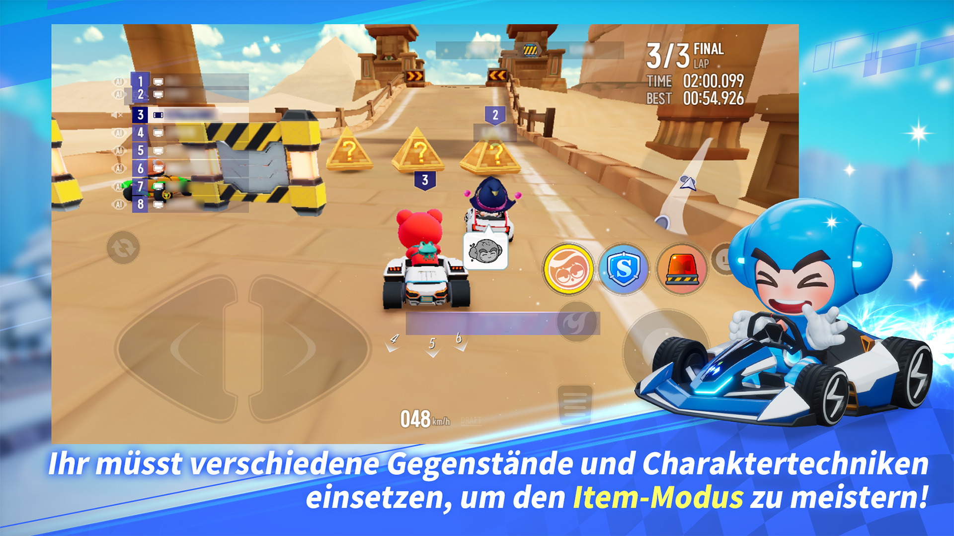Spielt den neu hinzugefügten 'Multiwürfel-Item-Modus', um neue taktische Herausforderungen in altbekannten Rennen zu meistern! - Neuer 'Multiwürfel-Item-Modus' zum Modus-Labor hinzugefügt. - 'Tagesmissionen'-Event hinzugefügt. - Event für neue/wiederkehrende Benutzer hinzugefügt. - Chatsystem im Spiel hinzugefügt. - Zeitangriff-Streckenübung verbessert. - Benutzeroberfläche und Nutzererlebnis verbessert.