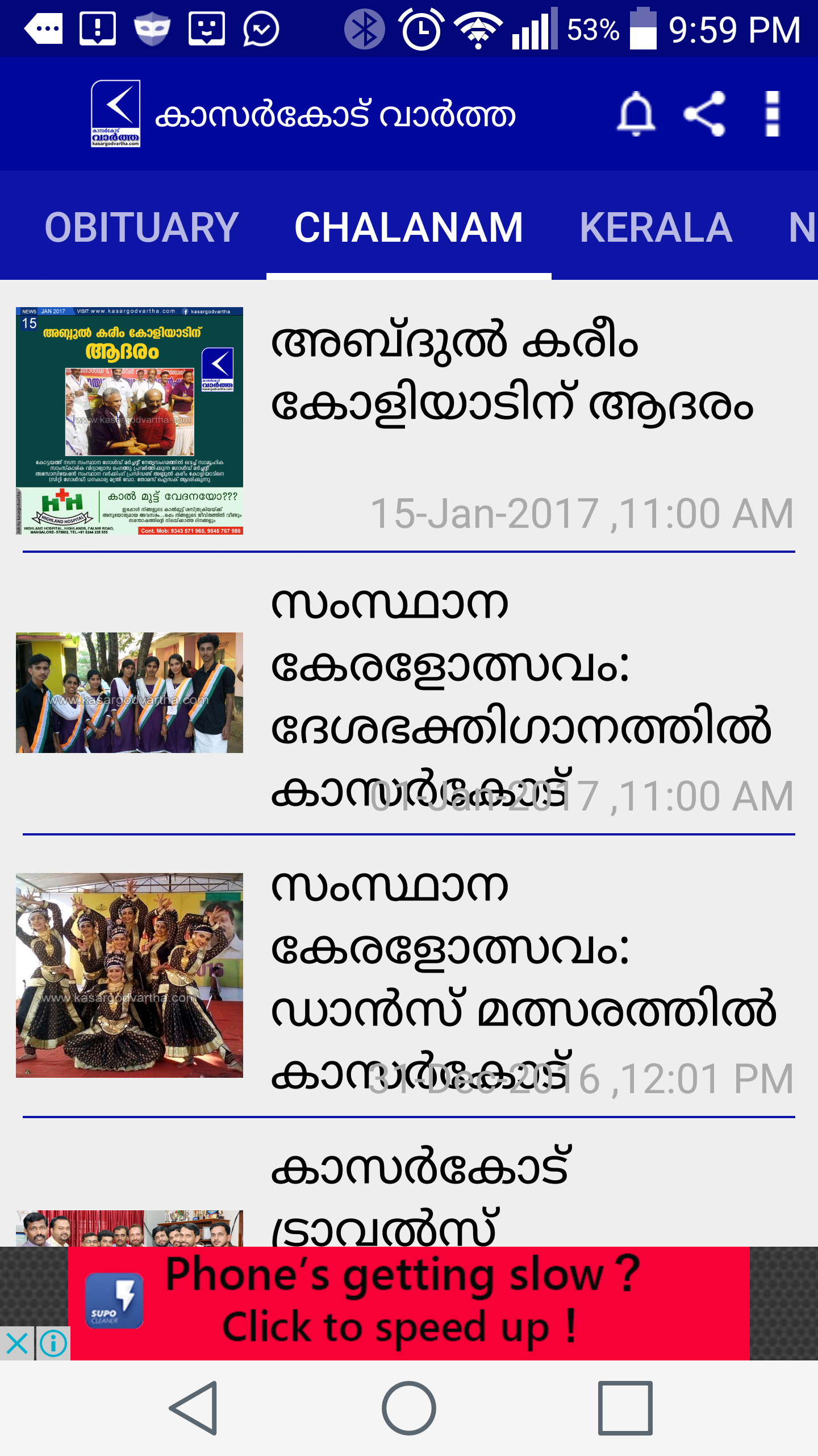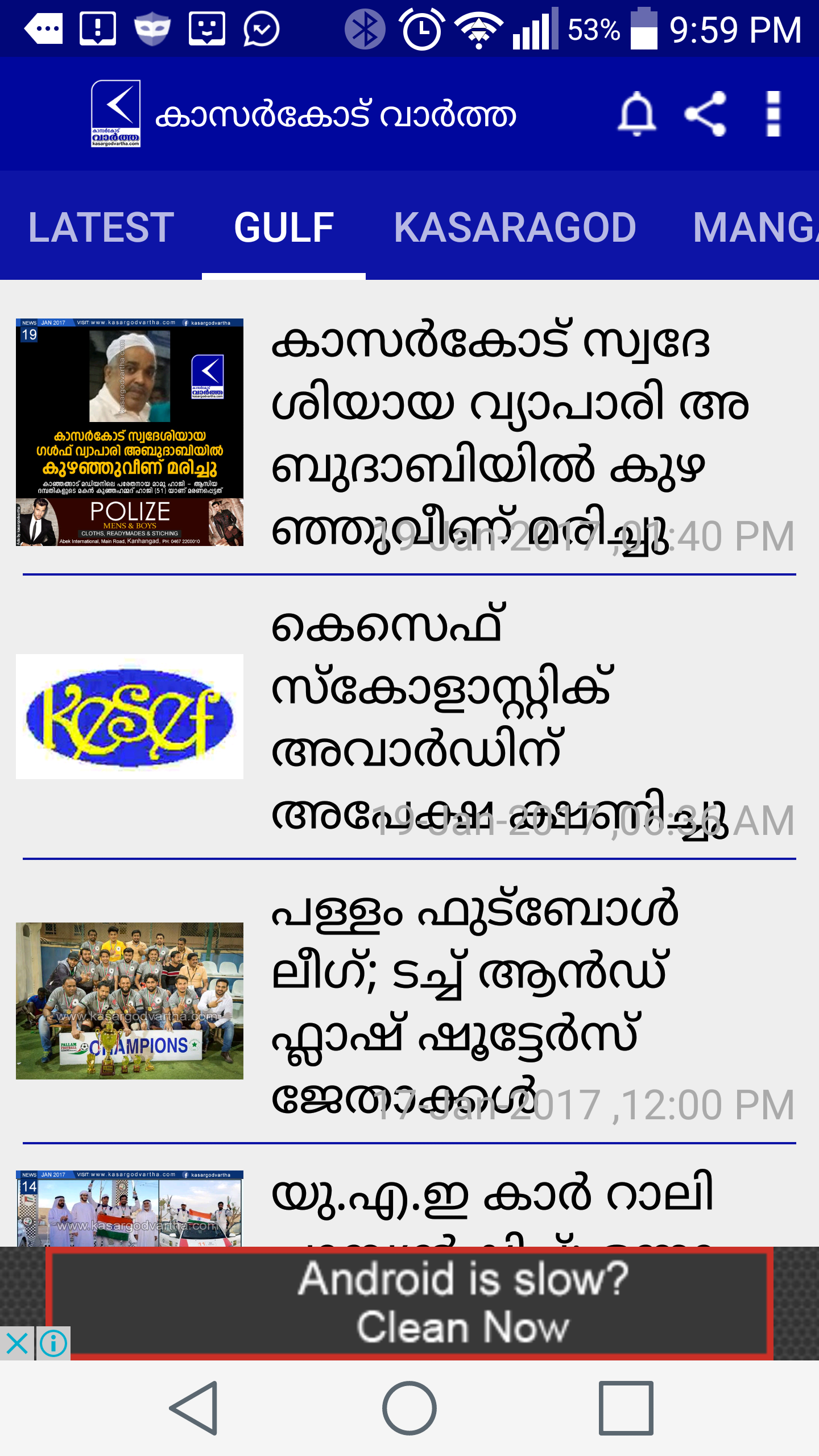 Mehr als die Informationen aus weltweit, werden wir in der Regel geneigt sein, um die Ereignisse oder Geschehnisse in der Nähe Ort kennen; und, für die NRIs der Golfstaaten ist diese News-Website lebenserhalt! Wir wetten, gegen jeden Distrikt von Kerala, oder einem Stadtteil von jedem Staat von Indien wird mit einem Komplett begriffen regionale Nachrichten-Raum wie kasargodvartha.com!
