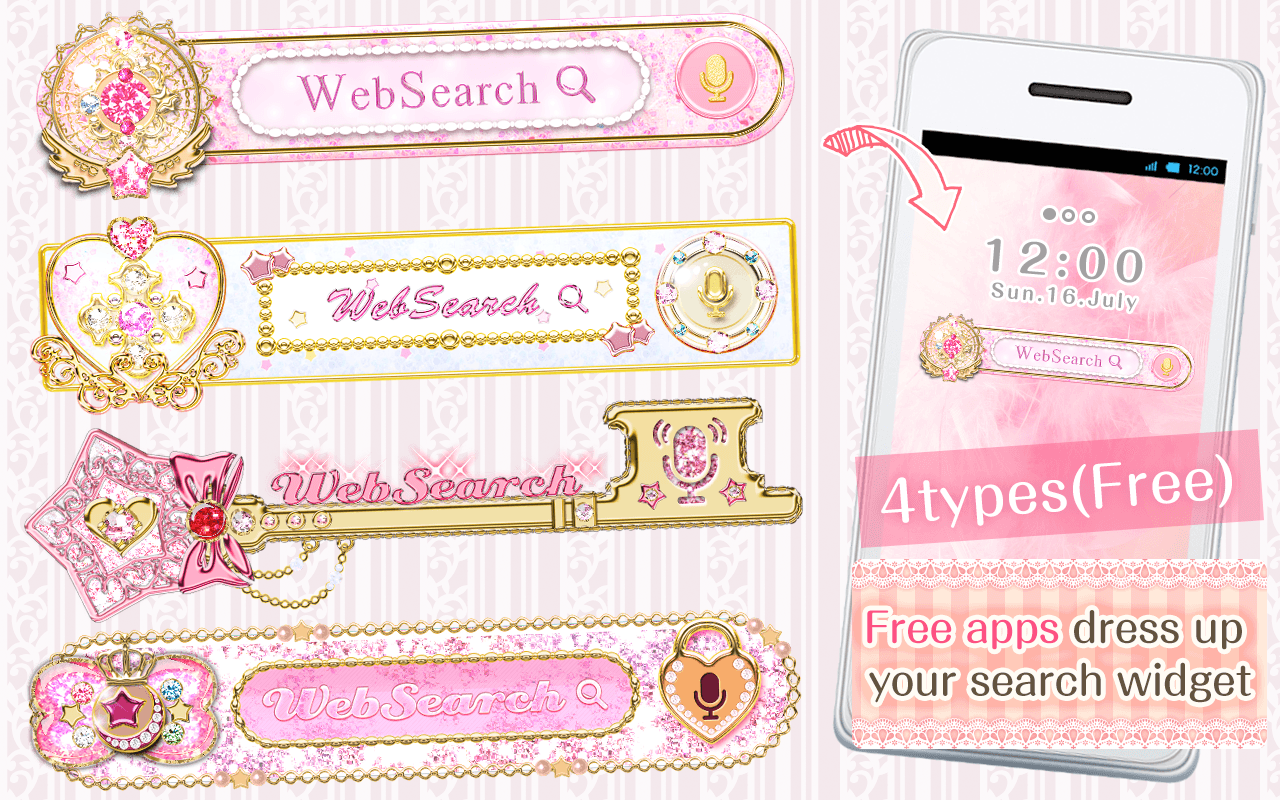 ♡壁紙にあわせて、検索窓(ウィジェット)もかわいくきせかえ!♡すべて無料で楽しめる、カワイイきせかえ検索「DRESSAPPS」のウィジェットのテーマウィジェットが4種類!!