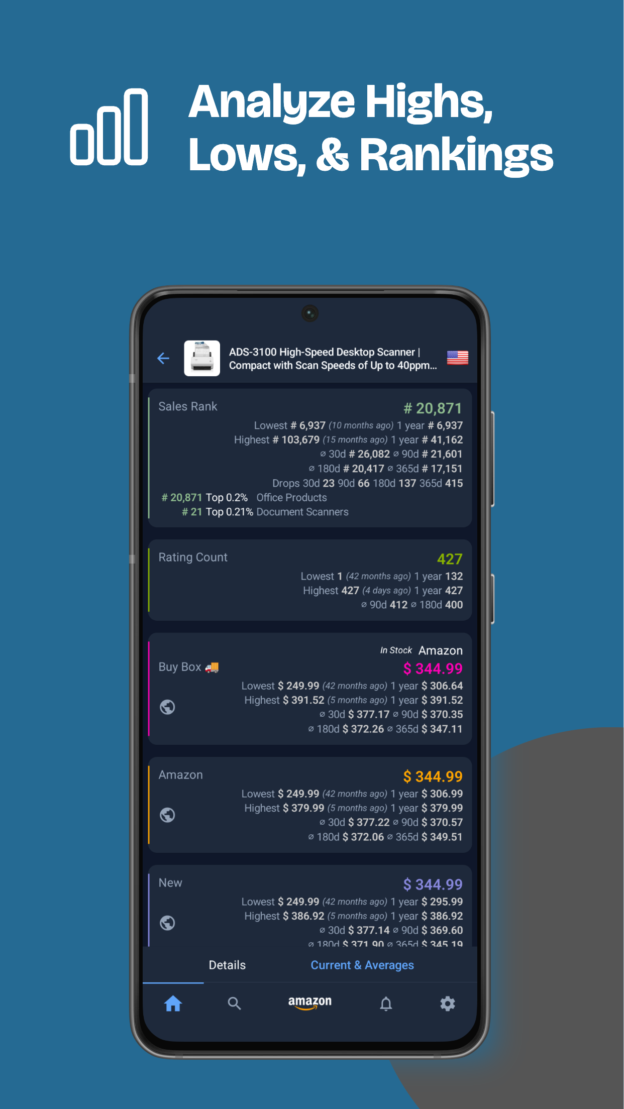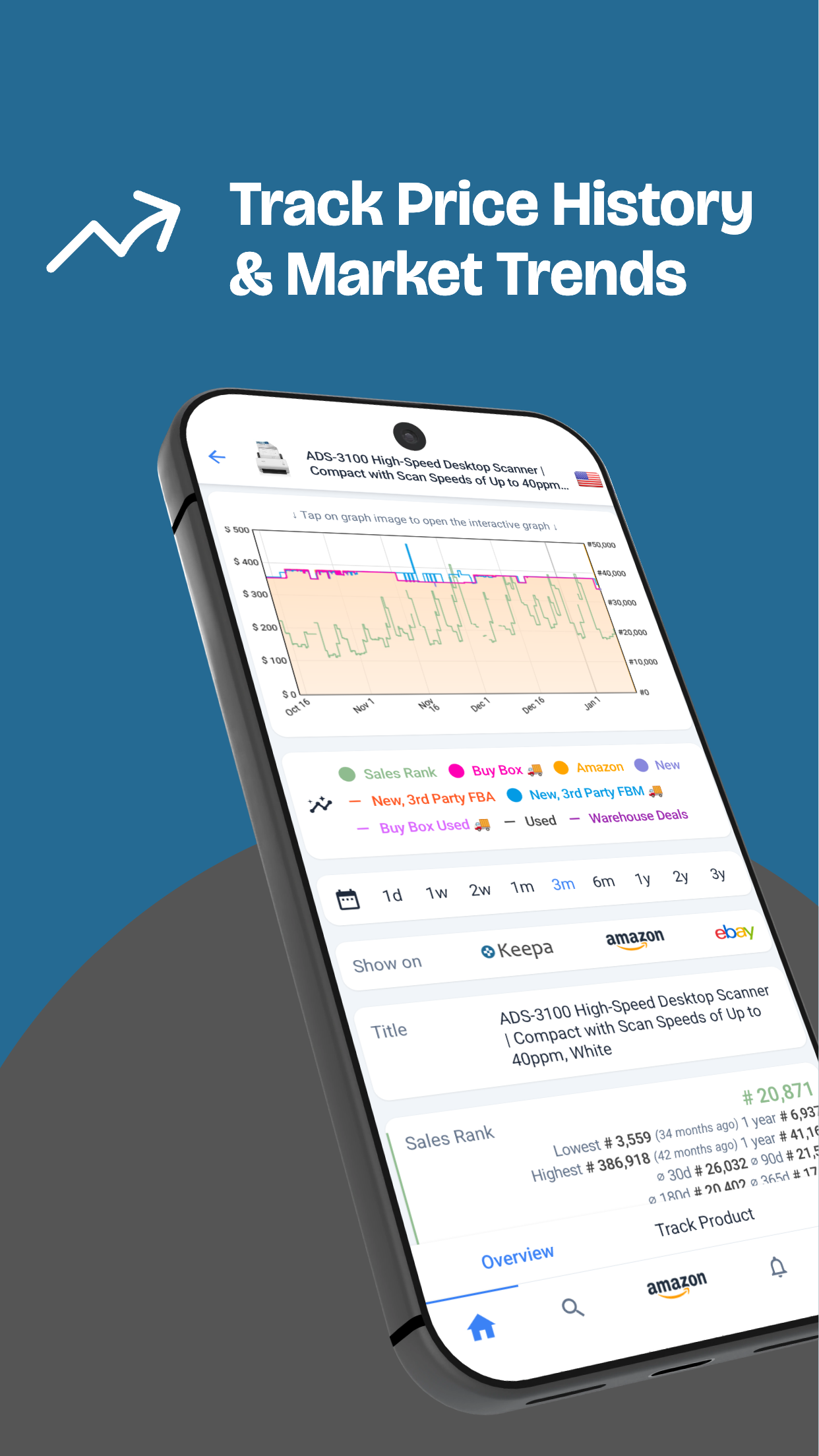 Greife direkt auf deinem Smartphone auf detaillierte Preisverlaufsdiagramme für über 6 Milliarden Amazon-Produkte zu. Durchschaue Fake-Rabatte, erkenne saisonale Trends und finde in Sekunden den niedrigsten historischen Preis. HAUPTFUNKTIONEN: ✜ Umfassende Preisverlaufsdiagramme Sofortige Transparenz. Sieh dir detaillierte Diagramme mit Preisverlauf (Neu, Gebraucht, Warehouse Deals), Sales Rank, Buy-Box-Verlauf und Angebotsanzahl an. Zoome rein für tägliche Schwankungen oder raus für jahrelange Daten. ✜ Preis- & Verfügbarkeitsalarme Nicht ständig die Seite aktualisieren. Lege einfach deinen Wunschpreis fest und Keepa benachrichtigt dich, wenn der Preis fällt oder ein Produkt wieder verfügbar ist. Perfekt für Wunschlisten oder zur Überwachung der Konkurrenz. ✜ Globale Produktsuche & Scanner Finde sofort, was du brauchst. Suche gezielt nach Amazon-Produkten oder nutze den integrierten Barcode-Scanner, um im Laden Online-Preise zu checken. ✜ Tiefe Markteinblicke Geh über den Preis hinaus. Erhalte Zugriff auf erweiterte Daten, darunter: • Sales Rank Verlauf: Beurteile die Beliebtheit eines Produkts über die Zeit. • Buy-Box-Statistiken: Sieh, wer den Verkauf gewinnt und zu welchem Preis. • Angebotsanzahl: Verfolge, wie viele Verkäufer um ein Listing konkurrieren. • Bewertungs- & Rezensionsverlauf: Behalte Reputationstrends im Blick. ✜ Internationale Amazon-Unterstützung Verfolge Preise weltweit. Keepa unterstützt Amazon-Marktplätze in den USA, Deutschland, Großbritannien, Frankreich, Italien, Spanien, Kanada, Japan, Indien, Mexiko und Brasilien. Lade Keepa noch heute herunter und beherrsche den Amazon-Marktplatz.
