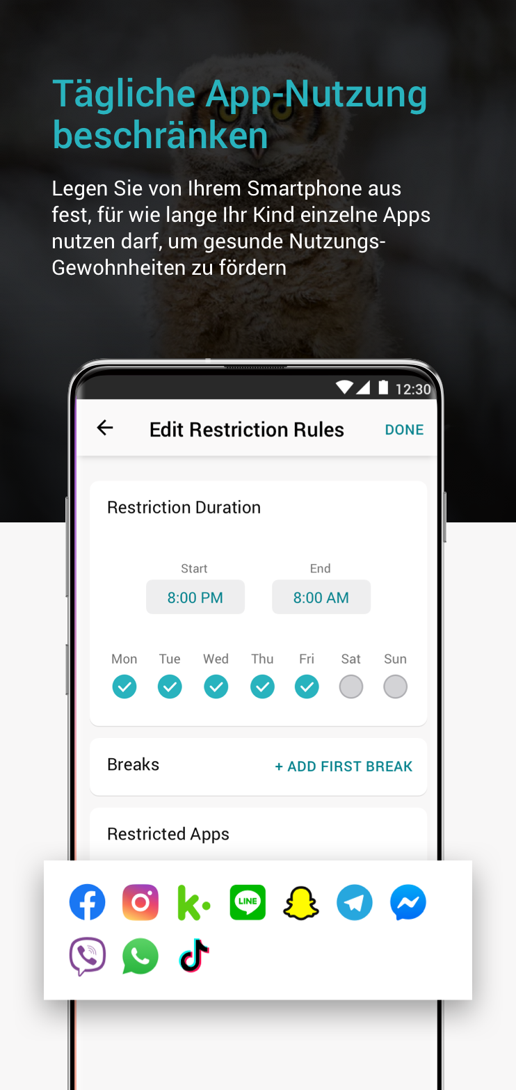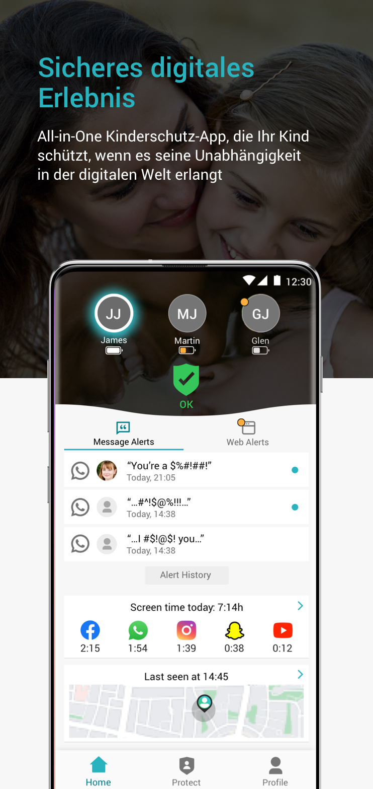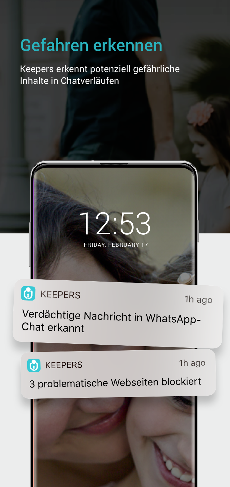 Sie möchten Ihrem Kind am Smartphone ein sicheres digitales Erlebnis bieten und dabei seine Privatsphäre berücksichtigen? 🛡️ Dann ist die Keepers Kinderschutz-App die richtige App für Sie 🎉 Keepers ist eine intuitiv zu bedienende, sichere Kinderschutz-App, die Ihnen ermöglicht, Ihren Kindern bei der Smartphone-Nutzung ein sicheres und ausgewogenes digitales Erlebnis zu bieten. Testen Sie unsere preisgekrönte Kindersicherungs-App 14 Tage lang kostenlos!🆓 Sie schätzen die Möglichkeiten, die die Keepers App Ihnen bietet, um Ihr Kind zu schützen? Dann wählen Sie zwischen dem monatlichen oder jährlichen Abo und ermöglichen Sie Ihrem Kind sicheres Browsen und die Entwicklung ausgewogener Smartphone-Nutzungsgewohnheiten! MONITORING Keepers erkennt potenzielle Gefahren in Chat-Nachrichten Ihres Kindes in über 20 Social Media Plattformen (wie WhatsApp, Instagram oder TikTok). Dazu setzt Keepers auf: 🧠 Künstliche Intelligenz 🖥️ Eine sich ständig aktualisierende Datenbank häufig genutzter Phrasen ️ Erkennt Keepers eine potenzielle Gefahr, erhalten Sie rasch eine Warnmeldung! ⏰ SCHÜTZEN Unsere hochmoderne 👪 Kindersicherungs-Software ermöglicht Ihnen, Ihr Kind vor unangemessenen Inhalten, Cyber-Mobbing und anderen Online-Gefahren (sexuelle Belästigung, Aufforderung zu gefährlichen Handlungen,...) zu schützen. Die Privatsphäre Ihres Kindes hat dabei höchste Priorität! Mit Keepers ermöglichen Sie Ihrem Kind, die digitale Welt zu erkunden und sind bei Gefahren oder Problemen sofort informiert und zur Stelle, um Ihr Kind zu schützen und zu unterstützen. Verwenden Sie die Keepers Kinderschutz- & Standort-Monitoring-App für: ● Message Monitoring 🔬: Dank intelligenter Texterkennung werden Sie rasch informiert, wenn Ihr Kind verdächtige Chat-Nachrichten erhält. ● Webfilterung️ 🕸️: Ermöglichen Sie Ihrem Kind sicheres Surfen, indem Sie Webseiten mit unangemessenen Inhalten blockieren. ● Live-Standort 📍: Finden Sie den Standort des Smartphones Ihres Kindes. ● App-Einschränkungen ☢️: Schränken Sie ein, welche Apps Ihr Kind nutzen darf bzw. zu welchen Zeiten es diese nutzen darf (z.B. Deaktivierung von Gaming-Apps während der Schulzeit). ● Downtime-Modus🔐: Sie können das Smartphone Ihres Kindes temporär blockieren - für eine Dauer von 10 Minuten bis zu 24 Stunden, damit sich Ihr Kind währenddessen auf andere Hobbies oder Aufgaben fokussieren kann. ● Nutzungszeiten der App📊: Sehen Sie auf einen Blick, welche Apps Ihr Kind nutzt und für wie lange. Diese Informationen können Sie zum Anlass nehmen, mit Ihrem Kind über eine ausgewogene, gesunde Smartphone Nutzung zu sprechen. ● Geofencing📍: Sie können sichere und potenziell gefährliche Zonen definieren. Betritt oder verlässt Ihr Kind eine solche Zone, erhalten Sie eine Benachrichtigung. ● Überwachung des Akkustands🔋: Verlieren Sie niemals den Kontakt zu Ihrem Kind. Keepers wird Sie benachrichtigen, wenn der Akku Ihres Kindes schwach ist. ● Deinstallationsschutz⛔: Ihr Kind kann Keepers nicht ohne Ihre Zustimmung deinstallieren. Die intelligente Texterkennung von Keepers erkennt potenziell gefährliche Chat-Nachrichten auf über 20 Social Media Plattformen - dazu zählen: ● WhatsApp ● TikTok ● Instagram ● Telegramm ● Snapchat ● Discord ● Kik ● Viber ● Line ● VK Wir verwenden die AccessibilityService-API von Google, um: 1. Scannen Sie Nachrichten in Social-Media-Apps, die auf dem Gerät Ihres Kindes installiert sind, und warnen Sie Sie bei missbräuchlichen Gesprächen 2. Scannen Sie die Browserdaten des Webbrowsers auf dem Gerät Ihres Kindes und blockieren Sie gefährliche Websites Alle gesammelten Daten werden auf unseren Servern vollständig verschlüsselt gespeichert und nur verwendet, um Ihr Kind zu schützen und Sie auf Gefahren aufmerksam zu machen.