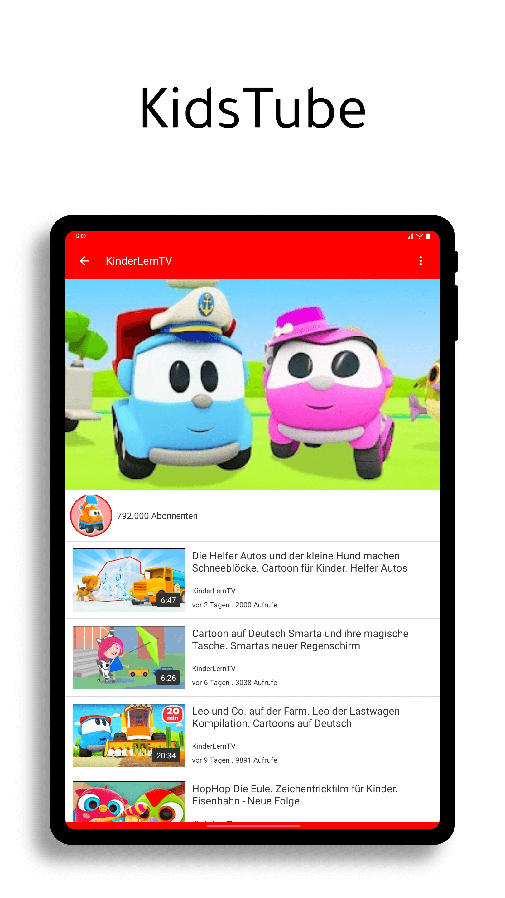 KidsTube bietet eine Reihe von Funktionen, um das Seherlebnis Ihres Kindes zu verbessern