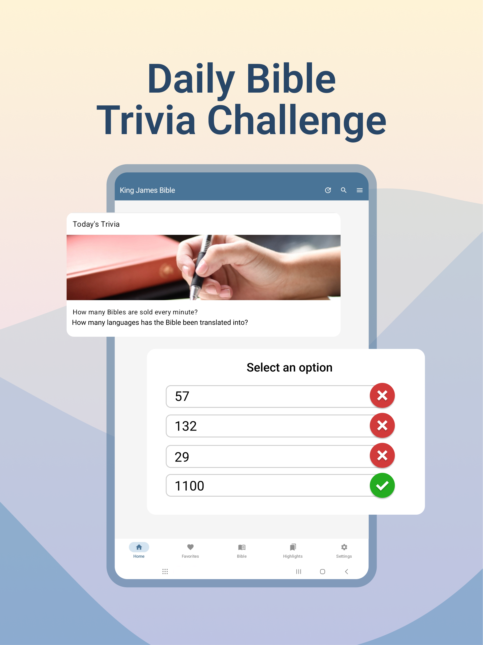 • Auf die vollständige King James Version (KJV) zugreifen, die seit Jahrhunderten bewährt ist