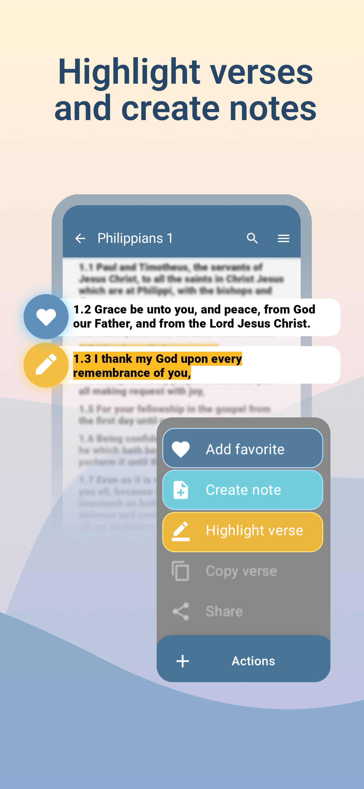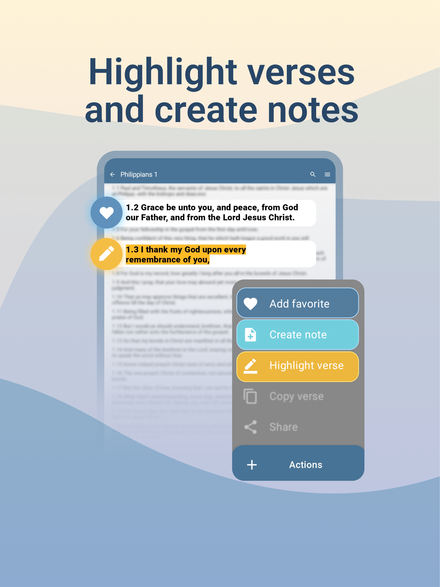 • Markieren, speichern und speichern Sie Notizen für Ihr Bibelstudium