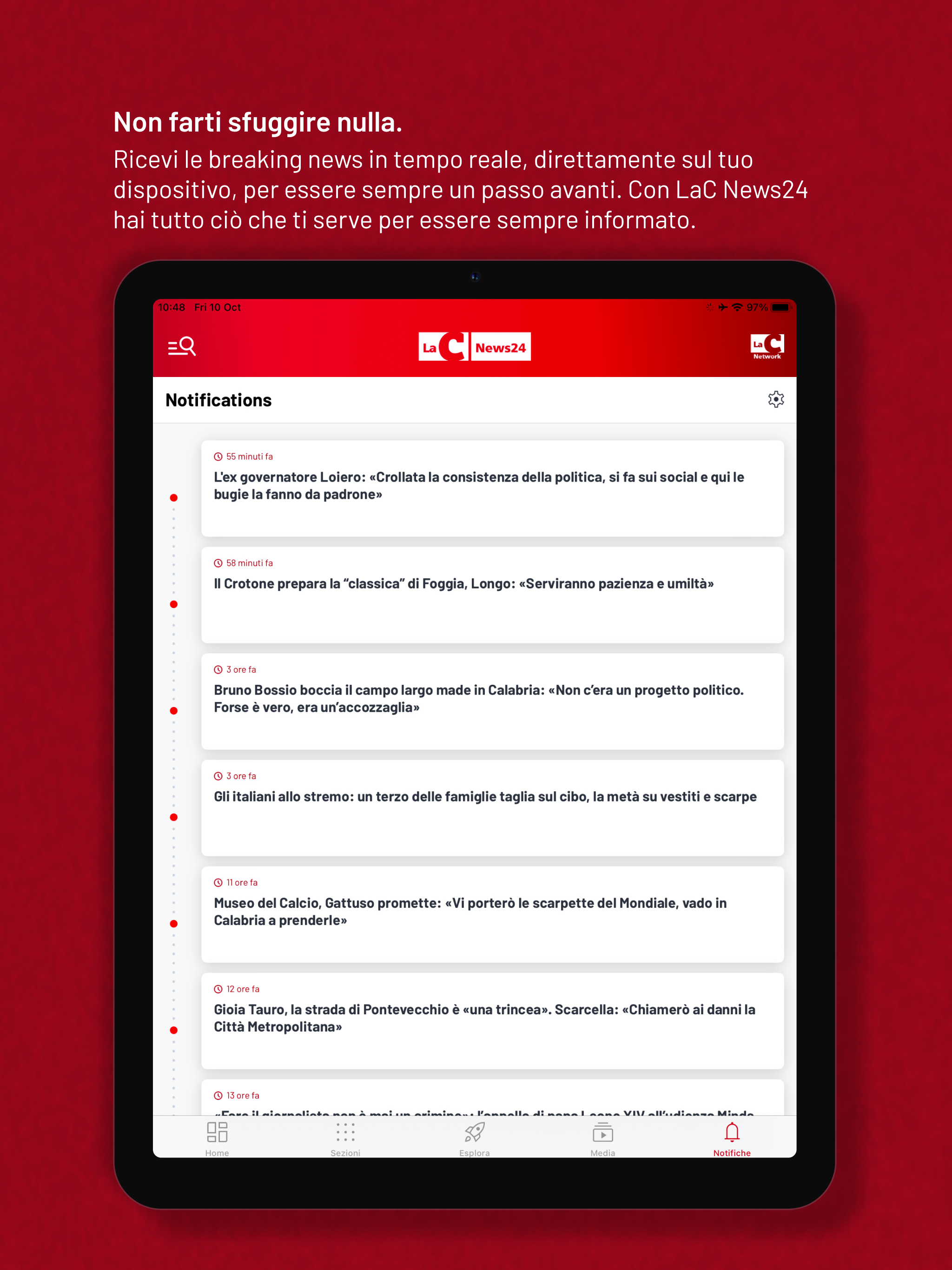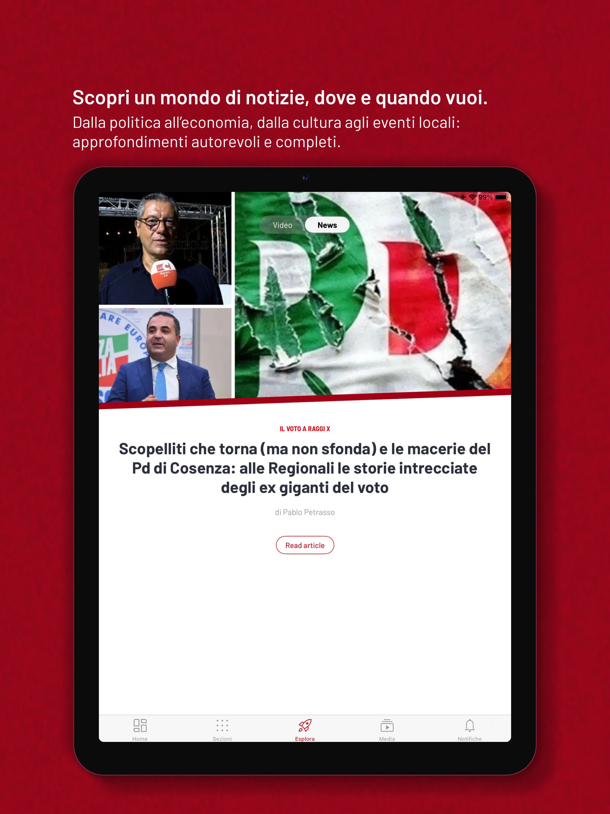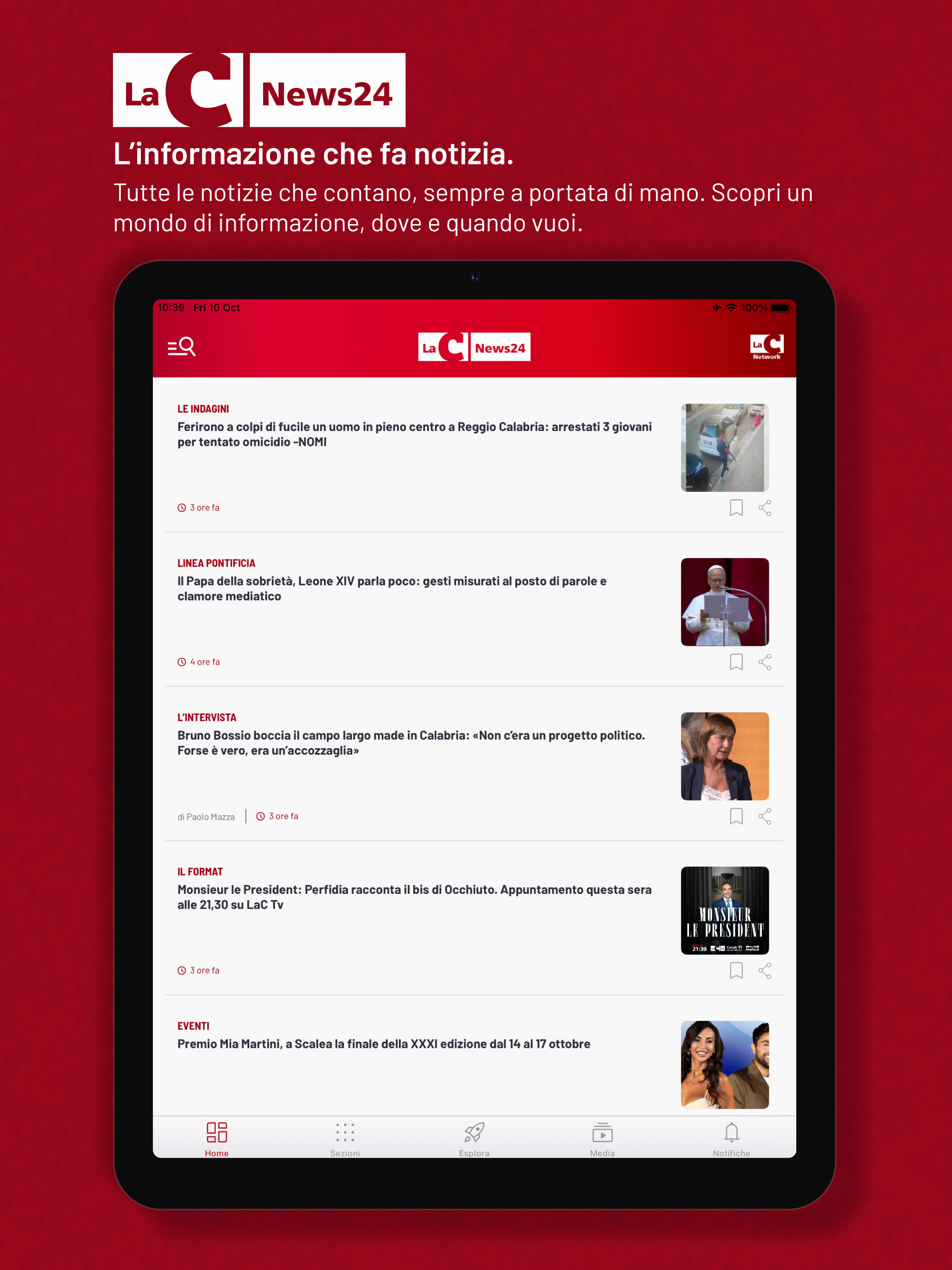Laden Sie die neue kostenlose LaC News24-App herunter und bleiben Sie über Neuigkeiten aus Kalabrien auf dem Laufenden – mit Schwerpunkt auf Italien und dem Rest der Welt. Das einfache und intuitive Design macht das Surfen zu einem unmittelbaren und angenehmen Erlebnis. Sie finden ständig aktualisierte Inhalte und zahlreiche Themenschwerpunkte, die Ihnen alle objektiven Informationen liefern, die Sie verdienen. Die Startseite wird ständig aktualisiert und bietet einen Live-Streaming-Player, Nachrichten, Videos, Fotos, Blogs und vieles mehr. Das neue, umfassende und benutzerfreundliche Seitenmenü bietet Ihnen direkten Zugriff auf alle aktuellen Nachrichten aus den Bereichen Aktuelles, Politik, Wirtschaft und Beschäftigung, Sport, Kultur, Gesundheit und Unterhaltung – für ein unvergessliches Surferlebnis. Wählen Sie aus sechs Lokalausgaben, die Sie in Echtzeit über die aktuellen Ereignisse in Kalabrien informieren. Im neuen Bereich „BREAKING NEWS“ finden Sie alle aktuellen Nachrichten der letzten Minuten. Dank neuer geolokalisierter Benachrichtigungen können Sie gezielt die geografischen Gebiete verfolgen, die Sie interessieren, und so die Informationen optimal auf Ihre Bedürfnisse abstimmen. Sehen Sie sich alle Ausgaben der LaC News24-Nachrichten im Videobereich an – hier finden Sie ausführliche Berichterstattung. Lesen Sie Meinungen und Einblicke unserer Experten im Blog und in den Kolumnen. Verfolgen Sie die Live-Streams der Sender LaC TV, LaC News24 und Webradio direkt auf Ihrem Smartphone, wo und wann immer Sie wollen. Dank neuer Live-Streaming-Benachrichtigungen verpassen Sie nie wieder Ihre Lieblingssendungen! Mit der neuen Funktion „Favoriten und Lesezeichen verwalten“ bleiben Sie informiert und können nur die Inhalte zu Ihrem persönlichen Archiv hinzufügen, die Sie interessieren. Die Nachrichten von LaC News24 sind vollständig verifiziert und die Fakten werden von der Redaktion sorgfältig geprüft. Sie informiert Sie gewissenhaft über das Geschehen in Kalabrien: von aktuellem Geschehen bis hin zu Politik, Wirtschaft bis Kultur, Sport bis Gesundheit, einschließlich Recherchen, Kolumnen, Meinungen, Satire, Sonderbeiträgen und Nachrichtenberichten. Laden Sie die LaC News24-App herunter und entdecken Sie eine noch umfassendere und unterhaltsamere Möglichkeit, über Nachrichten, aktuelle Ereignisse und das Wetter auf dem Laufenden zu bleiben!
