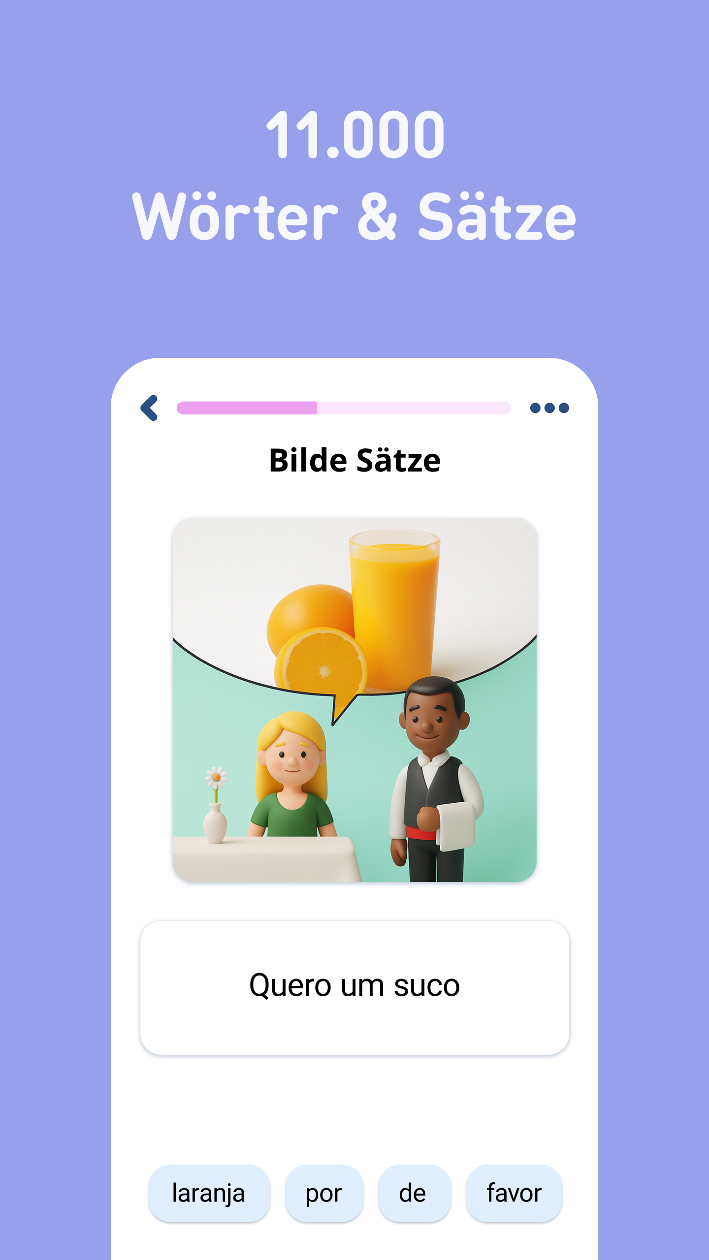 Wir passen die Inhalte an das Alter des Anwenders an. Sowohl du als auch dein Kind kann Brasilianisches Portugiesisch lernen und Spaß haben.