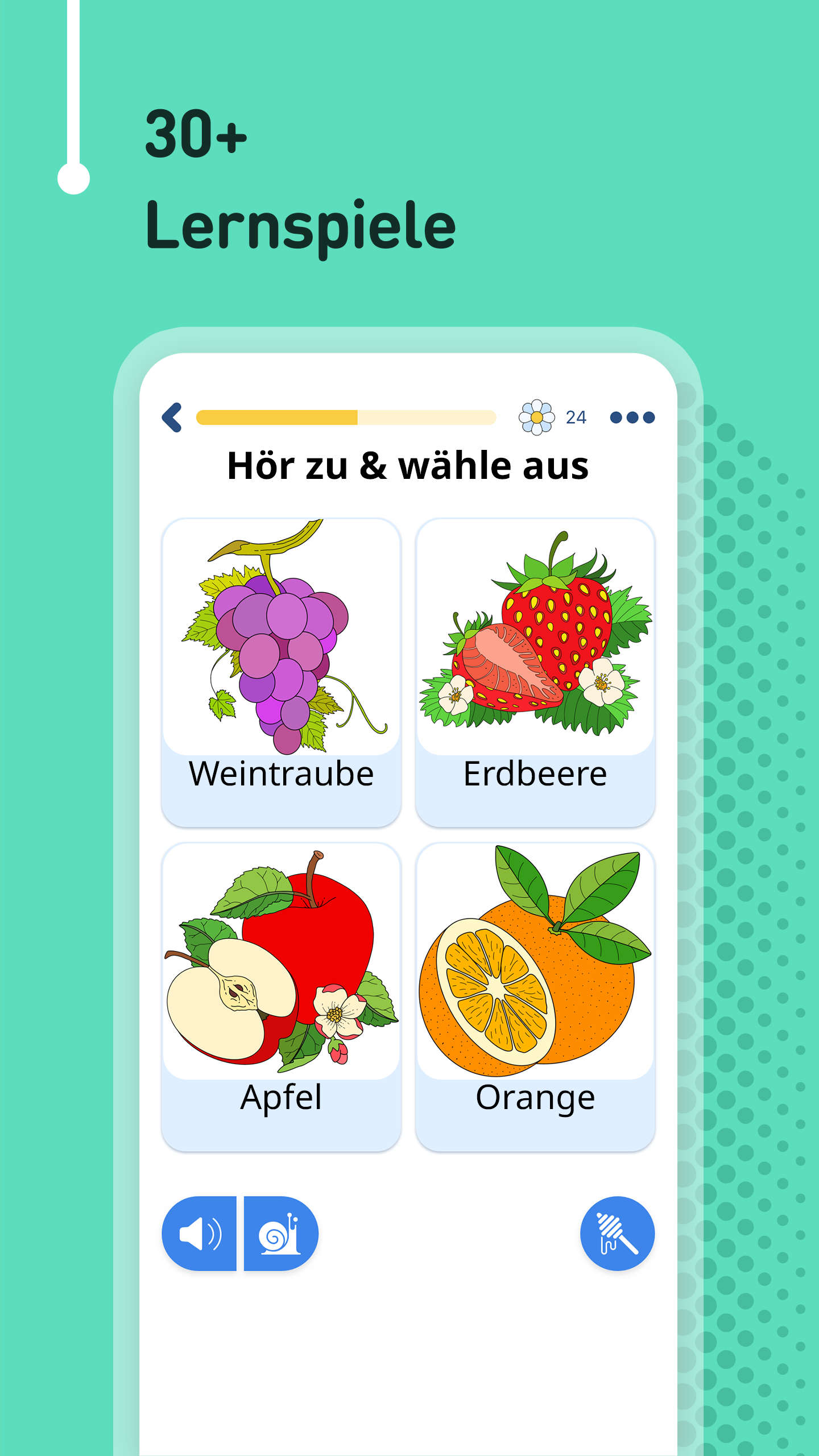 Verfolge deinen Fortschritt, verdiene Blümchen & Bienchen und nutze sie als Zahlung für ein KOSTENLOSES Abonnement. Wiederhole auf clevere Weise alles, was du gelernt hast, und bestehe Prüfungen, um auf dem FunEasyLearn-Leaderboard ganz oben zu stehen.