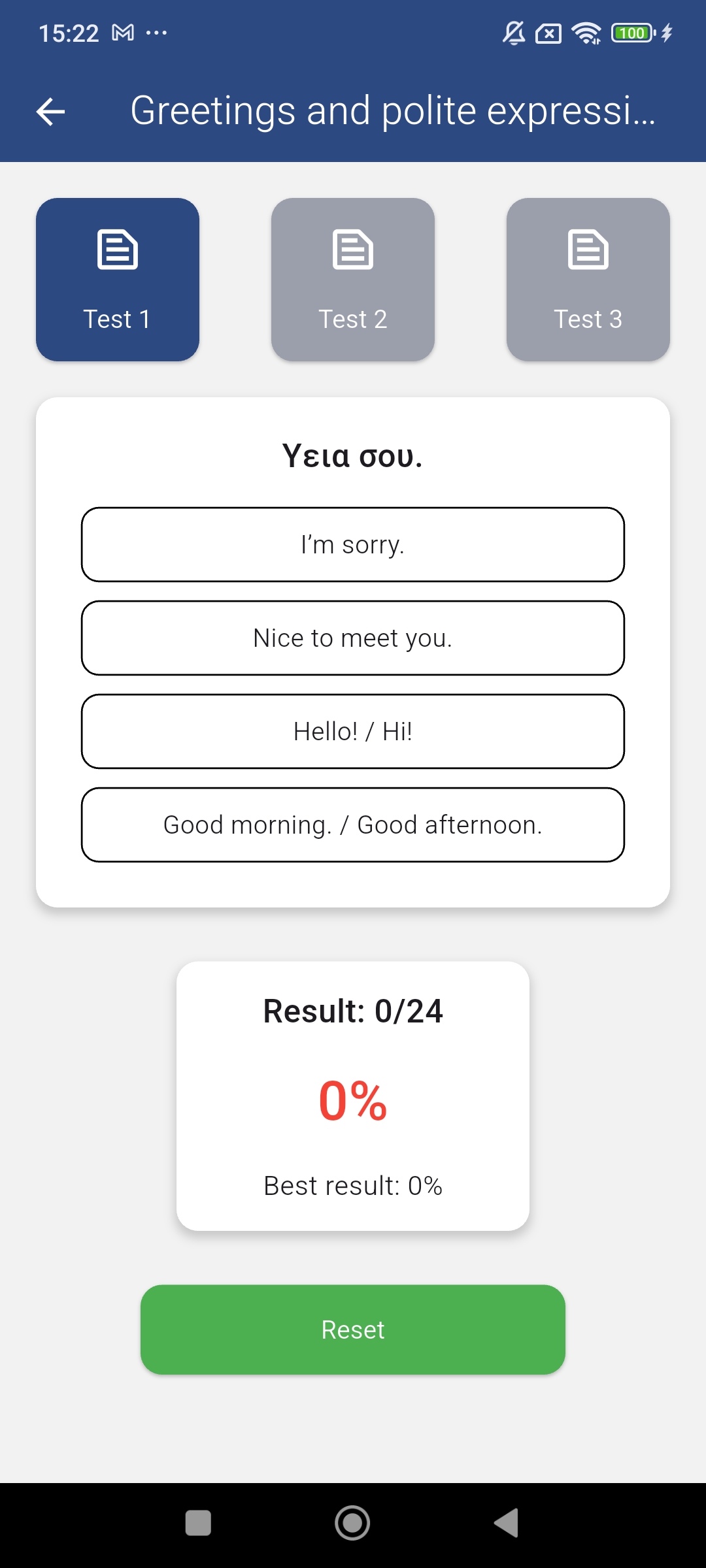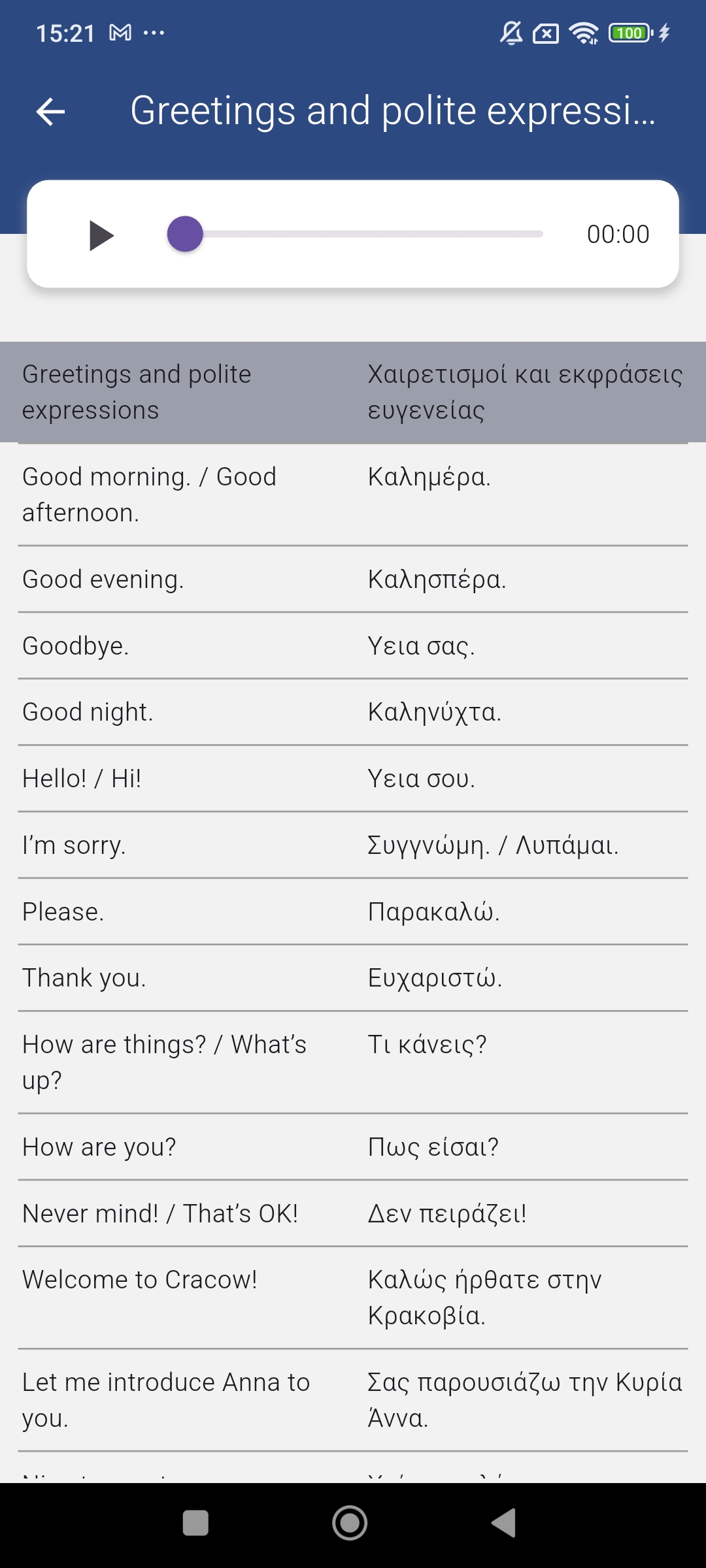 * App ist für Leute, die Englisch wissen und wollen die Grundlagen der griechischen Sprache lernen.