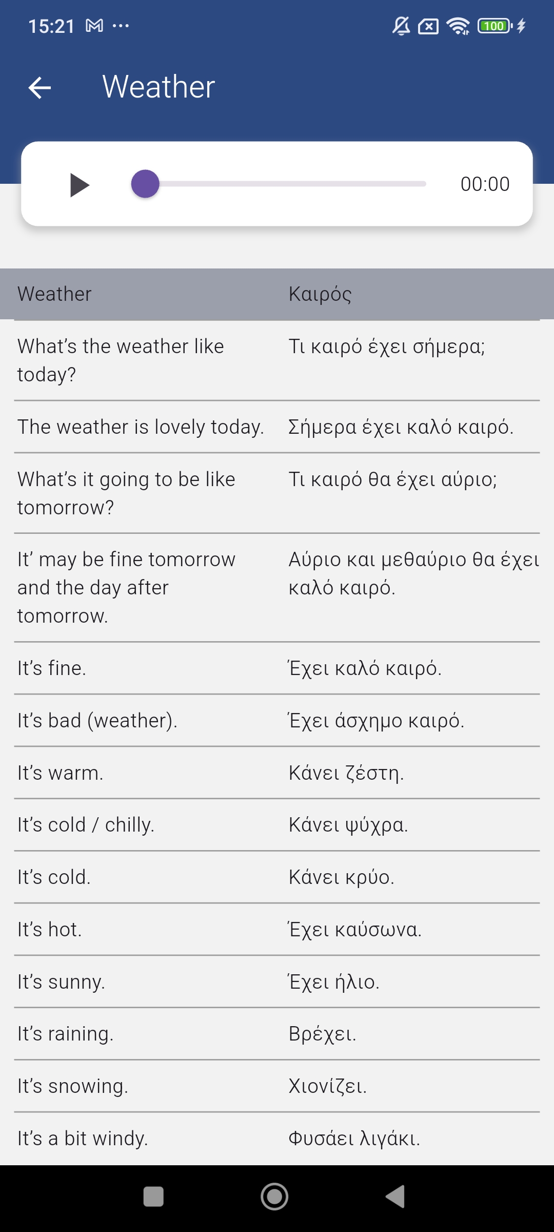Die wichtigsten Wörter und Sätze der griechischen Sprache, die jeweils mit Muttersprachler Audio. Perfekte Reise-App! Alle Audio sind an das Gerät und zugänglich, auch im Flugzeugmodus oder ohne teure internationale Roaming-Gebühren heruntergeladen.