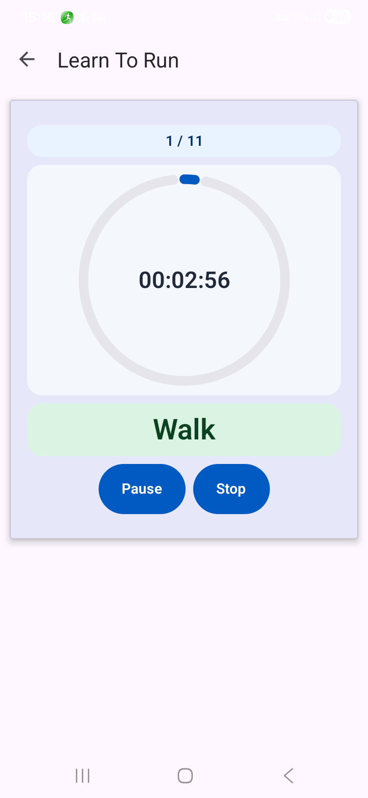 ✓ Kein GPS, keine Routen, keine Komplexität — nur Geh-Lauf-Intervalle