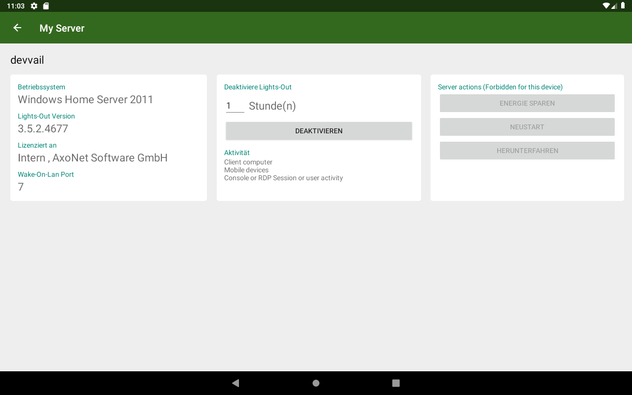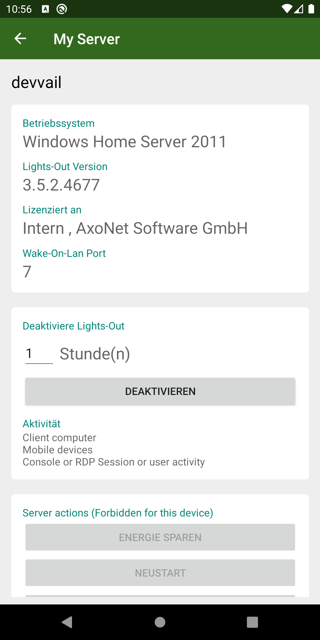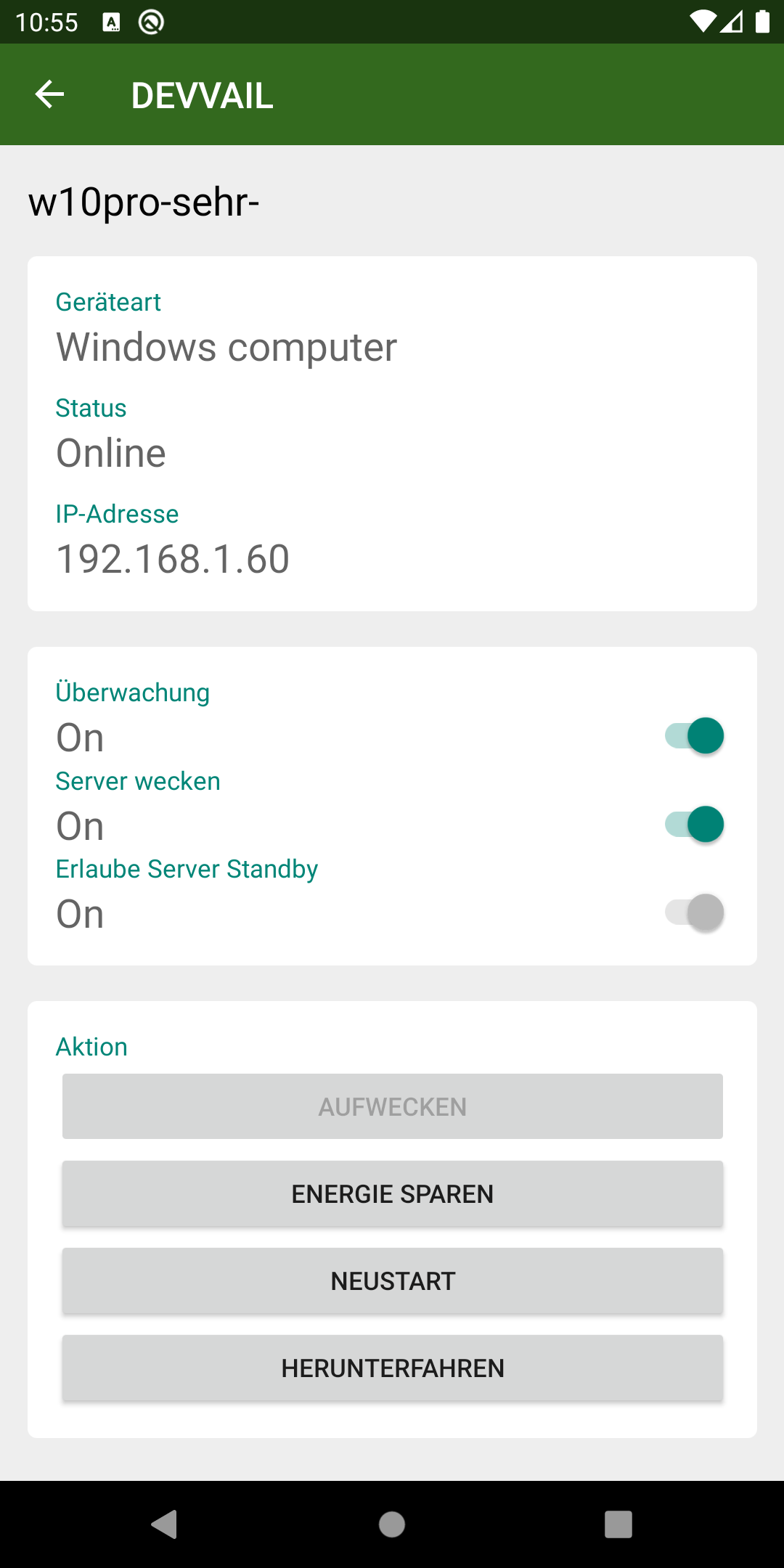 Diese Applikation verbindet sich mit Lights-Out, das auf Windows Server, einem Windows Desktop OS als Server oder einem Synology oder QNAP NAS läuft. Sie können damit ihren Server und ihre Computer mobil aus der Ferne verwalten: Aufwecken, Energie sparen, Herunterfahren oder Neu starten. Unterstützt mehrere Server.