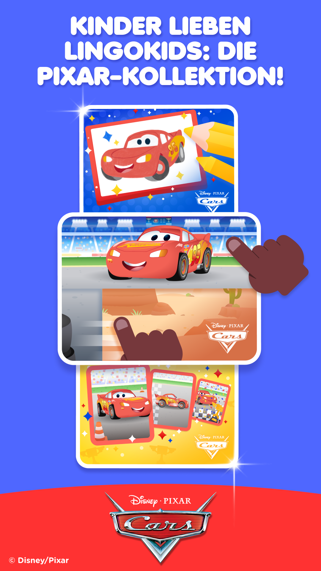 Disneys Pixar Cars rast mit brandneuen Aktivitäten in die Lingokids: Pixar Collection! Kinder begleiten Lightning McQueen und seine Freunde bei energiegeladenen Herausforderungen voller Zahlenmissionen, Musteraufgaben und Logikspaß. Jeder Boxenstopp und jedes Zieleinlauf-Erlebnis stärkt Fokus und Selbstvertrauen.