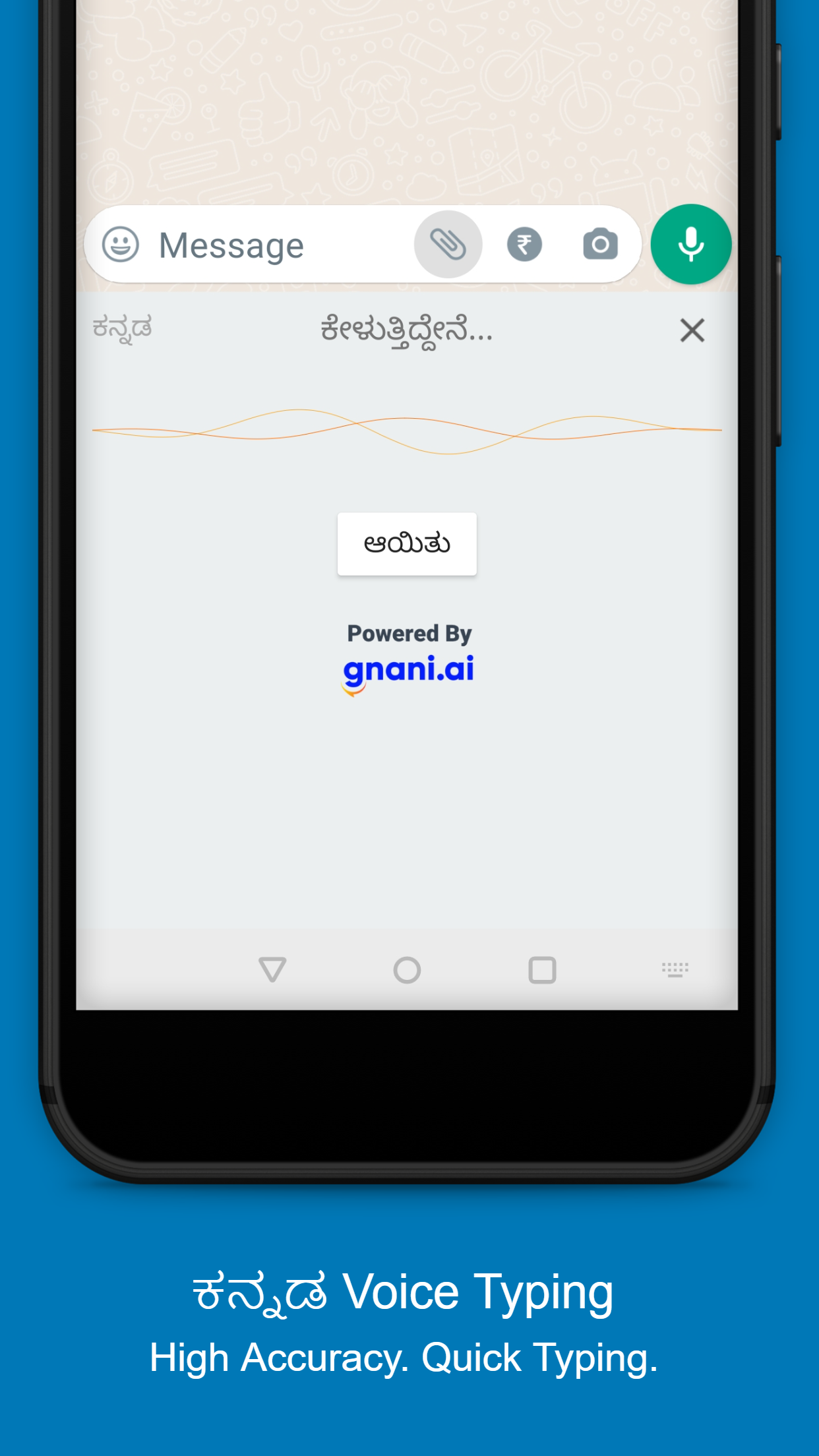 • That's all! You can now type in Kannada(ಕನ್ನಡ) in any app using the keyboard or just your voice.
