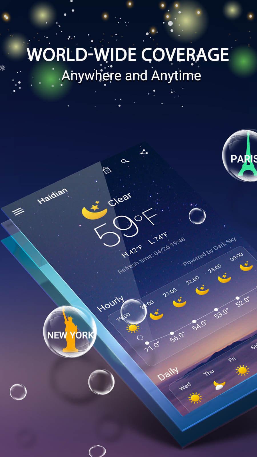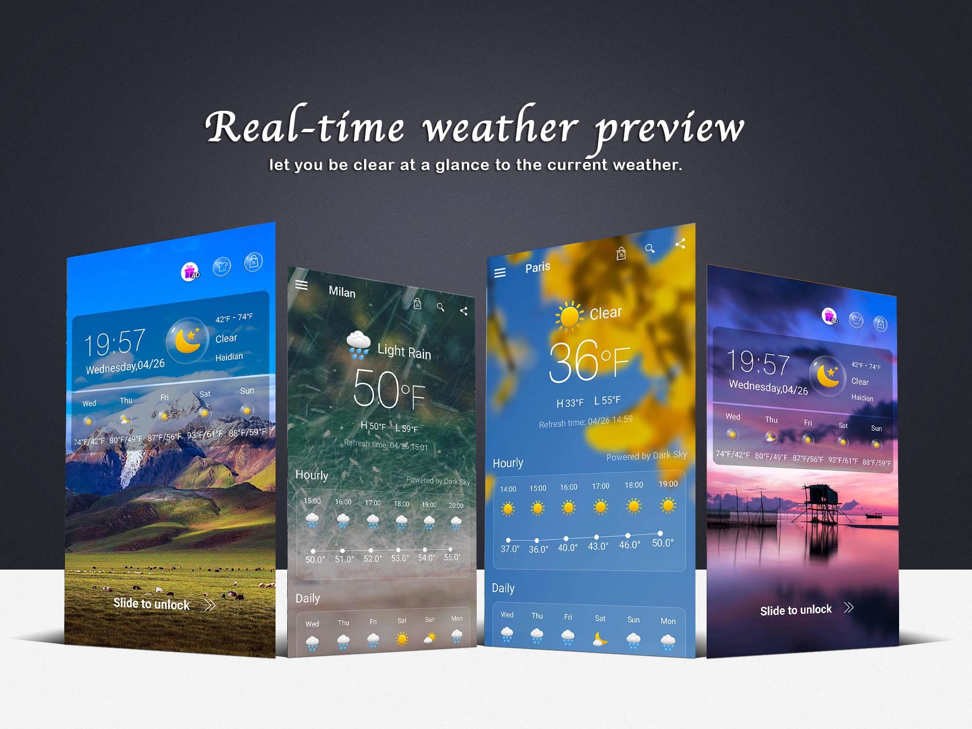 Eine einfache und einfach zu bedienende Wetter-App für Sie! Damit können Sie Wetter bekommen. Ein einfaches und einfach zu verwendendes Wetter-Widget für Sie! Mit ihm können Sie bequem Informationen erhalten. Stellen Sie genaue lokale meteorologische Informationen als die höchsten / niedrigsten Temperatur- und gegenwärtigen klimatischen Bedingungen zur Verfügung, definitiv Ihre beste Wahl im täglichen Leben. Echtzeit-Temperatur, aktuelle Zeit / Zeit, morgen, Uhrzeit am Tag. Es ist sehr praktisch. Highlights der lokalen Wettervorhersage ► Statusmeldung: Zeigt aktuelle Temperatur und Bedingungen sofort an ► Startbildschirm: Ändert den aktuellen Standort, das Wetter und die Tageszeit. So erhalten Sie Ihre aktuellen Wetterbedingungen, die Sie am meisten benötigen. ► 7-tägige Prognose für die Zukunft ► Einfaches Aufstellen und Verschieben zwischen verschiedenen Standorten ► Einfach zu bedienendes Widget - Mehrere Wettervermietungen - Celsius & Fahrenheit ► Genauigkeit von Sonnenaufgang und Sonnenuntergang ► Anzeige der Luftfeuchtigkeit und Geschwindigkeit, geben Sie bessere Reise-Tipps ► Sichtbarkeit anzeigen ► Anzeige der gestrigen Temperatur, kann als Referenz für die aktuelle Temperatur verwendet werden