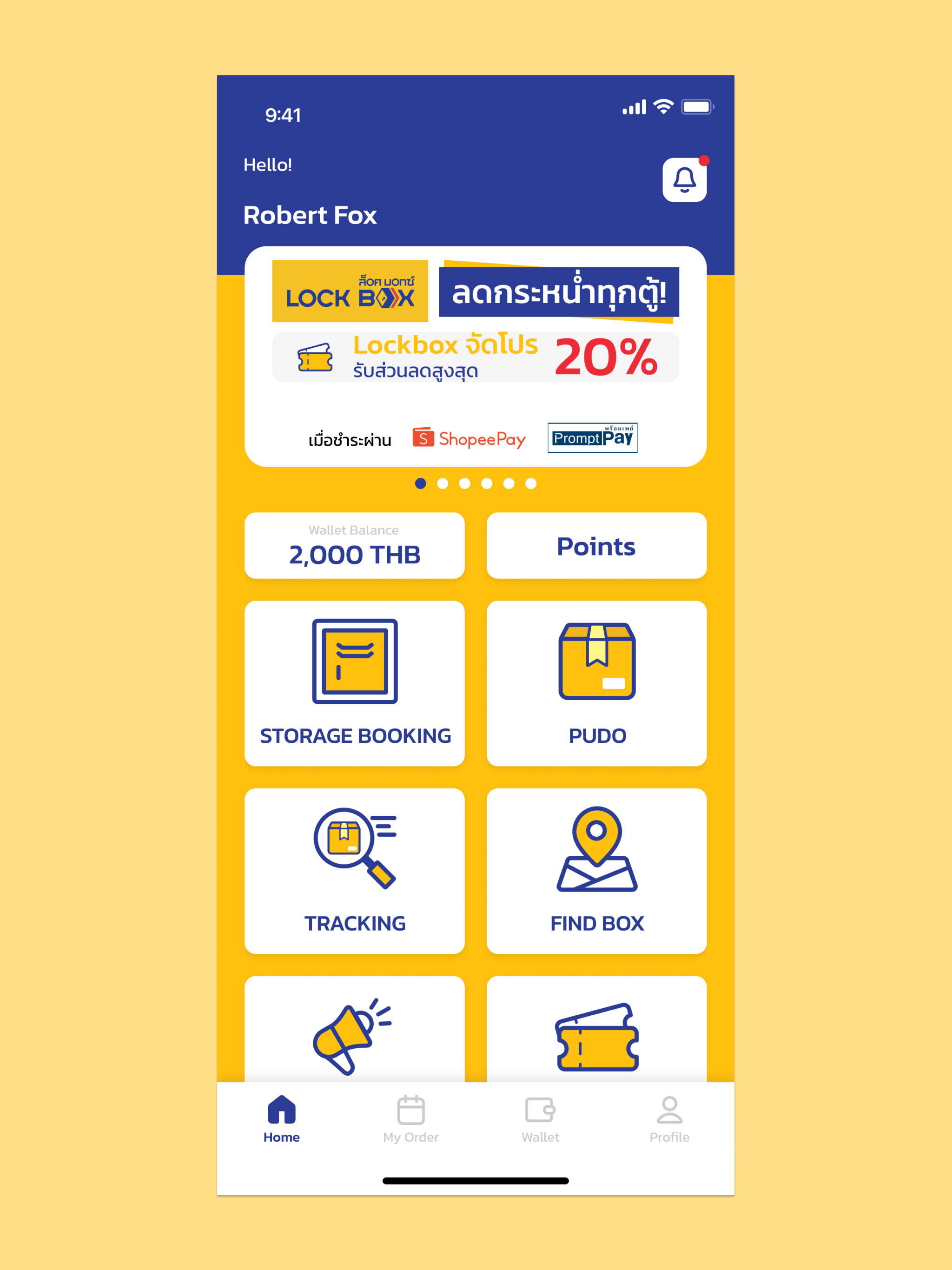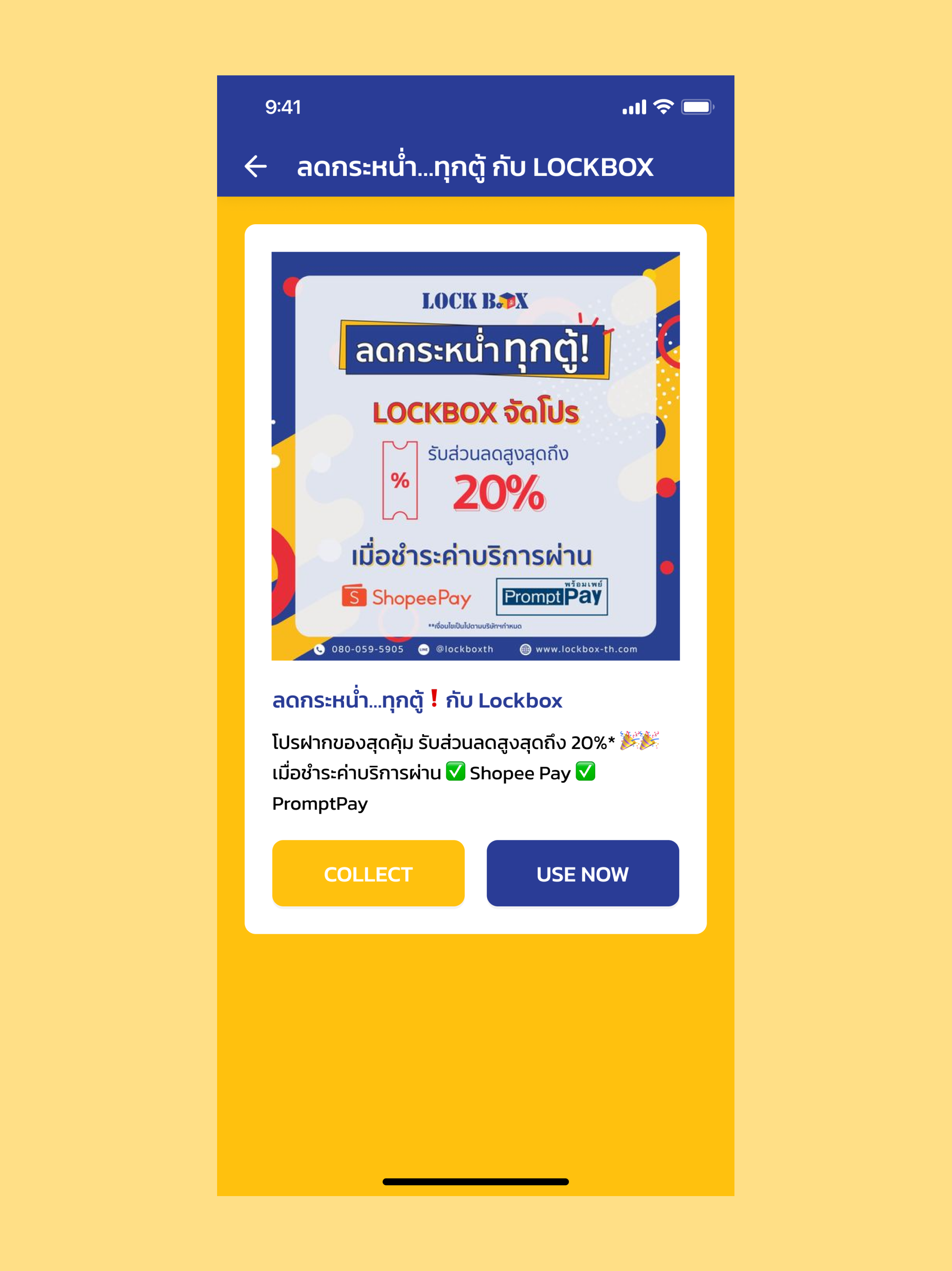 Eigenschaften - Schließfächer Reservierung für stündliche und tägliche Nutzung, am besten vor Ort in Bangkok. - Gepäck und Paket Lieferung am selben Tag. Durch schnelles, sofortiges und zuverlässiges Carrier-Team. - Finden Sie in Echtzeit unsere Filialen und Schließfächer. - Nutzen Sie den Mitgliederrabatt, Treuepunkte und vieles mehr. 3 einfache Schritte, um eine Bestellung aufzugeben: 1. Wählen Sie den gewünschten Dienst aus 2. Wählen Sie Standorte 3. Bestätigen Sie Details Für weitere Informationen besuchen Sie bitte www.lockbox-th.com Oder kontaktieren Sie uns unter: Bitte rufen Sie +66 80 059 5905 oder E-Mail uns an [email protected]