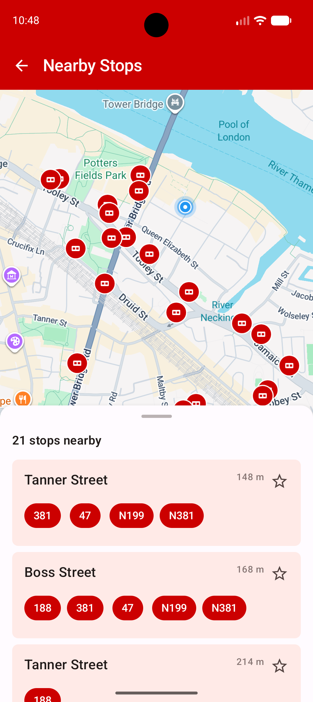 Haftungsausschluss: Diese App steht in keiner Verbindung zu Transport for London (TfL). Die Daten zu Haltestellenstandorten und Live-Fahrzeiten stammen von TfL Open Data.