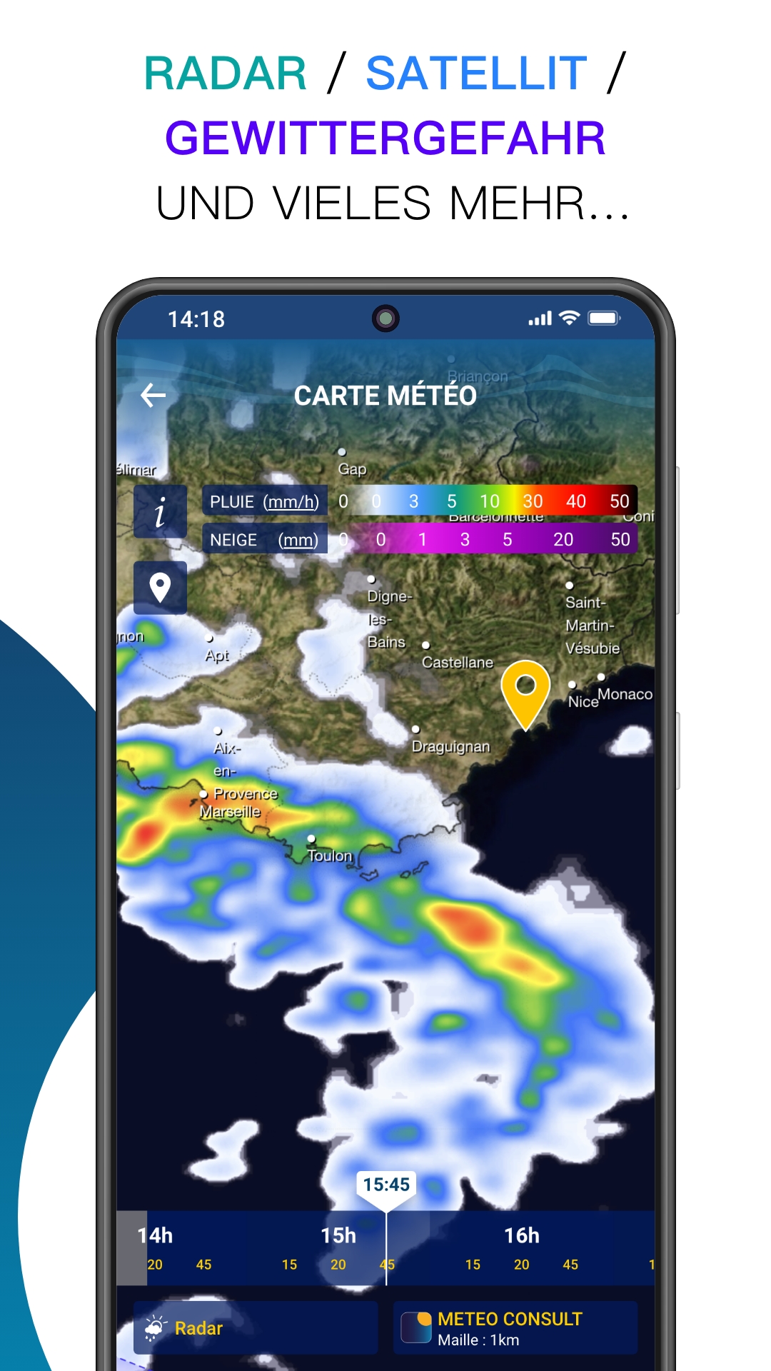 METEO CONSULT, führender unabhängiger Wetteranbieter und Spezialist für Seewetter, liefert hochwertige Vorhersagen, die von erfahrenen Meteorologen erstellt und kontrolliert werden. Ob Segler, Skipper, Surfer, Kitesurfer, Taucher oder Angler – in dieser App finden Sie alle Wetterdaten, die Sie brauchen! • VORHERSAGEN Live und 15-Tage-Prognosen für zahlreiche Parameter >> Tausende Küsten- und Binnengebiete in Frankreich und Europa: Küstenzonen, Häfen, Ankerplätze, Surfspots, Strände und Buchten, Tauch- und Angelspots. Wählen Sie Ihren aus! >> Vergleichen Sie die Prognosen der meistgenutzten Wetterquellen in Frankreich >> Vergleichen Sie die Wetterdaten mehrerer Spots, wenn Sie sich bei Ihrem Ziel noch unsicher sind >> Erstellen und teilen Sie Ihre eigenen Spots • GEZEITEN Einfache Anzeige von Koeffizienten, Höhen und Zeiten • KARTE Interaktive Vorhersagekarte, Multi-Parameter, Multi-Modell • BOJEN & SEMAPHORE >> Stündliche Messwerte von über 300 Bojen und Seezeichen in Frankreich und Europa • FAVORITEN Mit einem Klick auf Ihre bevorzugten Gebiete und Seewetterberichte zugreifen und Ihre Favoriten mit der Website von METEO CONSULT Marine synchronisieren. • BENACHRICHTIGUNGEN Wählen Sie Ihre Wetterkriterien (Wind, Wellen, Gewitter, eingeschränkte Sicht, Marine-Risiko-Index …) und erhalten Sie eine Warnung, sobald die von Ihnen festgelegten Bedingungen erfüllt sind. • VIDEOS >> Bis zu dreimal täglich aktualisierte Vorhersagevideos mit Kommentaren unserer Meteorologen >> Satellitenanimationen und Niederschlagsradar