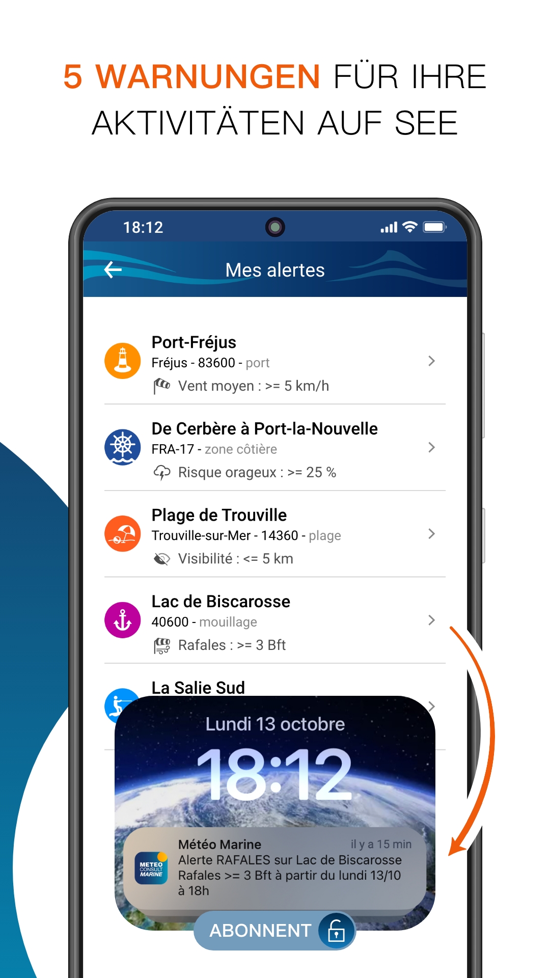 Planen Sie Ihre Törns noch besser! Die personalisierten Wetterwarnungen wurden erweitert: Neben dem Wind können Sie nun Wellen, Gewitter, eingeschränkte Sicht oder den Marine-Risikowert auf Ihren bevorzugten Gebieten, Häfen und Spots überwachen. Ein exklusiver Service für Abonnenten, für eine noch umfassendere und individuellere Wetterüberwachung.