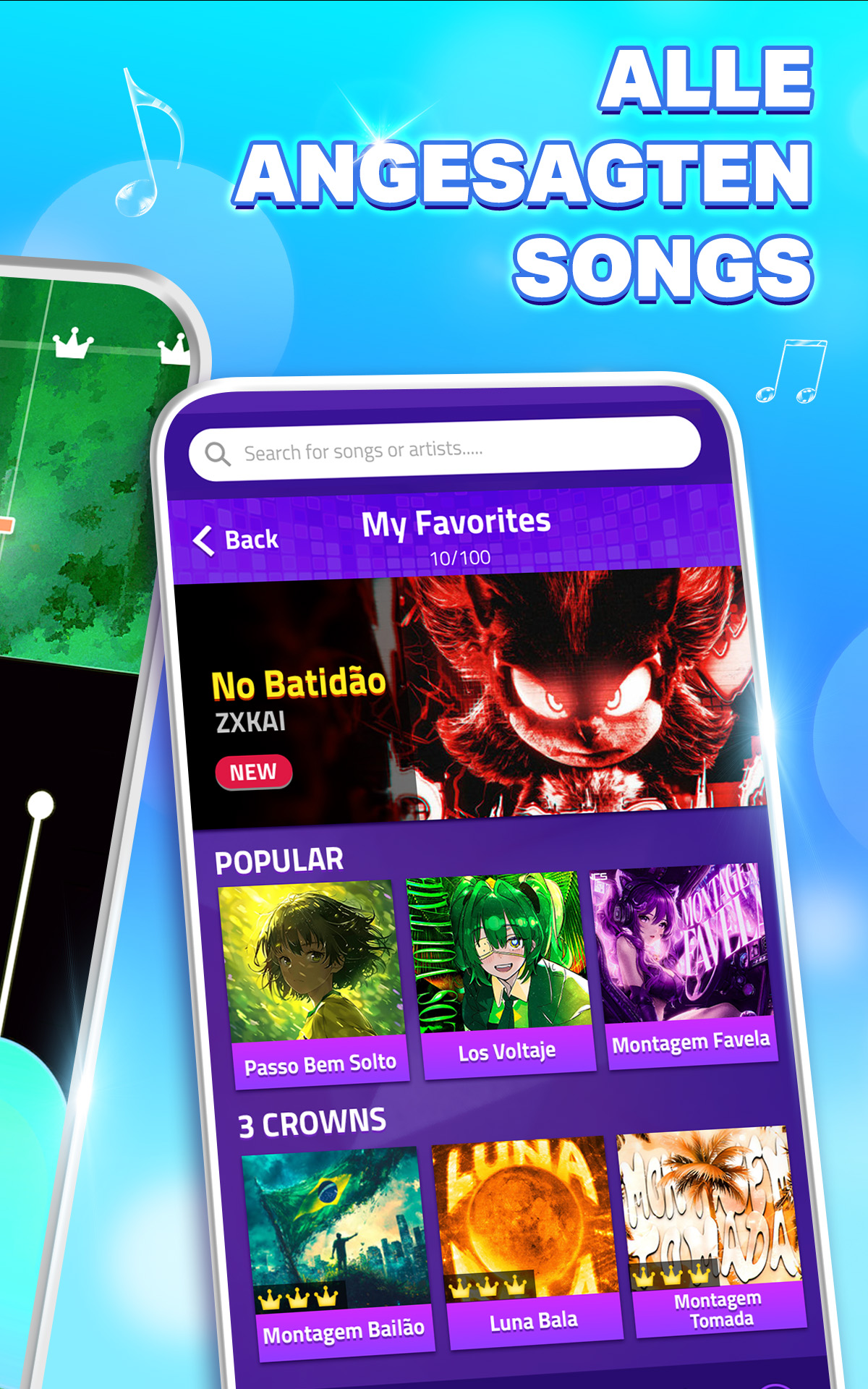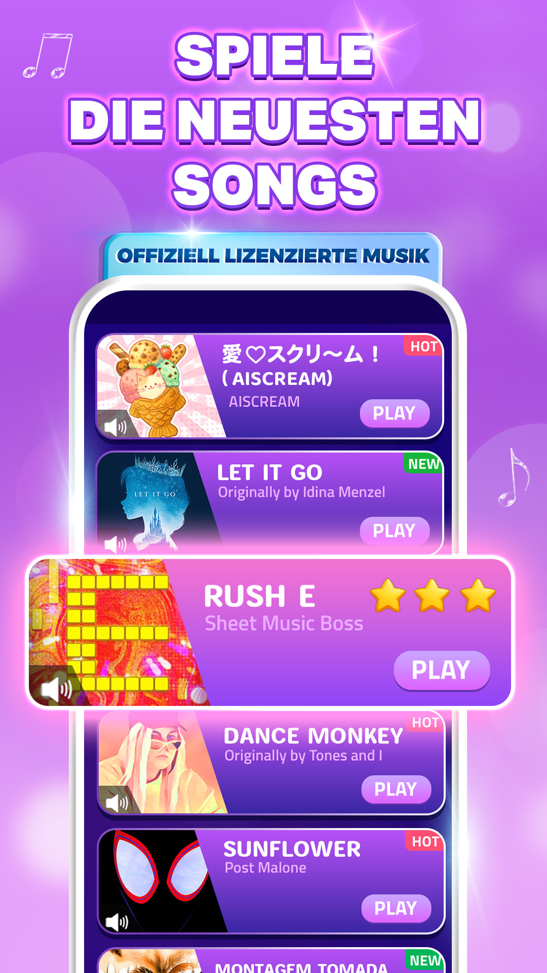 Sind Sie bereit für lebensechte Musik und spannende Klavierduelle? Erleben Sie den Nervenkitzel mit der App, indem Sie zu heißen Hits im Klaviermodus spielen. Erleben Sie pure Musikfreude per Fingertipp!