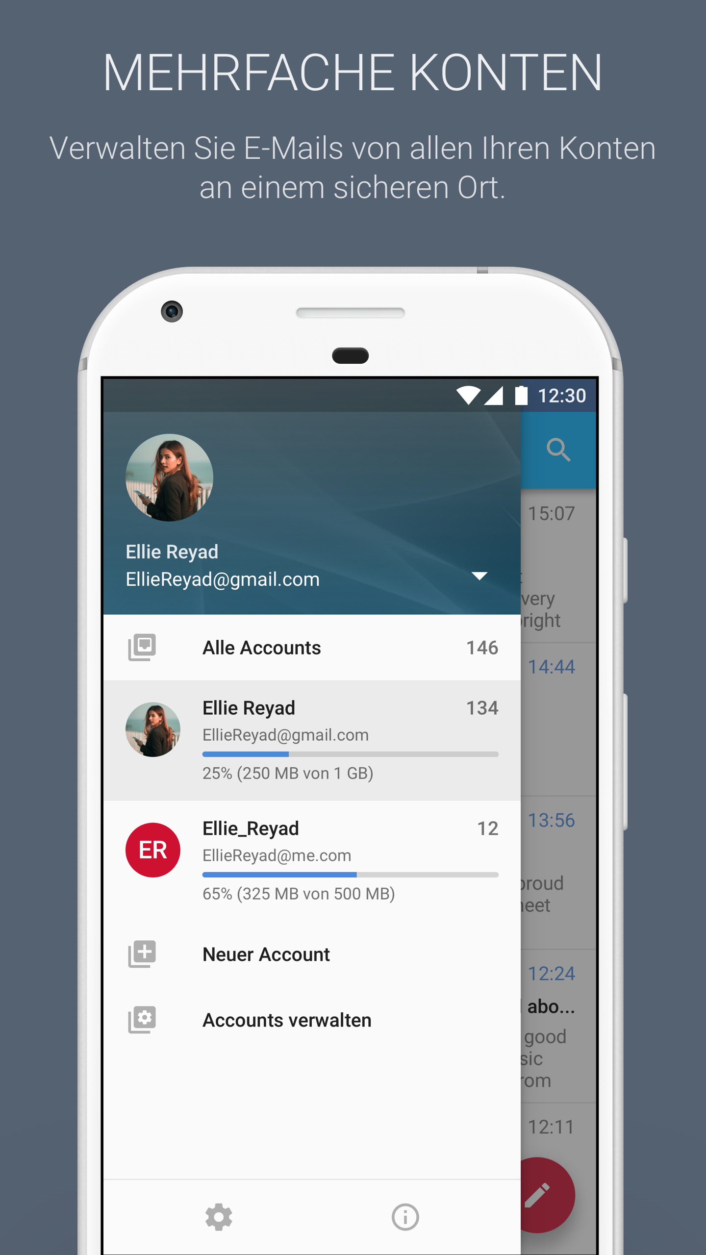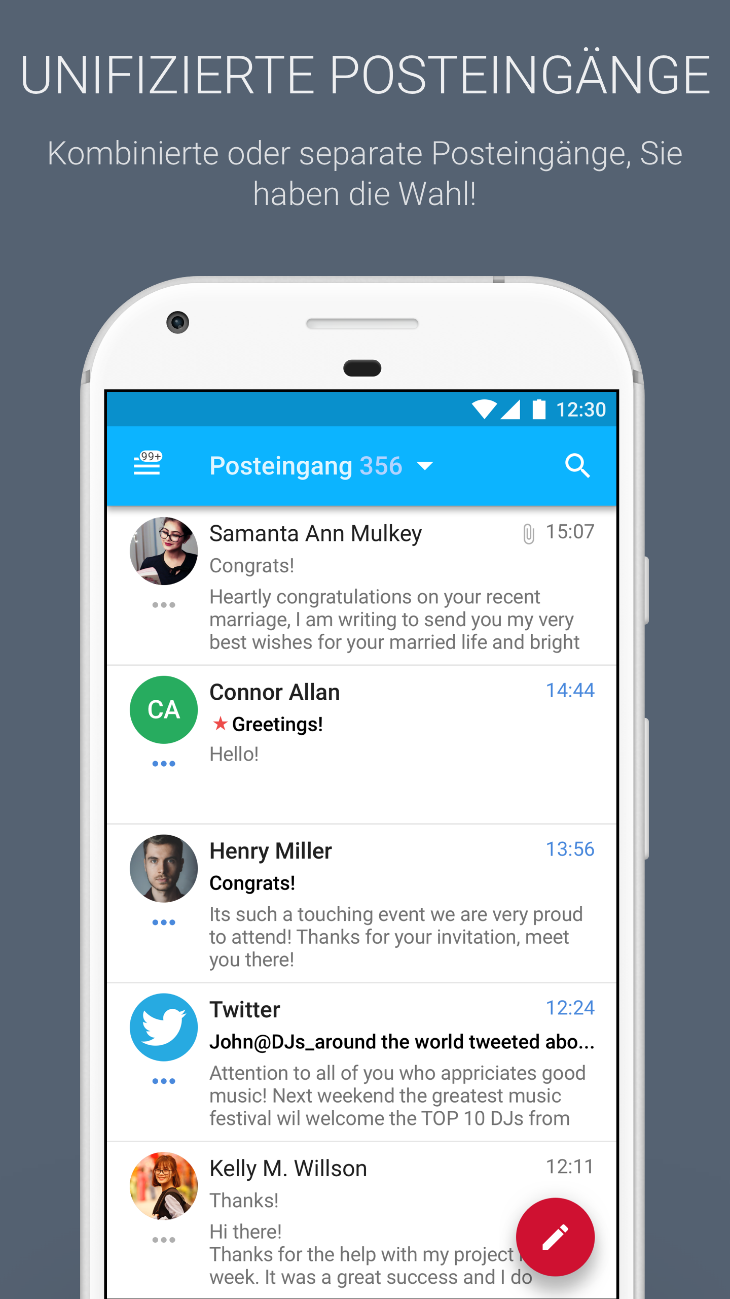 Alle Konten in einem - Verwalten von E-Mails aus Google Mail, Google Apps, Outlook, Office 360, Yahoo! Mail, AOL, iCloud oder einem anderen IMAP-Server.