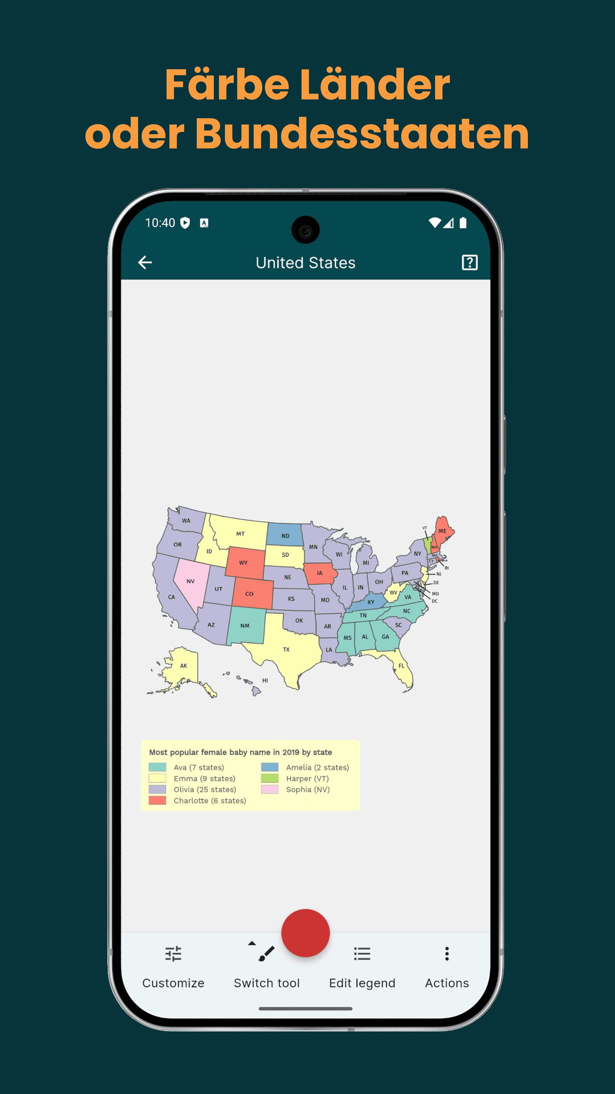 MapChart, die Nr. 1 unter den Kartenerstellungs-Websites, gibt es jetzt als App! Perfekt für alle, die Karten ausmalen, Geografie lernen oder historische und Fantasy-Karten erkunden möchten.
