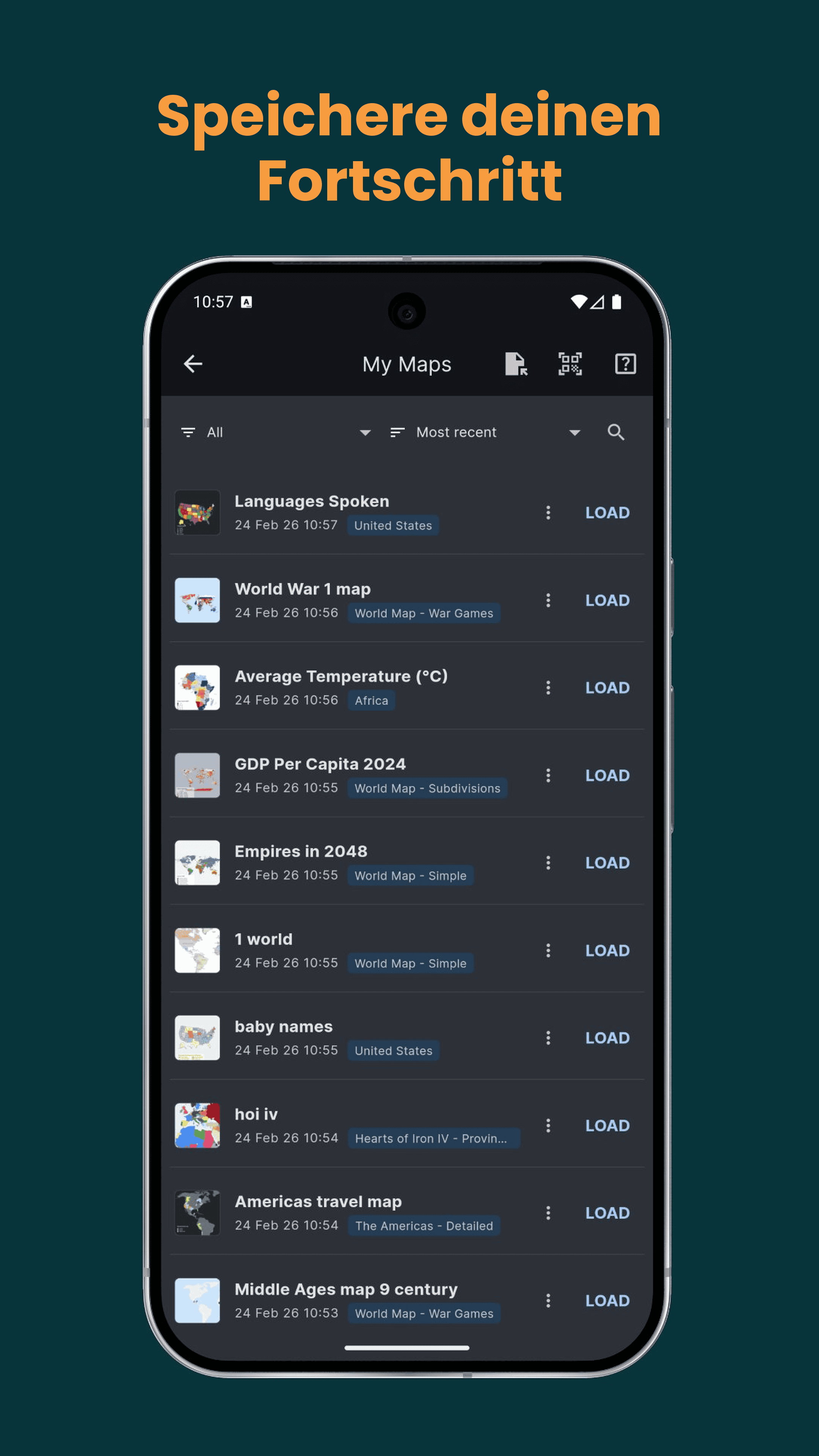 · Karten Speichern und Laden: Hast du eine Karte erstellt, auf die du stolz bist? Speichere sie auf deinem Gerät und kehre jederzeit dazu zurück.