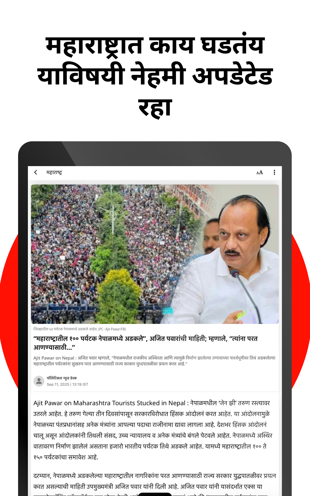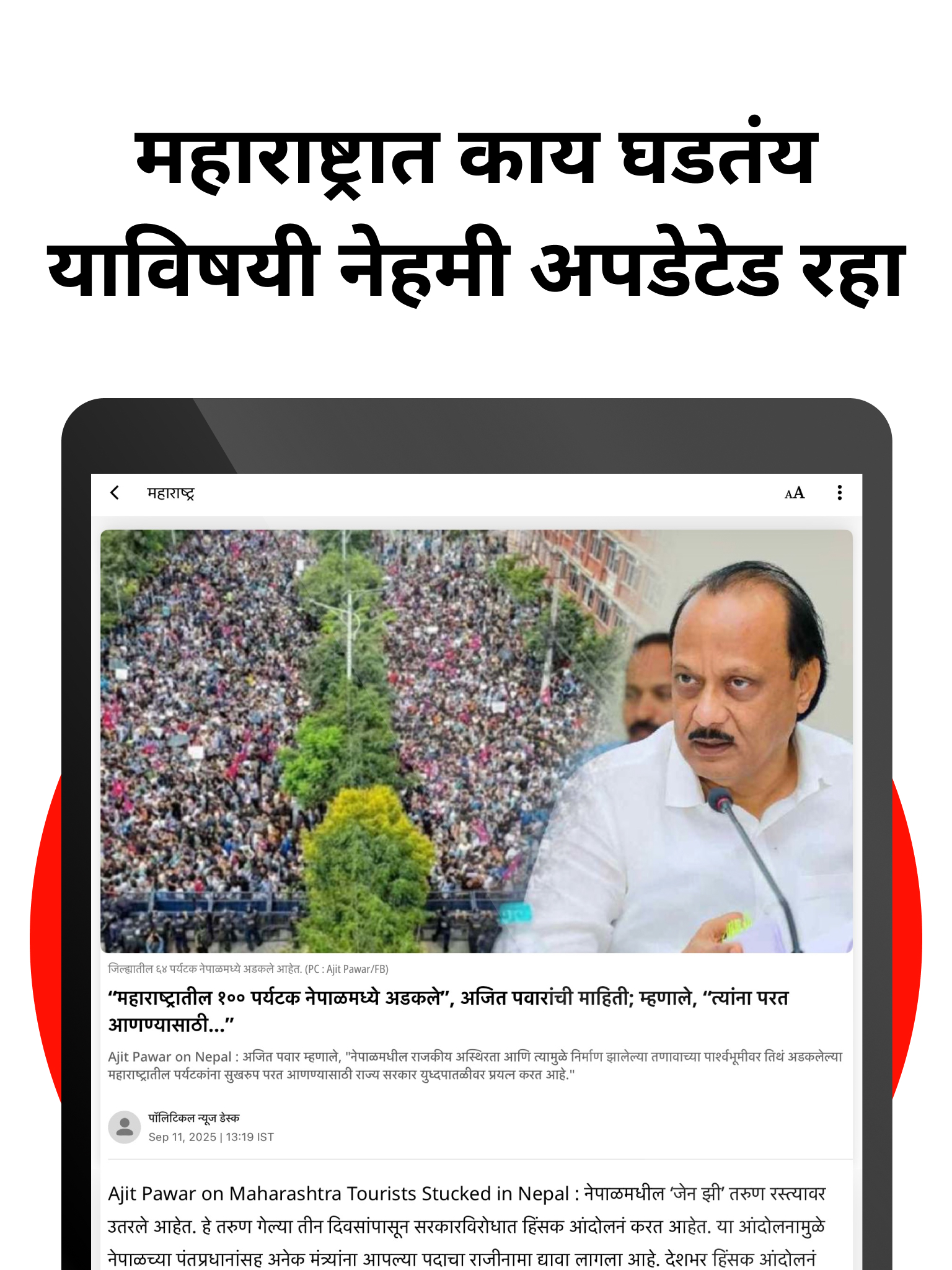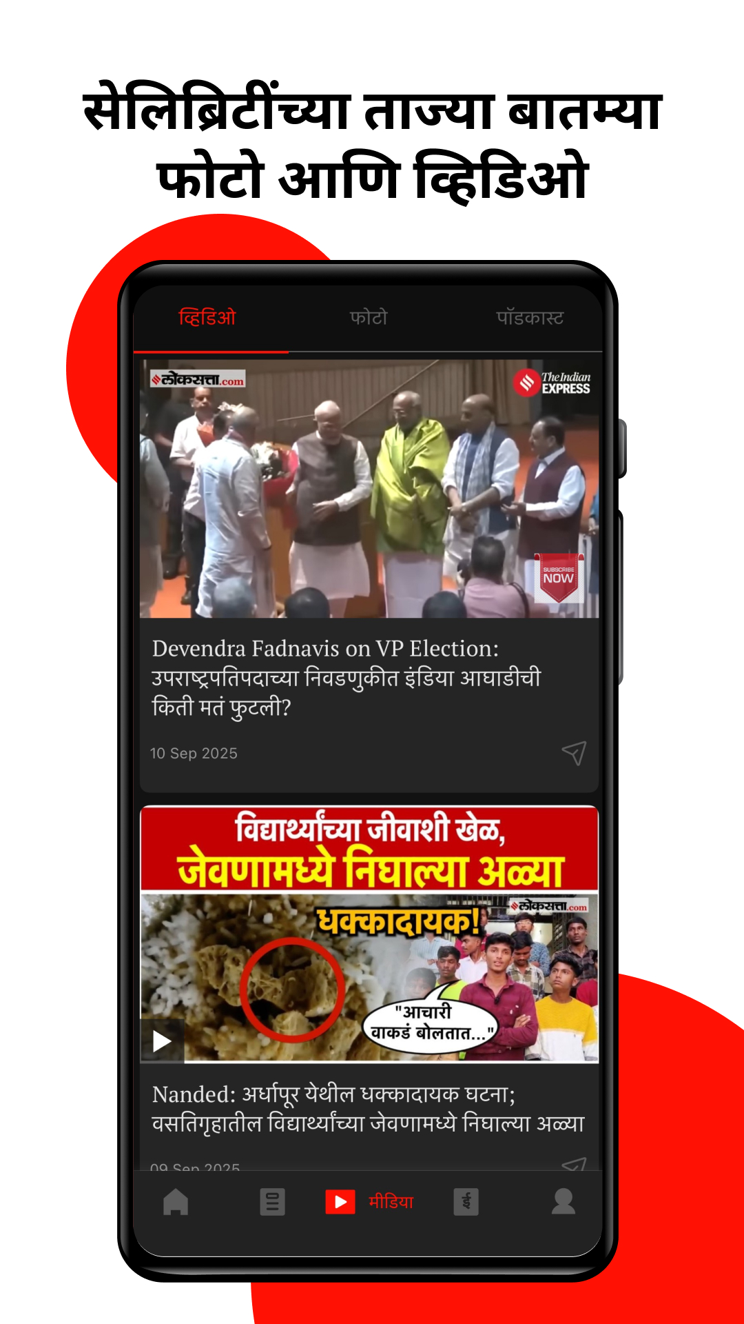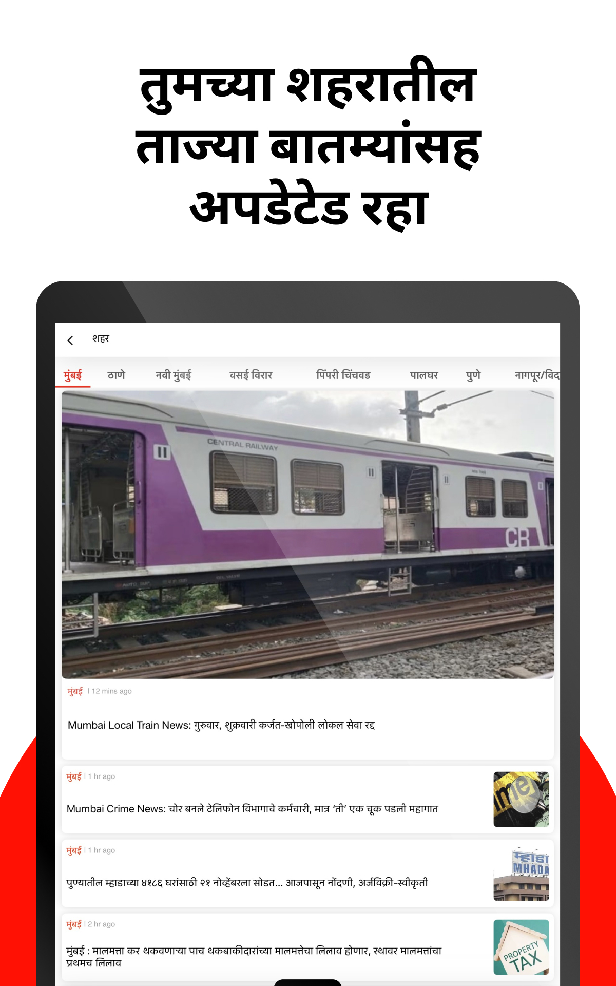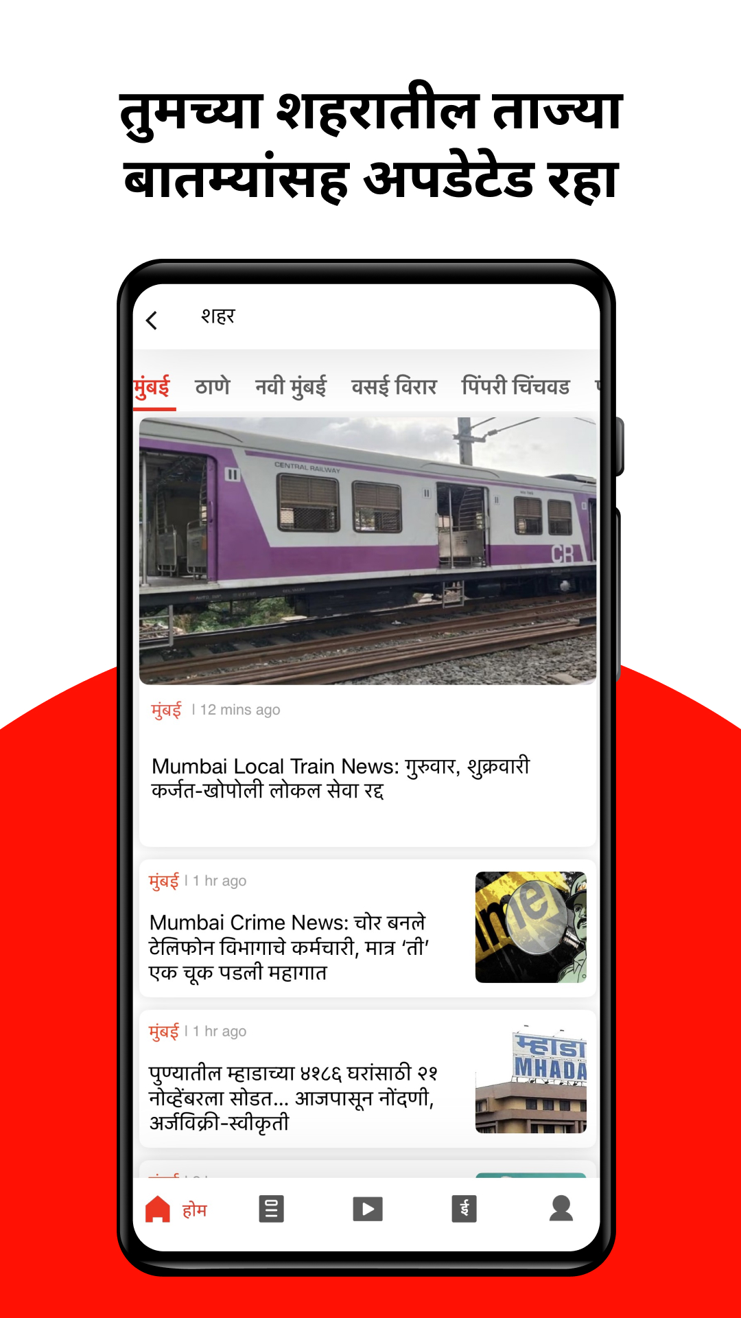 ◉Stadtnachrichten – Wählen Sie Ihre Stadt aus und bleiben Sie über die lokalen Nachrichten aus Maharashtra, wie Mumbai, Pune, Nagpur, Thane usw., auf dem Laufenden.