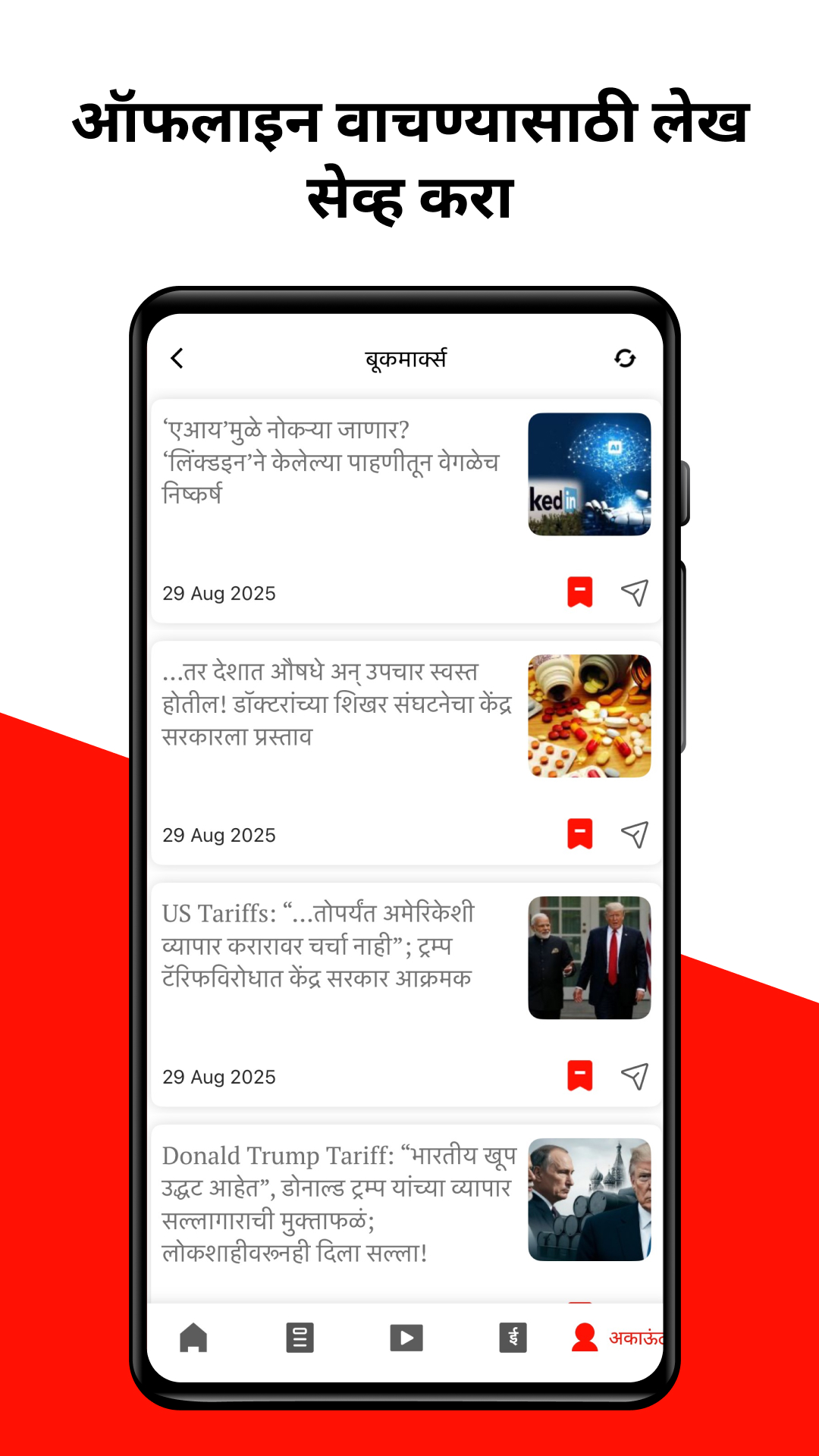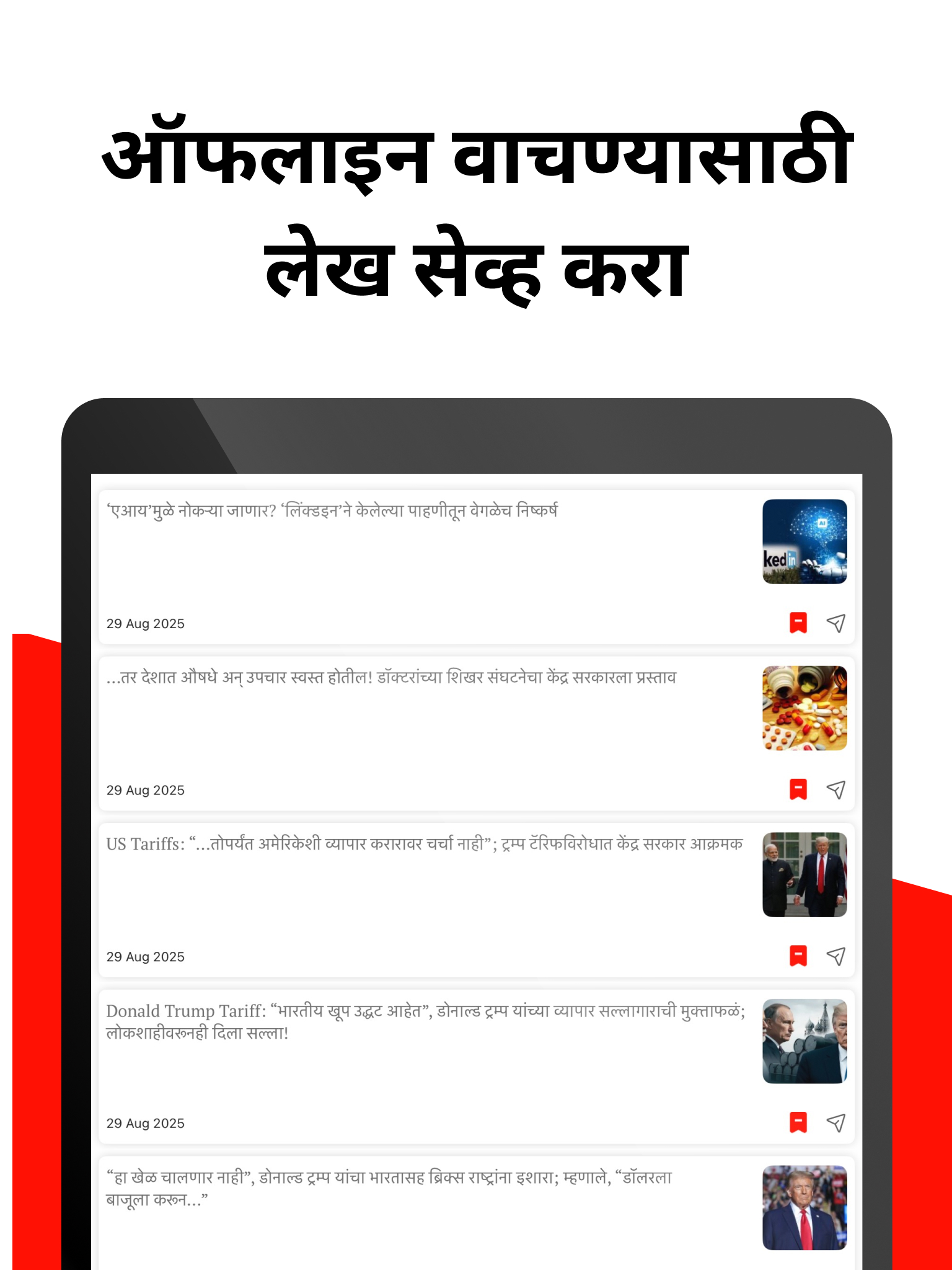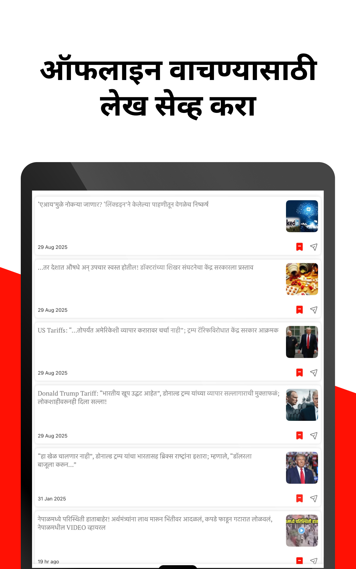 ◉ ऑफलाइन वाचन - ऑफलाइन मोडमध्ये बातम्या बुकमार्क करा आणि इंटरनेट नसेल तरी बातम्या Ja