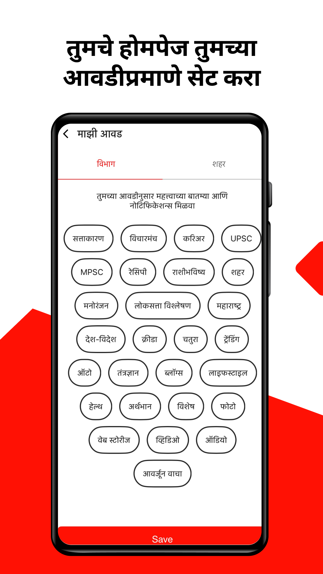 - तुम्हाला महत्त्वाच्या वाटतात त्या कॅटेगरीज तुमच्या होमस्क्रीनवर सेट करा.