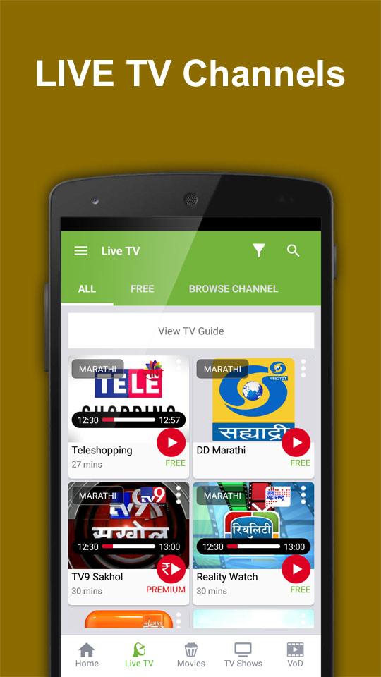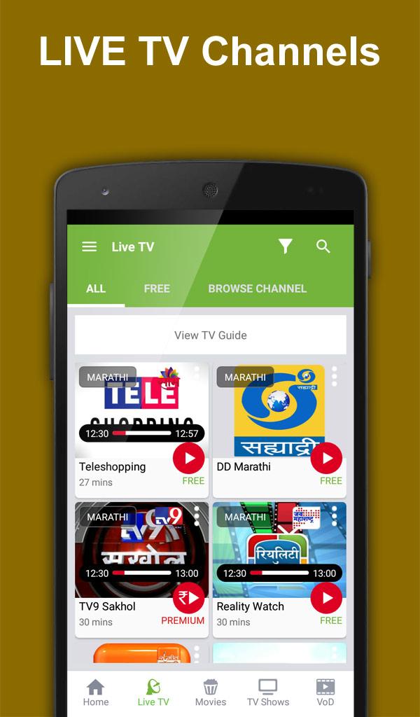 • Watch Live TV Channels- TV9 Mumbai, Mi Marathi, DD Marathi, Maiboli, Sangeet Marathi, Jai Maharashtra News and many more