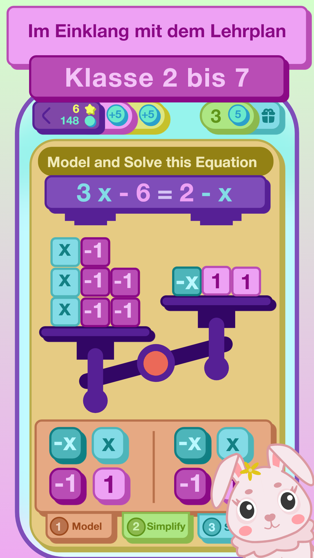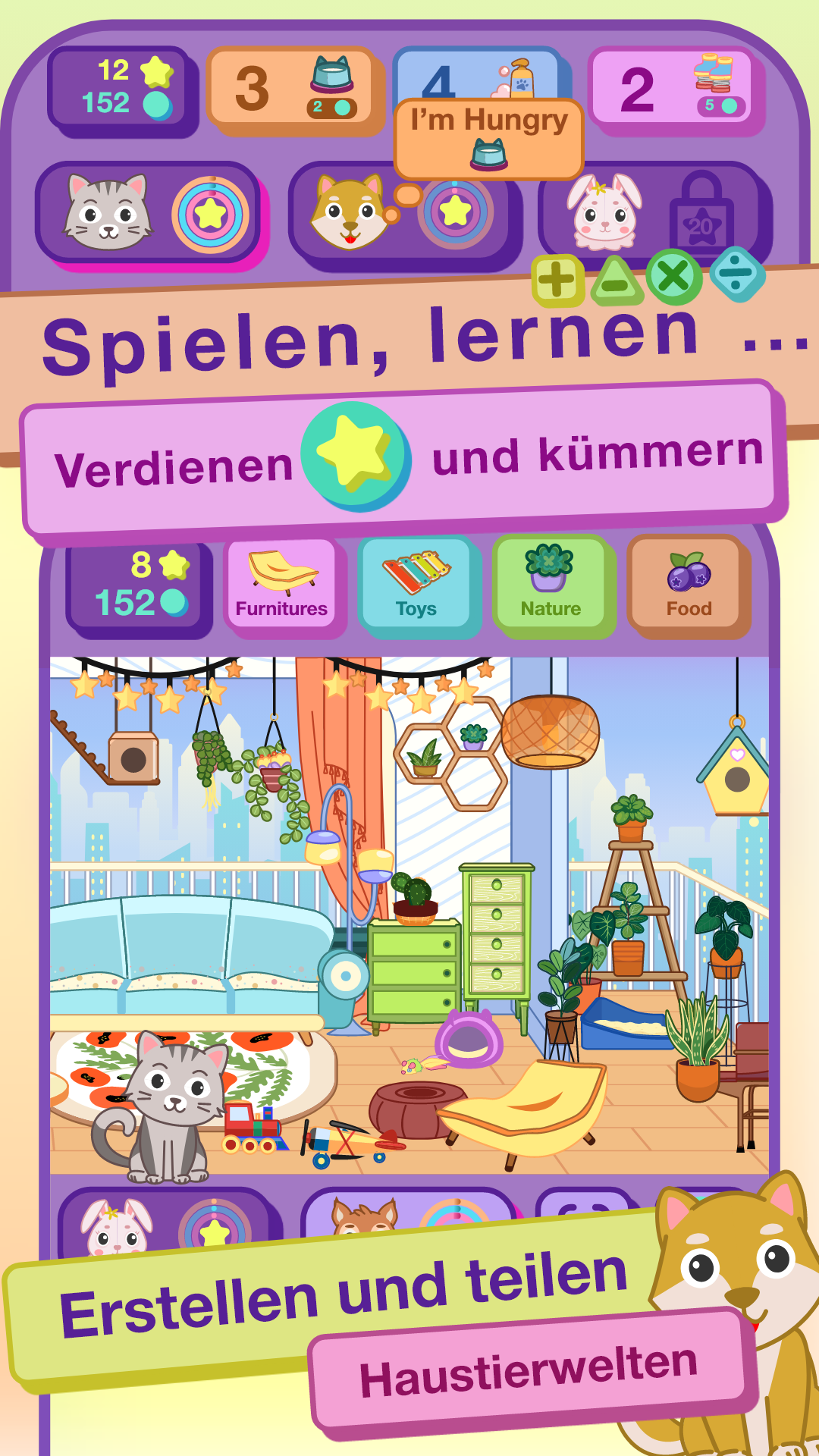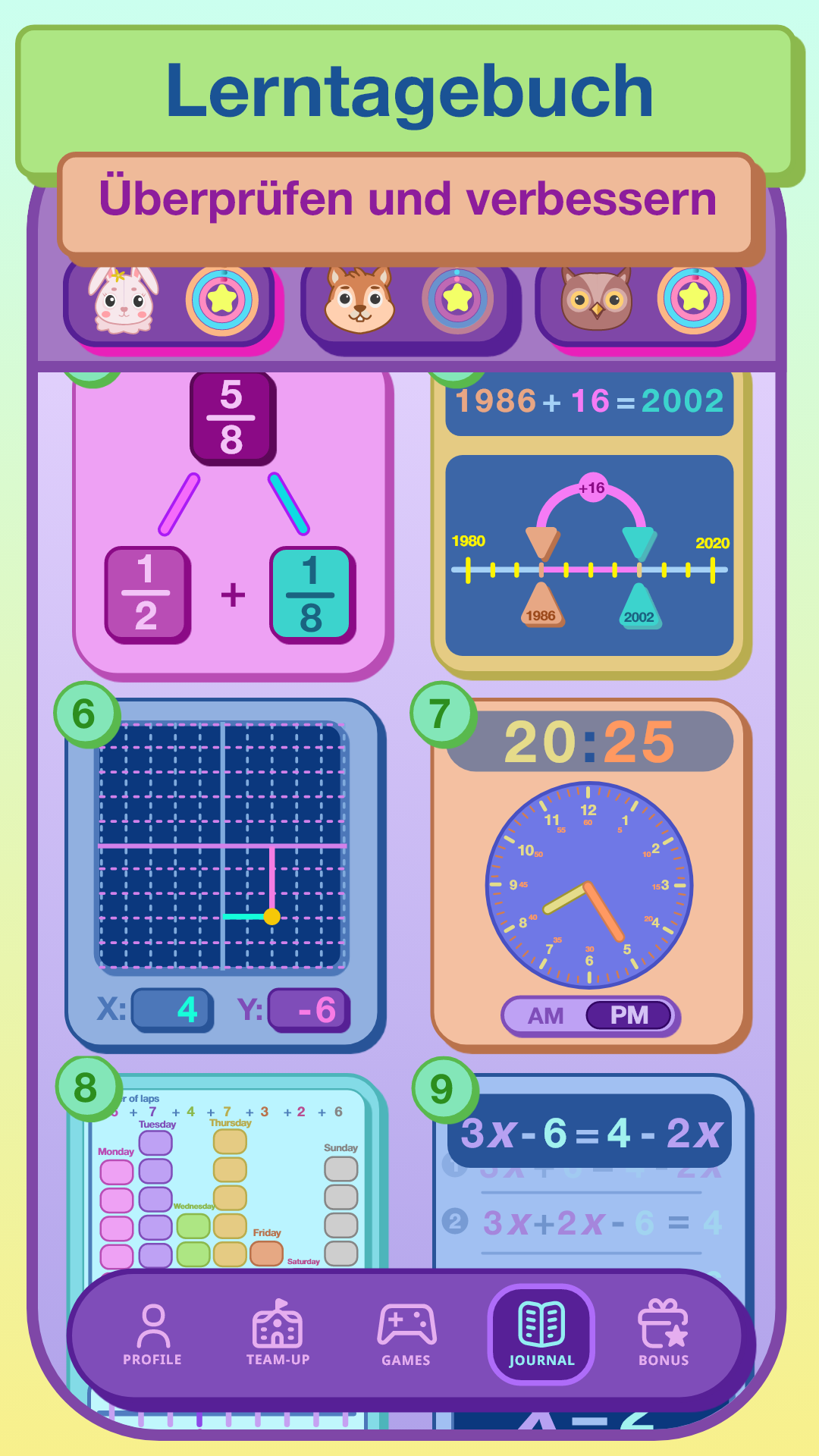 Mach Mathe zum Spiel. Für Klassen 2-7 in Deutschland, Österreich und der Schweiz: lehrplanorientierte Minispiele plus eine motivierende Haustierwelt, die Lernen belohnt. WARUM KINDER ES MÖGEN - Rasante Minispiele mit sofortigem Feedback - Münzen und Sterne sammeln, Deko freischalten, eigene Haustierwelt bauen - Klare Ziele und sanfte Levelanstiege, die sich nicht wie Hausaufgaben anfühlen WARUM ELTERN ES MÖGEN - Lehrplanorientierte Themen und sinnvolle Übungszeit - Einfache Aufgaben mit Wiederholungen und Fristen - Transparenter Fortschritt nach Themen statt nur nach Streaks WAS DEIN KIND ÜBT - Zahlen und Rechnen: Addition, Subtraktion, Multiplikation, Division, Einmaleins - Brüche und Dezimalzahlen: vergleichen, addieren/subtrahieren, visuelle Modelle - Geometrie und Messen: Formen, Flächeninhalt, Umfang, Winkel - Algebra-Grundlagen: Muster, Terme, einfache Gleichungen - Daten und Statistik: Balken- und Liniendiagramme, Tabellen, Diagramme lesen - Zeit und Uhren: Uhrzeit ablesen, umrechnen und Zeiträume verstehen FÜR DEN UNTERRICHT GEMACHT - An Lehrplänen in D-A-CH orientiert und nach Klassenstufen strukturiert - Flexibel von Klasse 2 bis 7, ideal zum Wiederholen oder Vorausschauen HILFREICHE DETAILS - Kurze, offlinefreundliche Spielsitzungen für Zwischendurch - Kindgerechte Oberfläche mit Fokus auf Verständnis und Motivation Gib deinem Kind eine Mathe-Routine, die es gern spielt. Jetzt laden und Selbstvertrauen stärken - Level für Level, Lächeln für Lächeln, Fähigkeit für Fähigkeit.