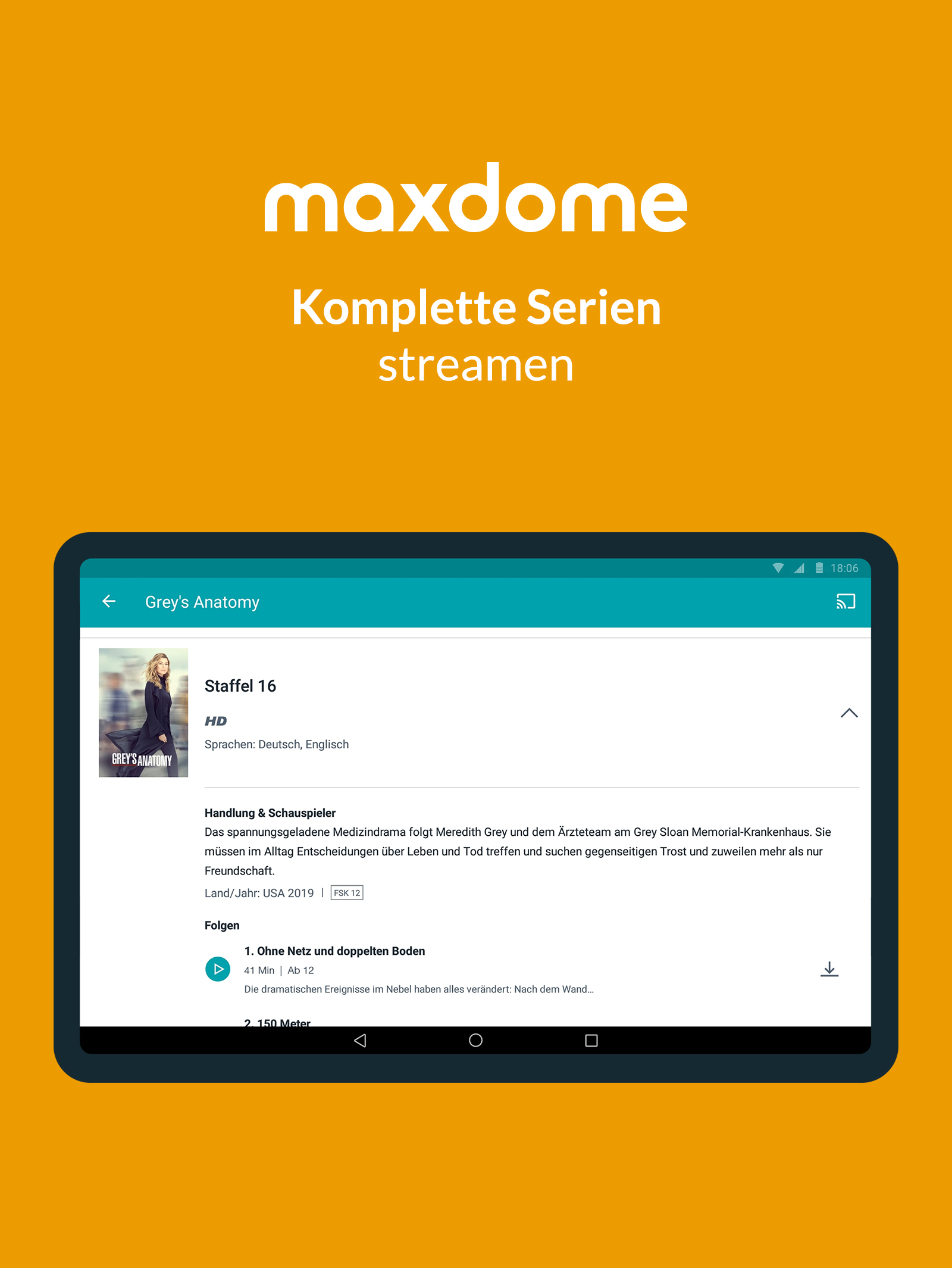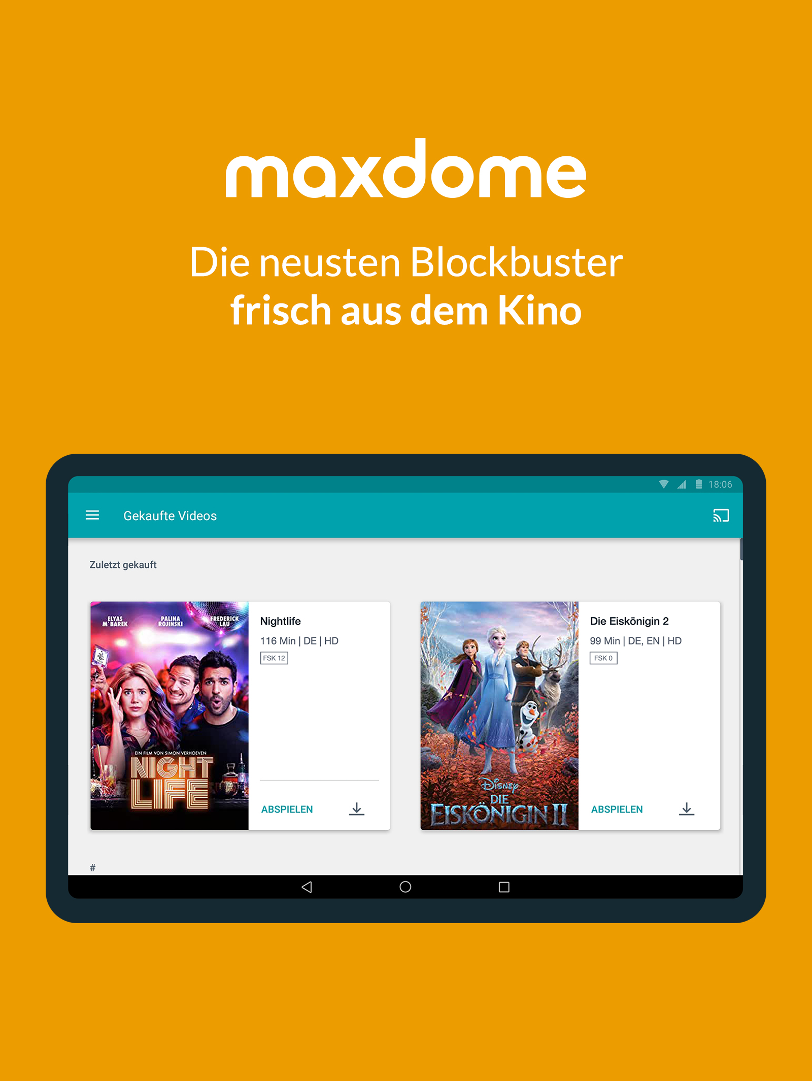 Bei maxdome entscheidest Du selbst, was Du schauen möchtest. Ohne Abo und versteckte Kosten – einmal im maxdome store gekauft, immer streamen. Hol Dir Blockbuster, frisch aus dem Kino und lange bevor sie bei anderen Streamingdiensten verfügbar sind. Oder auch komplette Serienstaffeln. Die gekauften Filme und Serien kannst Du auf verschiedenen Geräten ansehen: auf dem Fernseher, dem Smartphone, Tablet oder im Webbrowser. maxdome ist ein Angebot für Kenner, denn bei maxdome machst Du selbst das Programm. Einmal kaufen, immer wieder ansehen. Und die Auswahl ist gewaltig. Du schaust Filme oder Serien am liebsten in der Originalsprache? Gerne. Bei maxdome gibt es fast alles auch in der Originalversion. Du musst Dich natürlich nicht entscheiden, welche Version Du möchtest, sondern kaufst den Film nur einmal und kannst jederzeit die Sprache wechseln. Immer wieder gibt es Preisaktionen, bei denen Du Filme sehr günstig kaufen kannst. Bau Dir Deine Online-Filmbibliothek auf, mit den Genres, Schauspielern und Regisseuren, die Dich begeistern. Und greif darauf zu, wann und wo Du willst. 1000 Filme passen in dein Smartphone – da kann keine DVD oder BluRay-Sammlung mithalten. Du hast einen besonderen Geschmack? Willkommen. Neben Mainstream findest Du bei maxdome auch zahlreiche Arthouse-Filme und Klassiker. Dazu natürlich Actionfilme, Zeichentrick, Thriller, Science-Fiction, Comedy, Kinderfilme, Fantasy, Romance und vieles, vieles mehr. Du kannst bei maxdome nicht nur Filme kaufen, sondern auch Ausleihen. Diese kannst Du innerhalb eines bestimmten Zeitraums beliebig oft ansehen, dann nicht mehr. Die maxdome App ist natürlich kostenlos. Einfach herunterladen und Filme erleben.