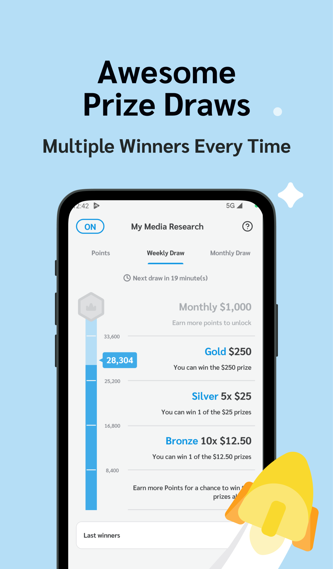 Watch. Stream. Earn. Welcome to the NEW Media Rewards – the ultimate way to earn gift cards and enter prize draws just by watching your favorite shows or listening to music. Love Netflix, Hulu, YouTube, or Spotify? Now your screen time can help you earn weekly rewards. What’s New on Media Rewards for Android: * Modern Look: A sleek new design for a smoother experience. * Weekly Prize Draws: More chances to win every Sunday. * New Weekly Points System: Points now reset weekly, giving you a fresh chance at each prize draw. * Surveys in the App: No more external links—just open, answer, and earn. * Faster Cash-Outs & New Shop: Redeem rewards instantly and shop gift cards right in the app. * Tailored Surveys: Complete your profile and verify your phone/email to unlock higher-paying studies. How It Works: 1. Download Media Rewards. 2. Activate Media Research and earn points by passively sharing which ads you are exposed to—no audio recordings ever. 3. Earn Points Weekly and Monthly. Higher Points = more chances to win. 4. Take Occasional High Reward Premium Surveys. 5. Enter Weekly & Monthly Prize Draws. 6. Cash Out Instantly using the in-app Shop to Your Fav Retailers. Why Join Media Rewards? Earn Gift Cards Effortlessly: Amazon, iTunes, Nike, Spotify, Starbucks & more. Win Big Every Week and Month: Up to $1,000 in prize draws. Surveys That Pay Well: You will only get invited to surveys that match your profile. Data Safe & Anonymous: Fully GDPR & CCPA compliant. Privacy You Can Trust No conversations are recorded. No mobile data is used. Low battery consumption (1% per hour). Full control over your data with opt-out options anytime. Start Earning in Seconds. Turn your daily media habits into gift cards and real rewards. Download the new Media Rewards now!
